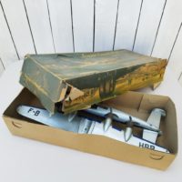 La boite est abimée mais complète, la représentation de l’avion sur le dessus de la boite est insolée.