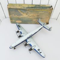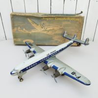 Ancien avion à friction de la marque Joustra, datant des années 60, modèle Super Constellation super G. Air France.Possède sa boite d’origine.