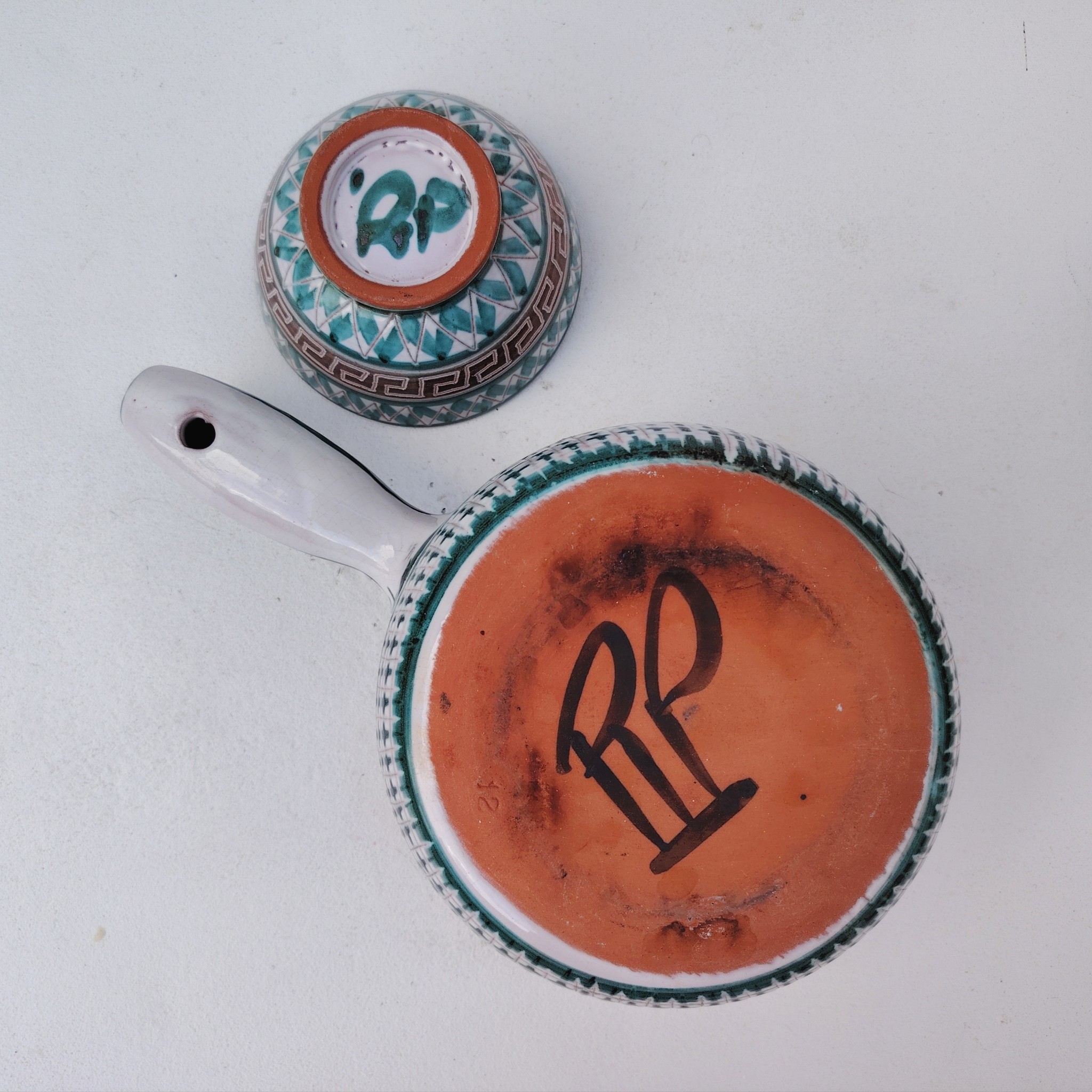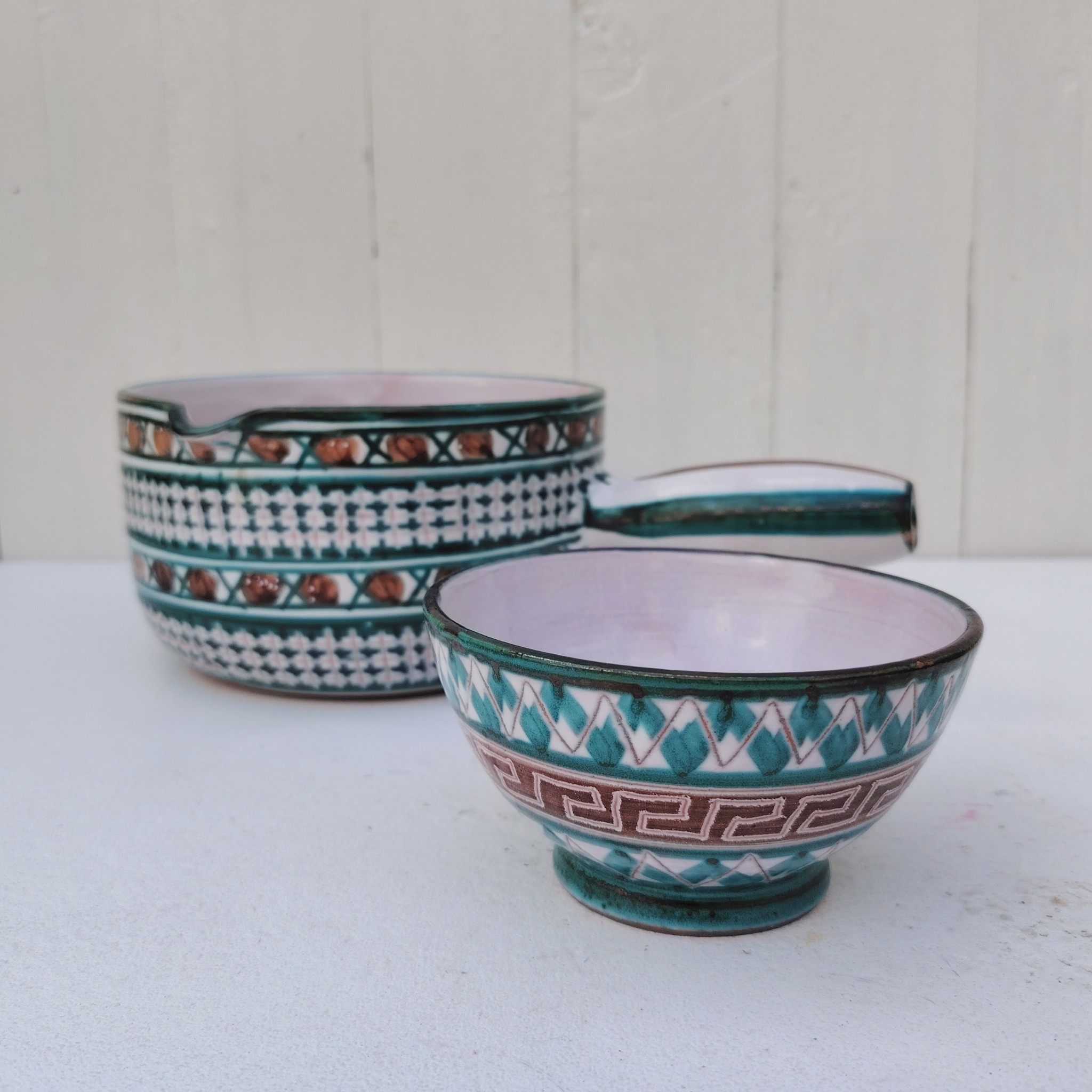 Caquelon  verseur et un bol en céramique de Vallauris signé Robert Picault. Datant des années 60.