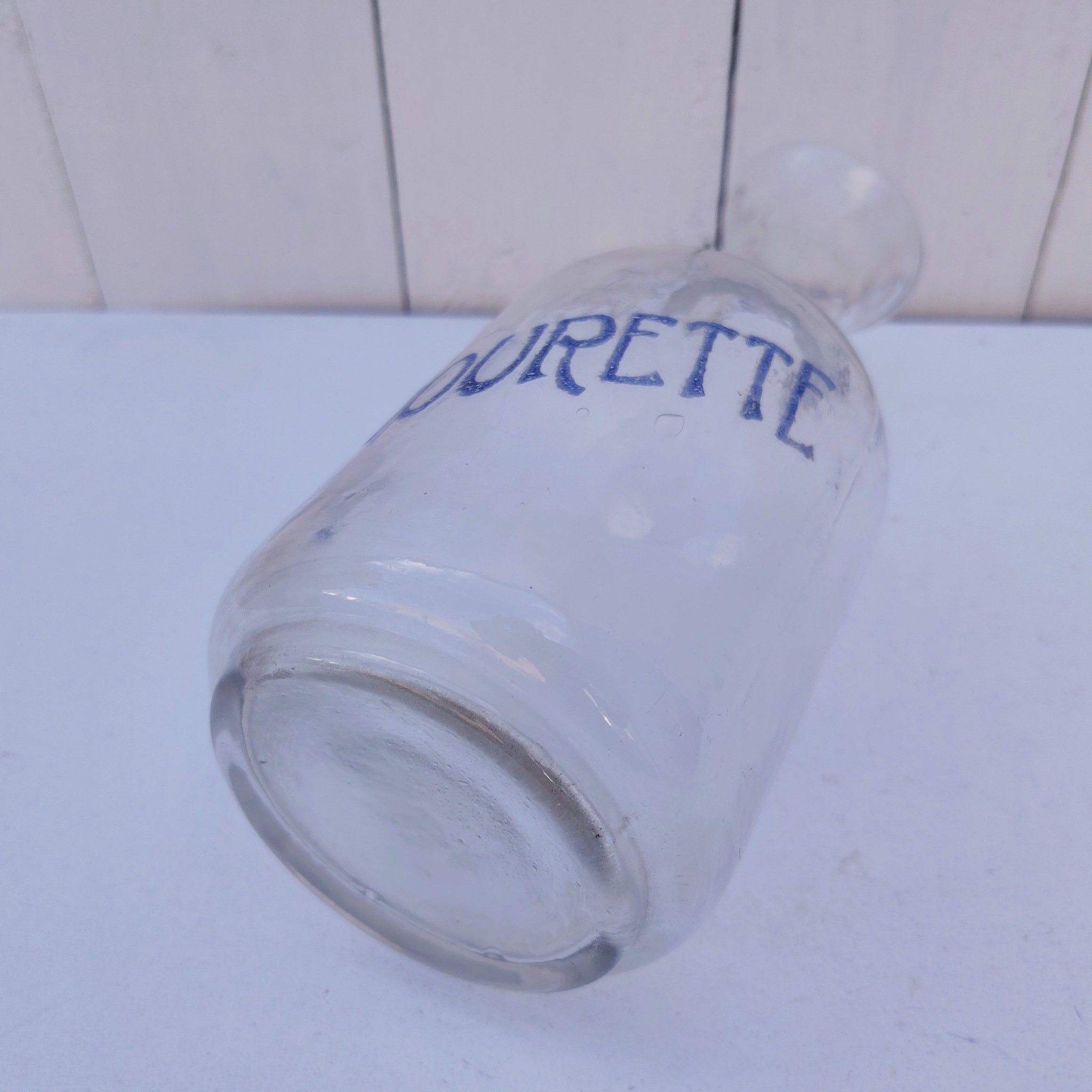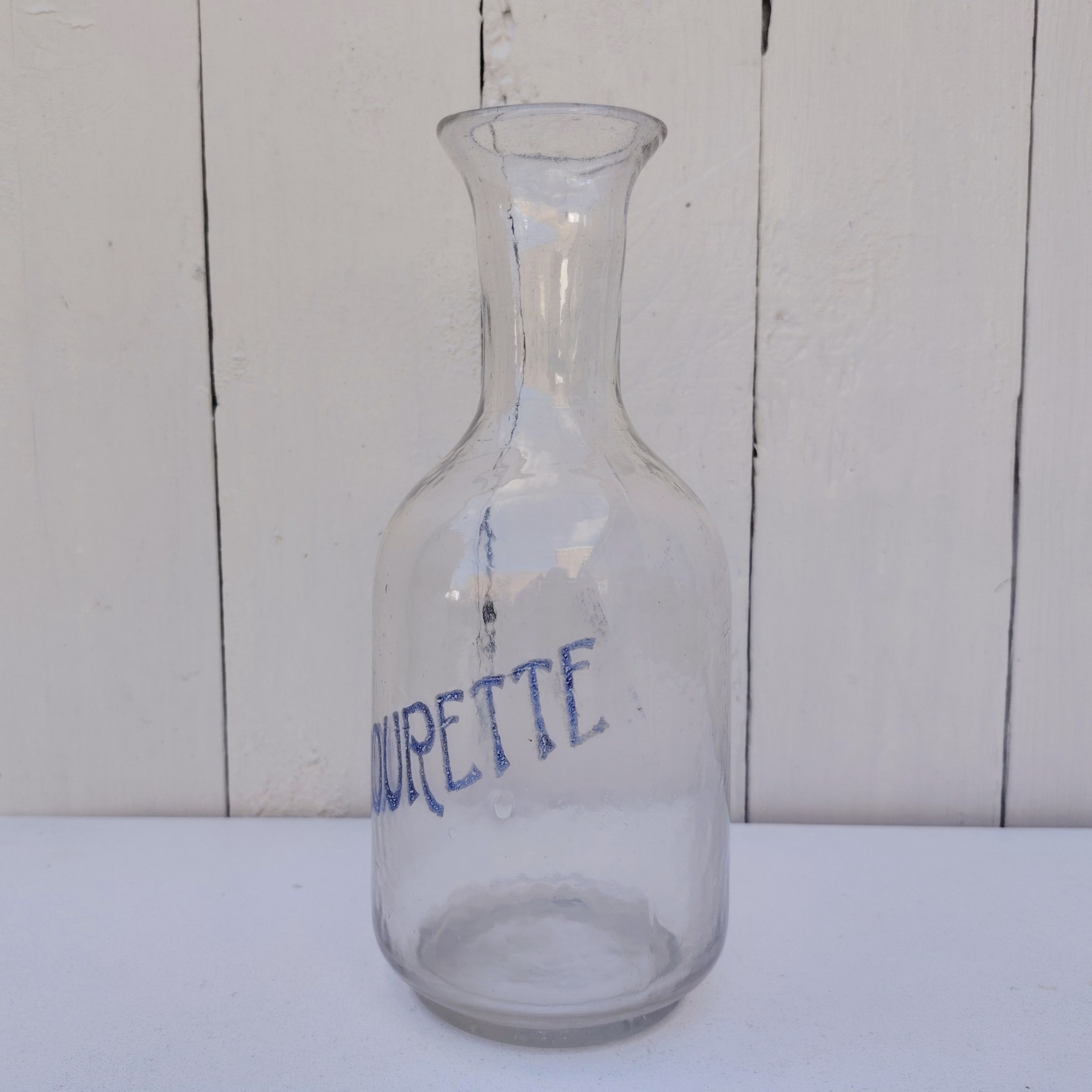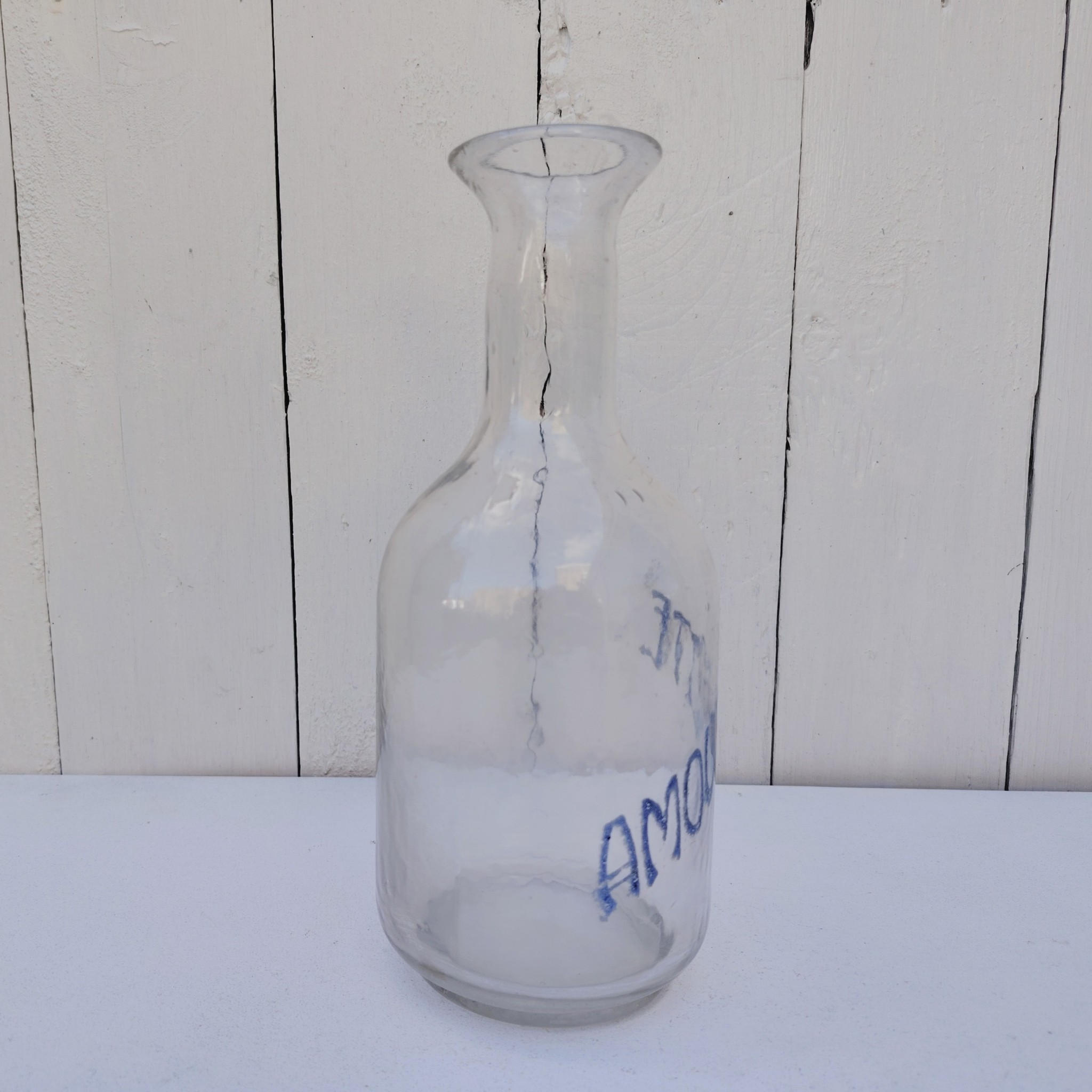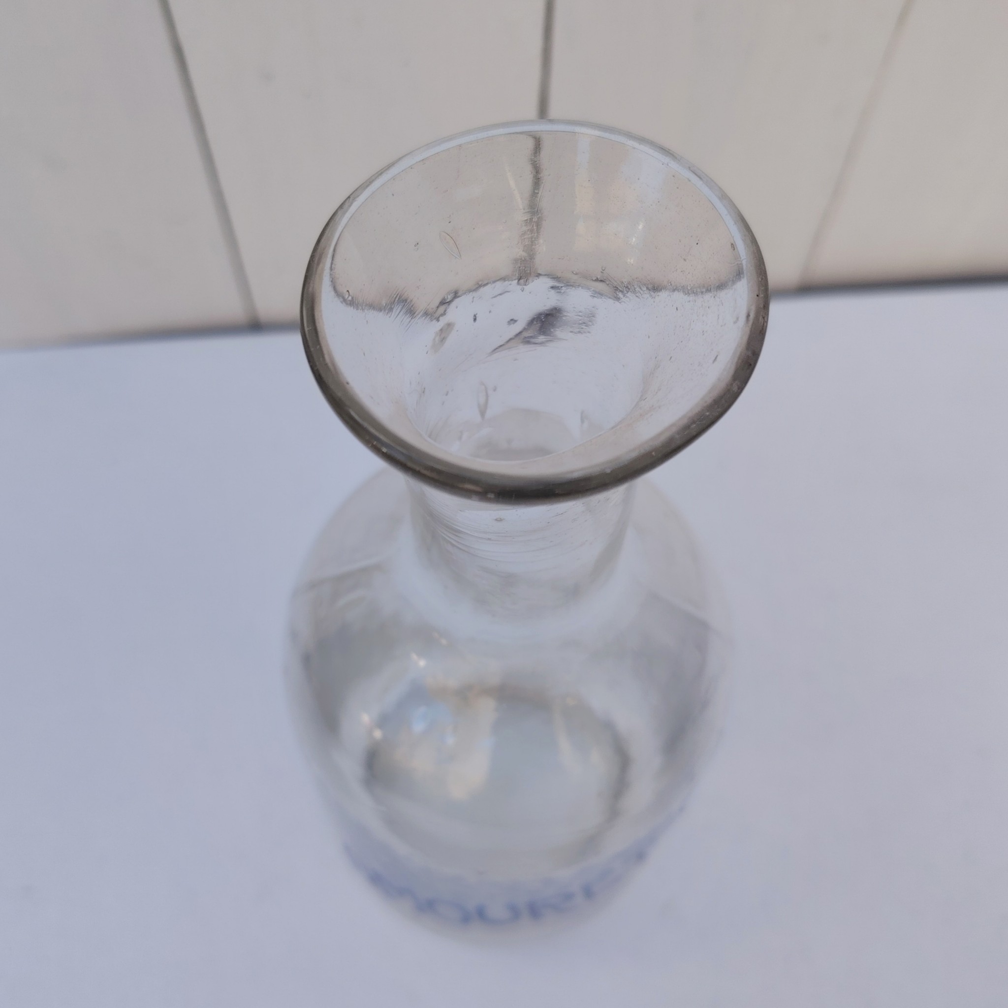 Ancienne carafe en verre soufflé publicitaire pour la marque d’anis Amourette.