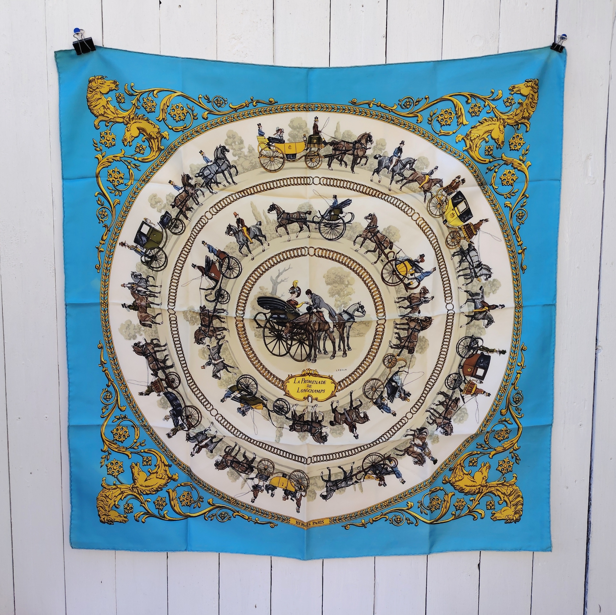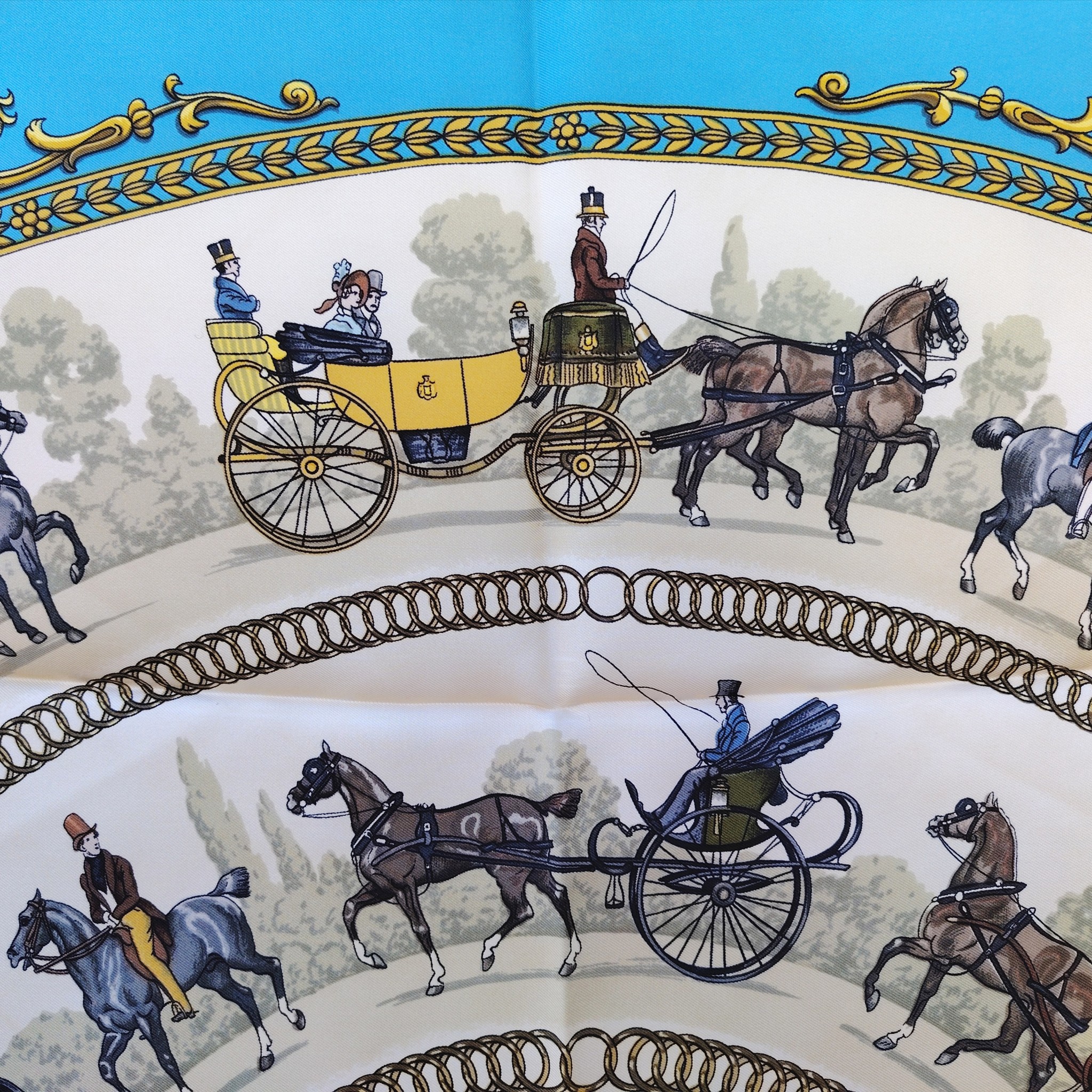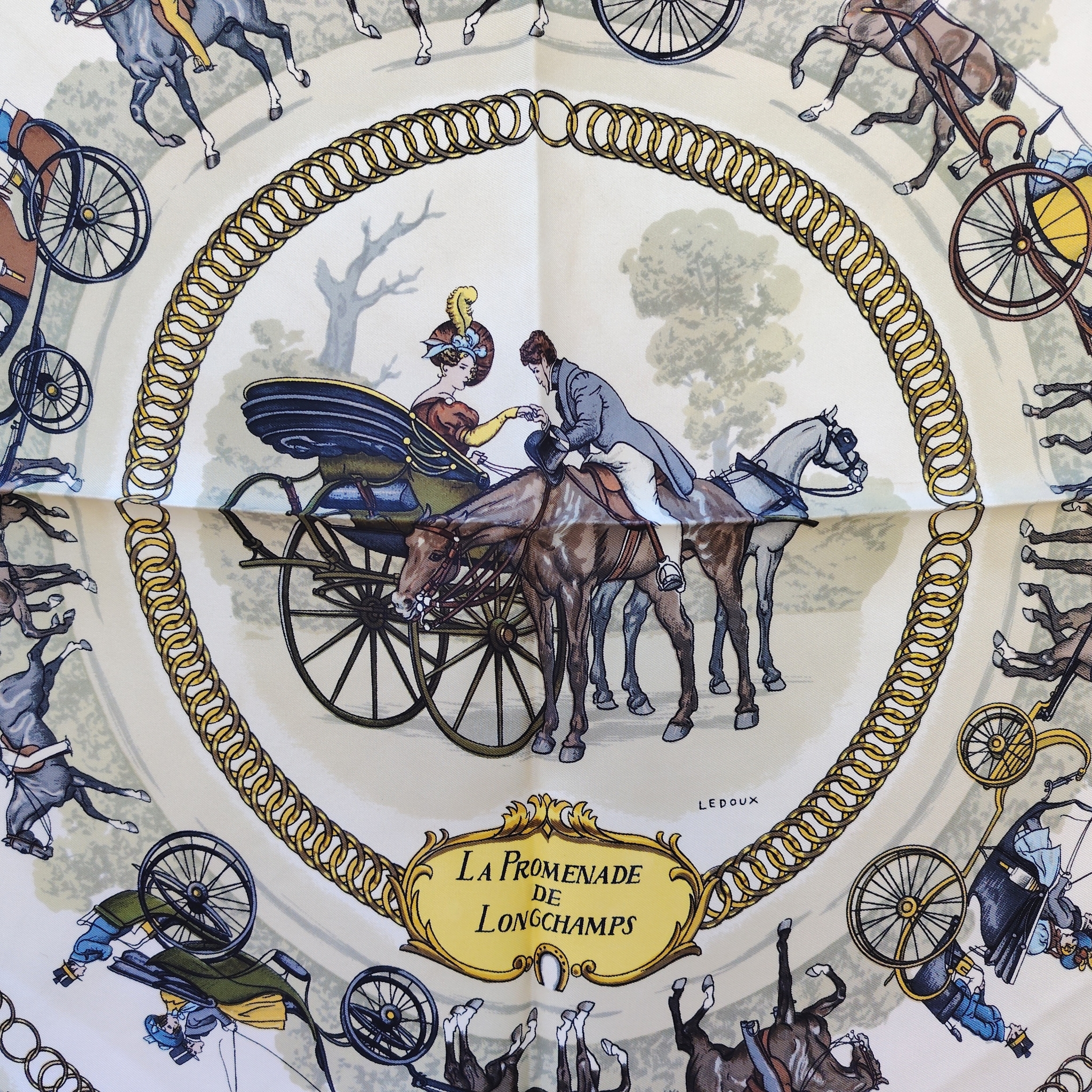 Carré Hermès, soie, La promenade de Longchamps, vintage