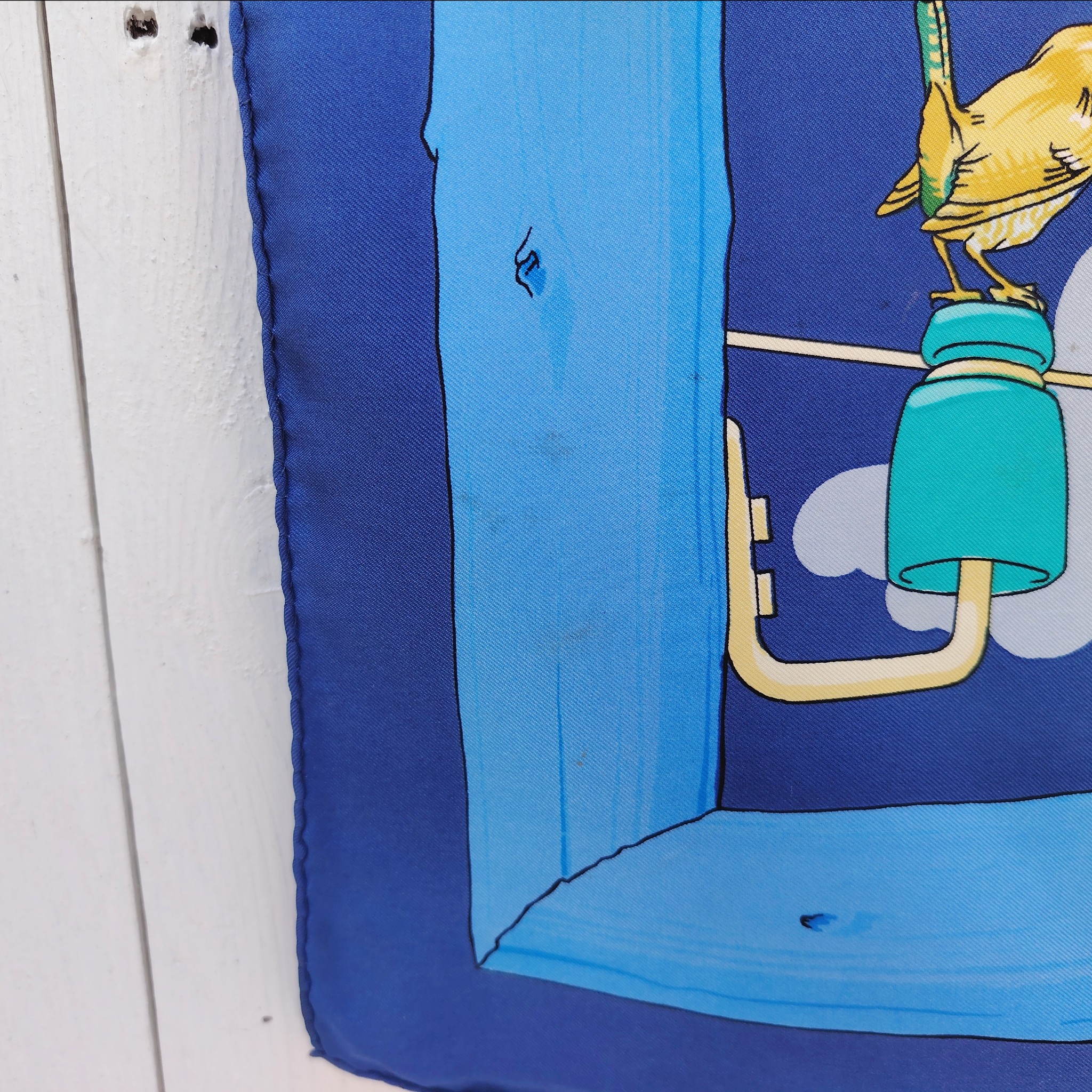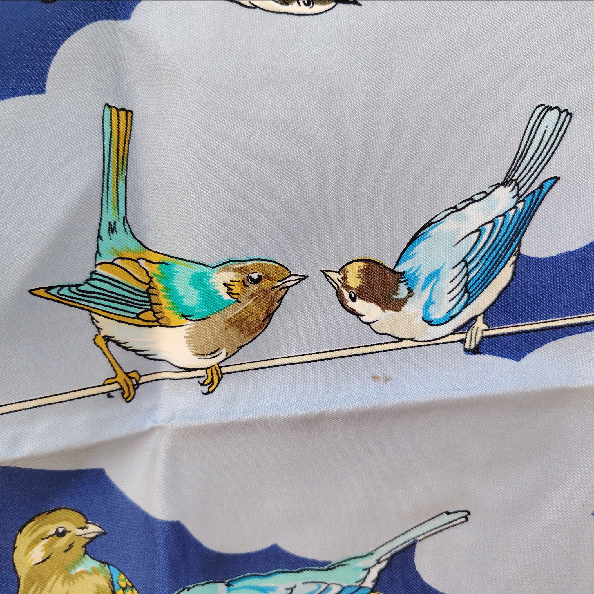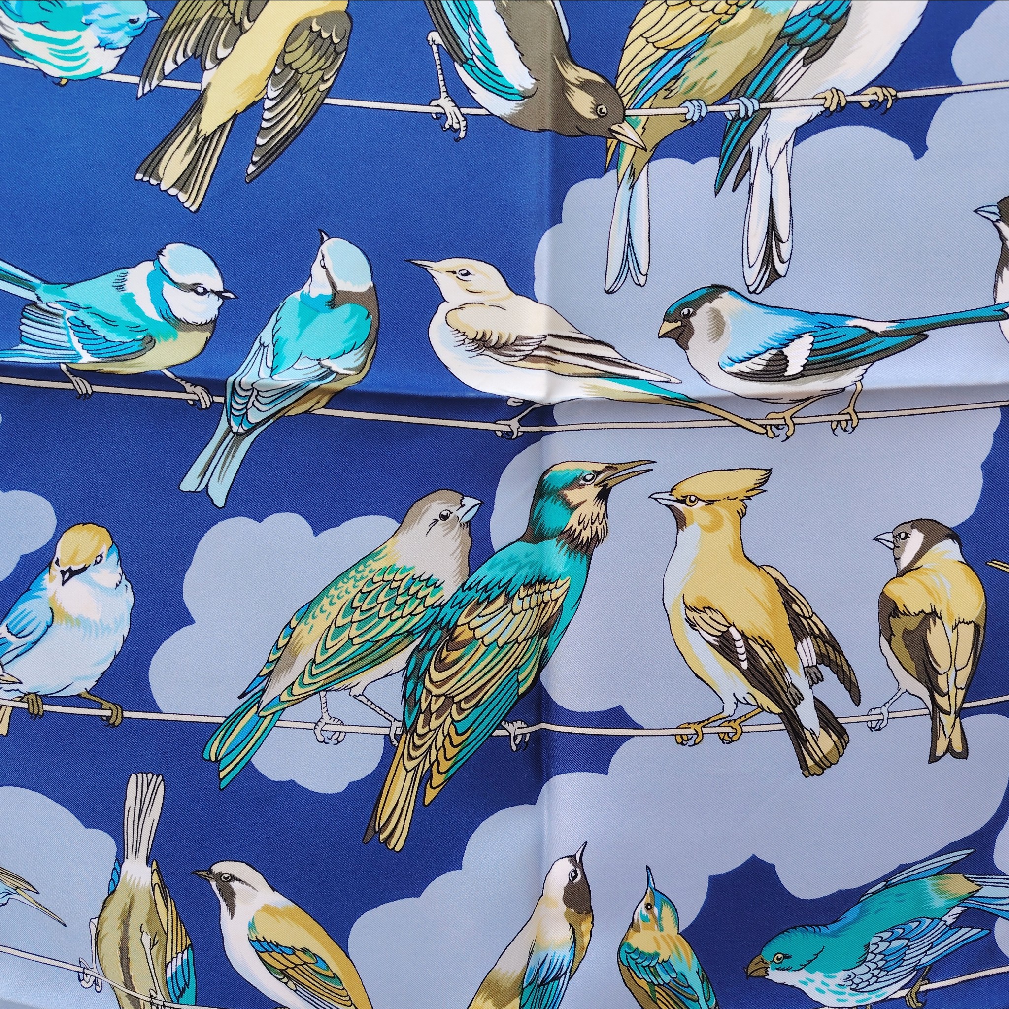 Foulard/carré Hermès intitulé : Les oiseaux des champs et des bois. En soie avec bords roulottés à la main.