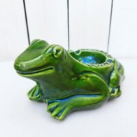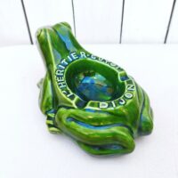 Cendrier publicitaire en faïence à la forme de grenouille, pour la marque d’alcool Héritier Guyot