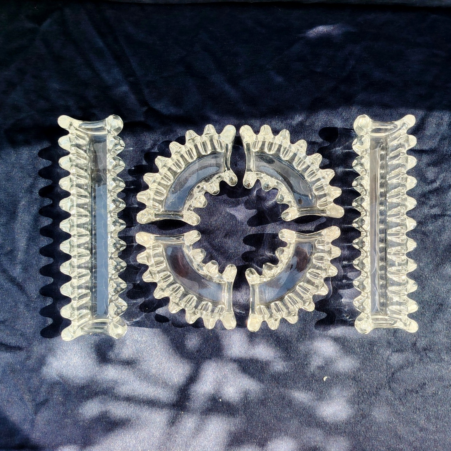 Chemin de table en cristal composé de six pièces. Elégance à la française pour une décoration de table réussie.