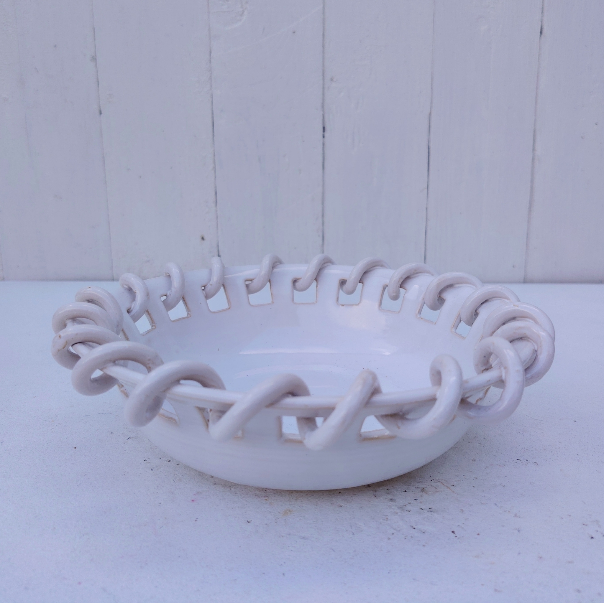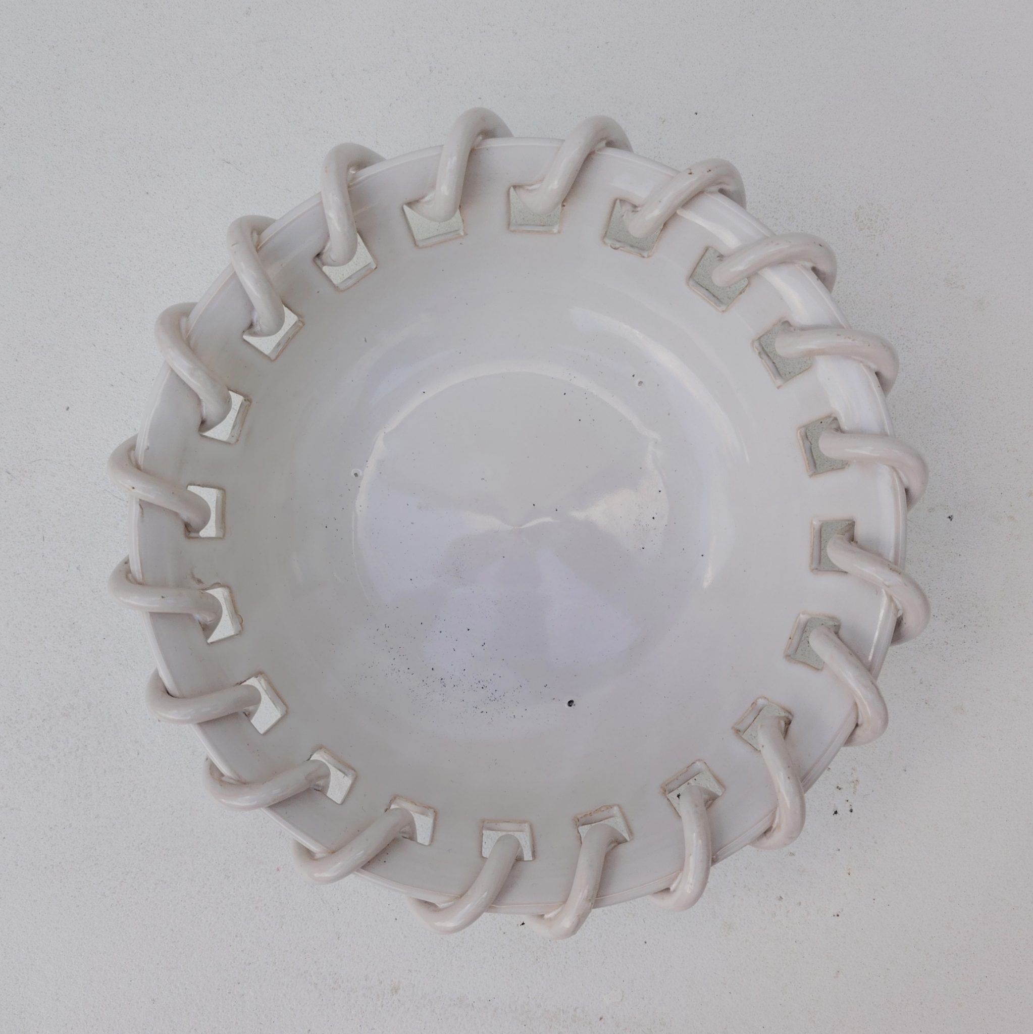 Coupelle ou coupe à fruits en faïence de Malicorne de couleur blanche Par Emile Tessier. Signée sur le dessous.