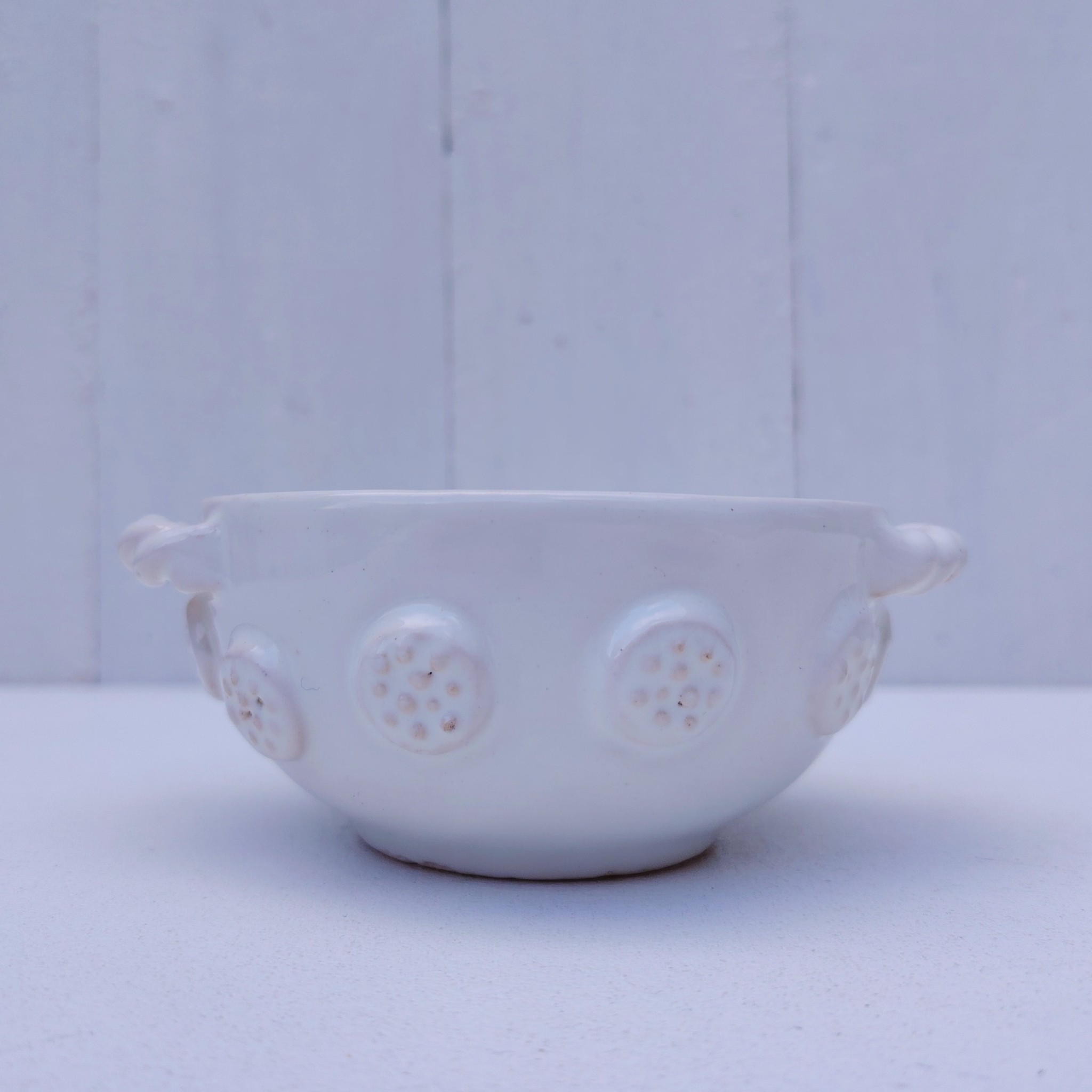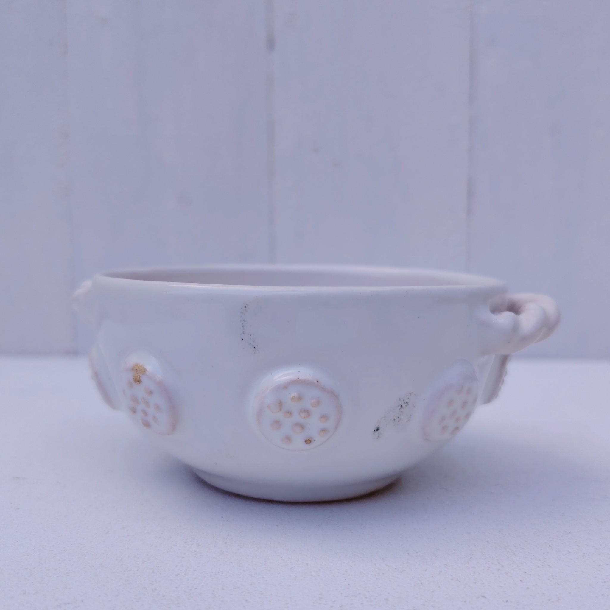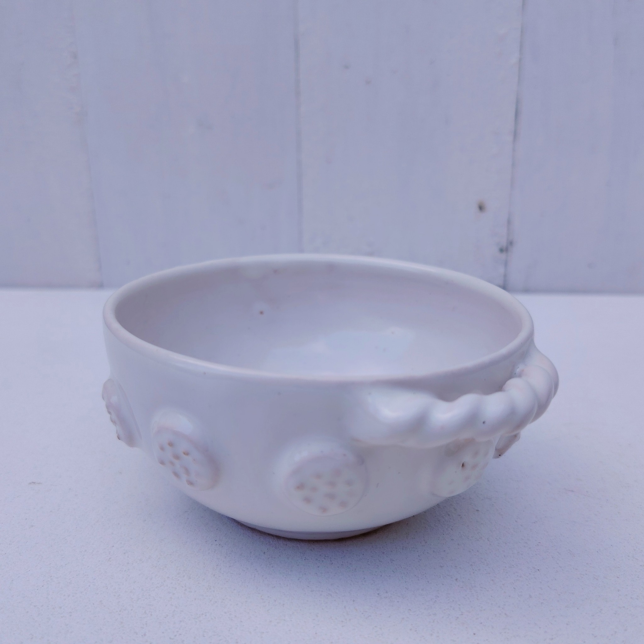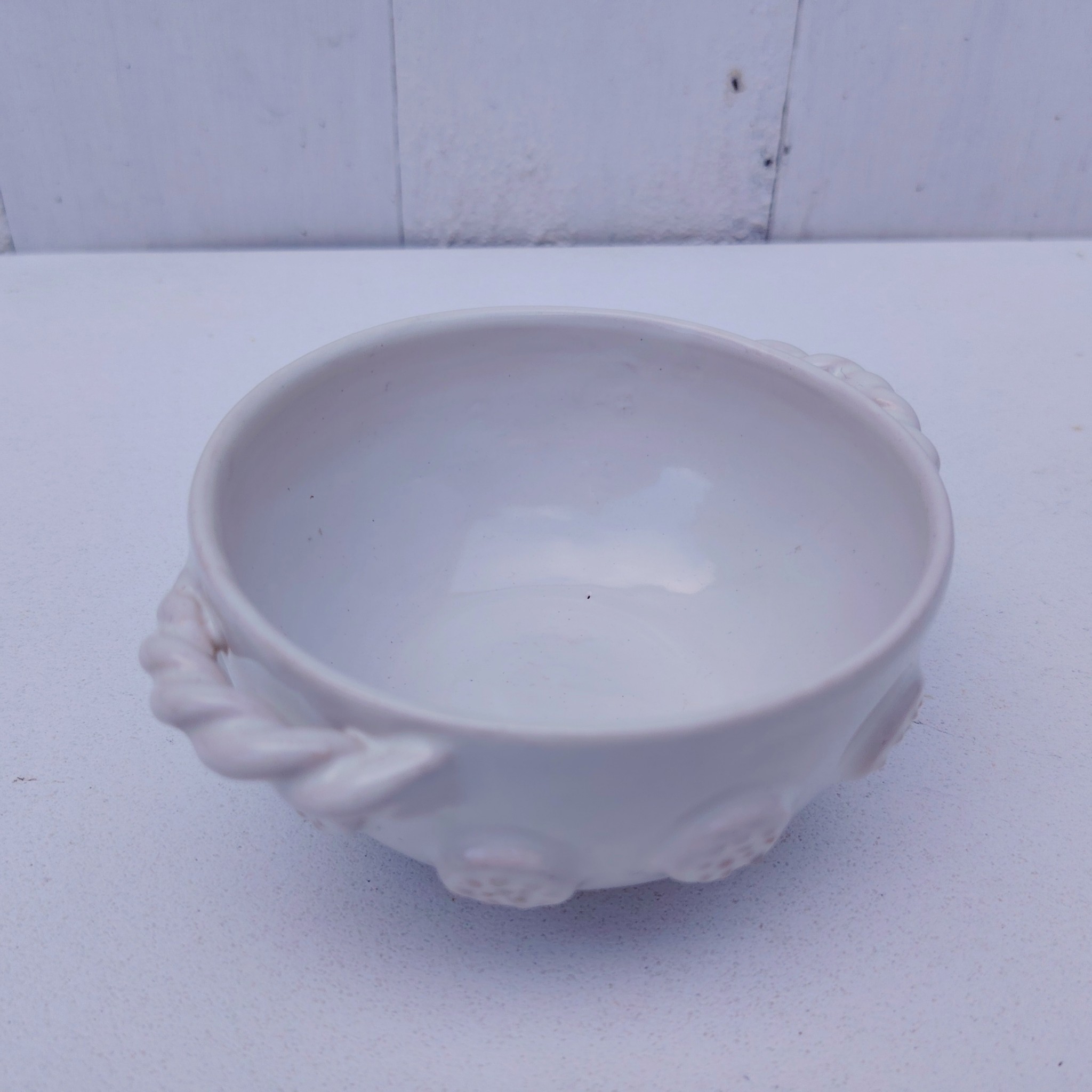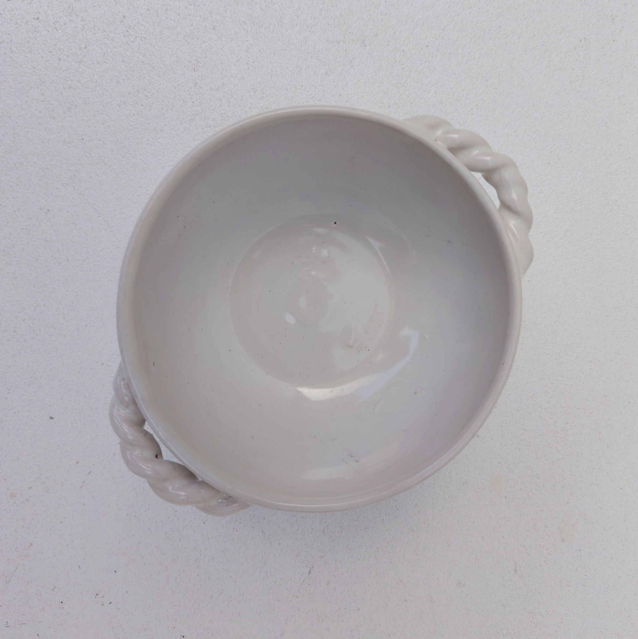 Coupelle en faïence de Malicorne de couleur blanche Par Emile Tessier. Signée sur le dessous.