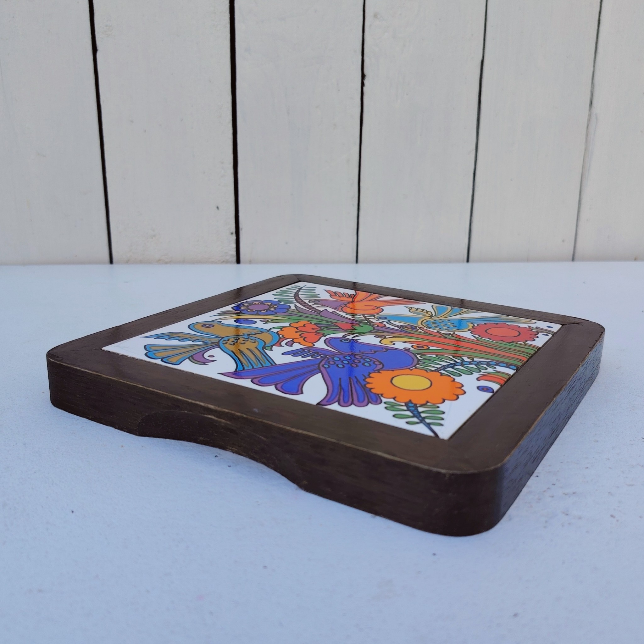 Dessous plat en porcelaine Villeroy & Boch modèle Acapulco. Contour bois