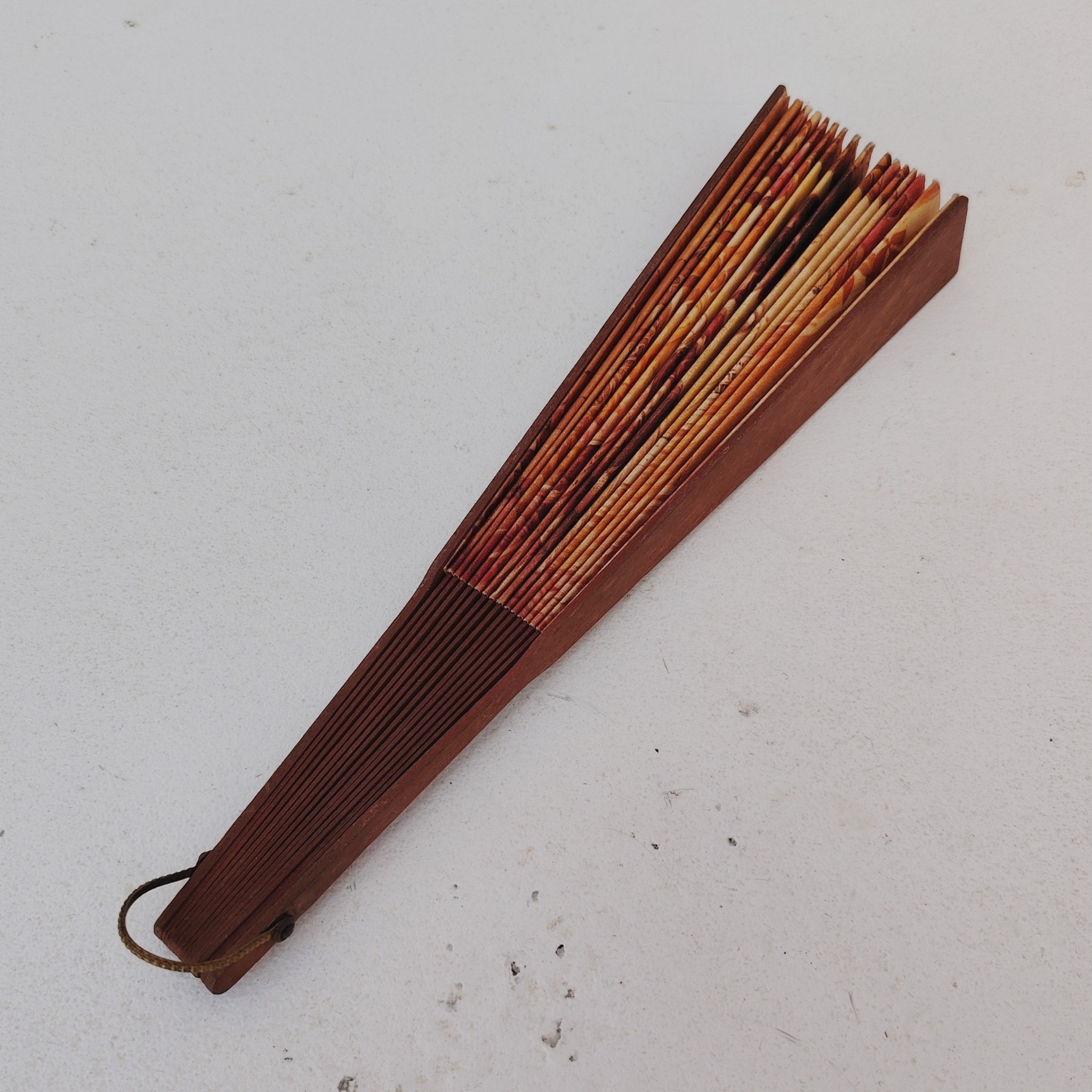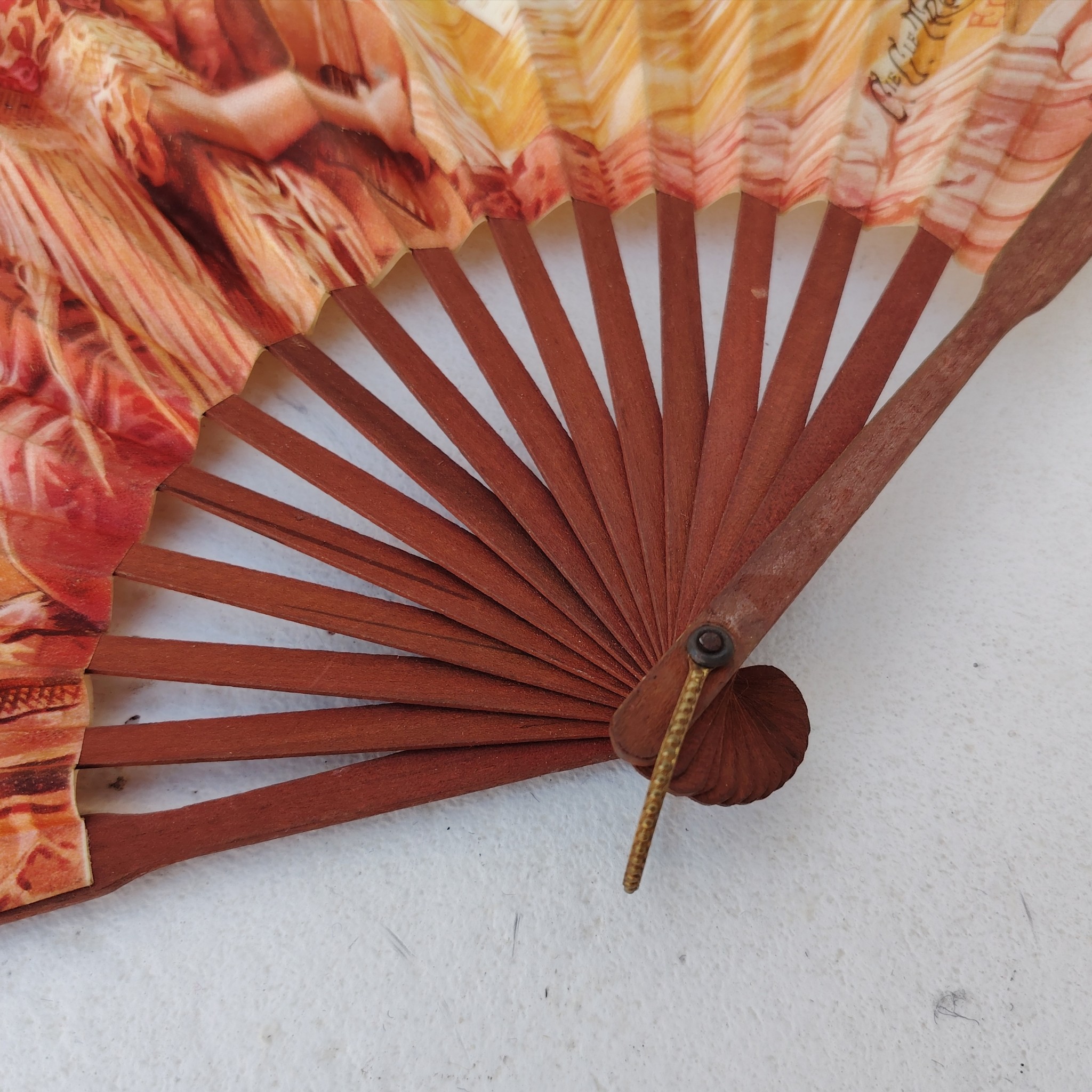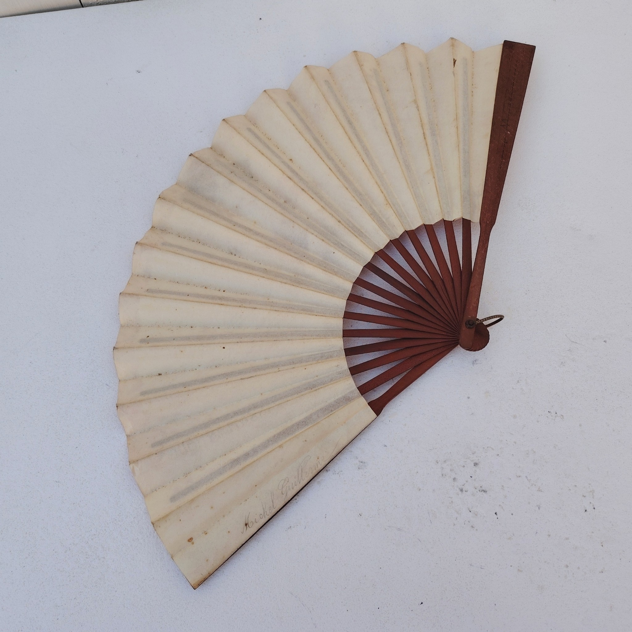 Eventail en bois et papier. Petites rousseurs sur le papier sans gravité.