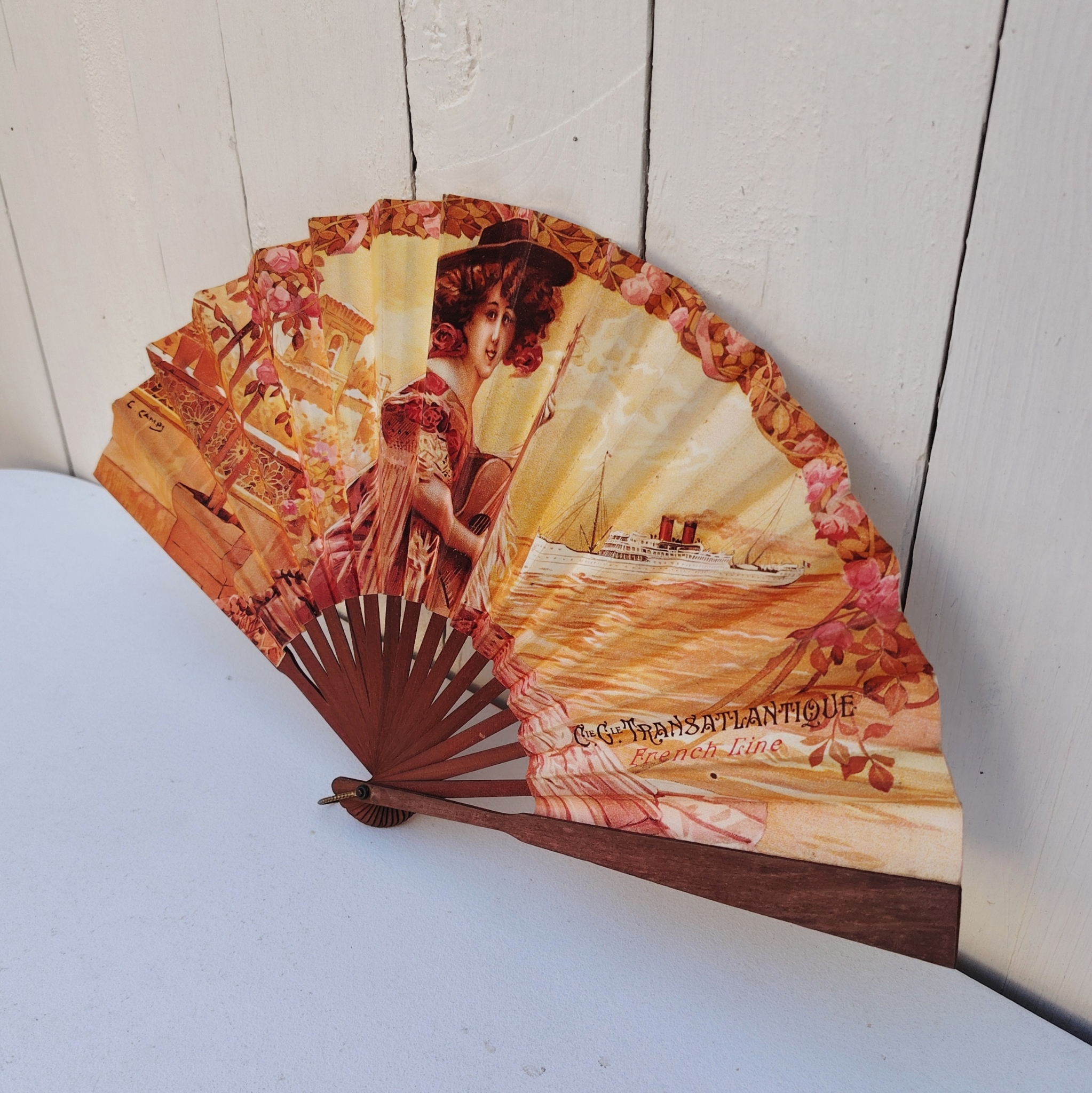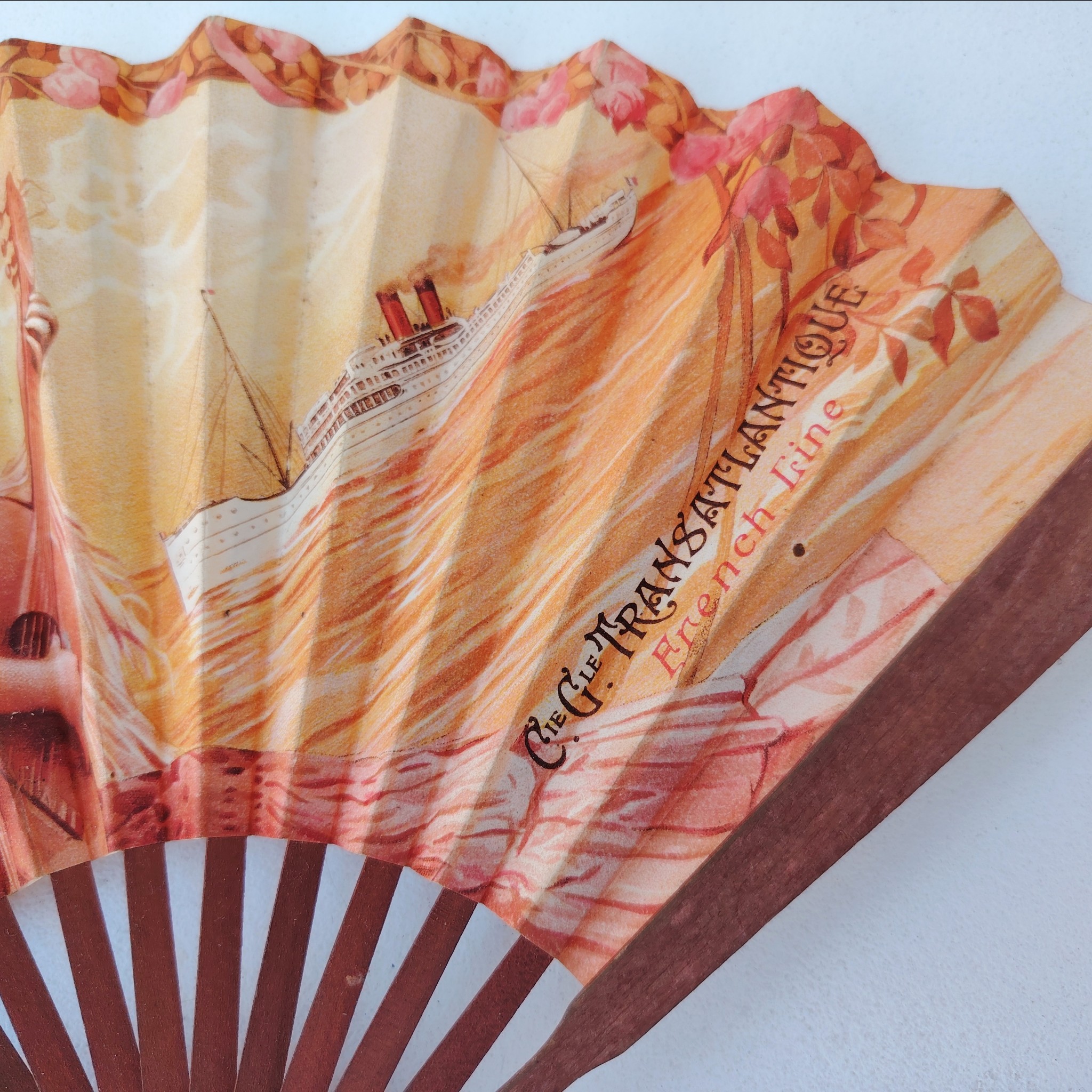 Eventail publicitaire pour la compagnie générale Transatlantique, french Line. Illustration de Gaspar Camps.