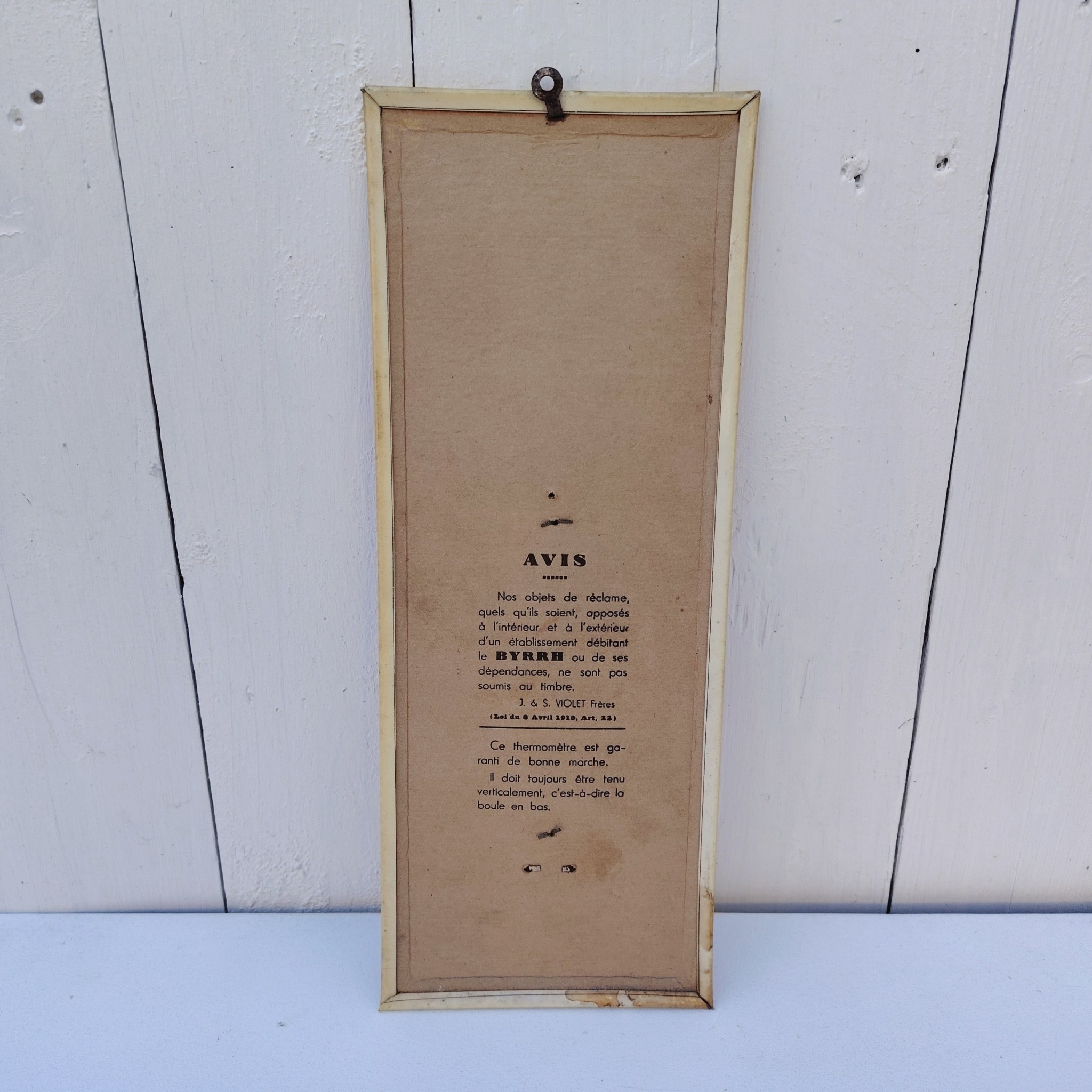 Ancien glaçoïde thermomètre publicitaire pour la marque d’alcool Byrrh.
