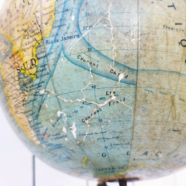 Usure du papier sur le dessus du globe, quelques petits manques de papier.