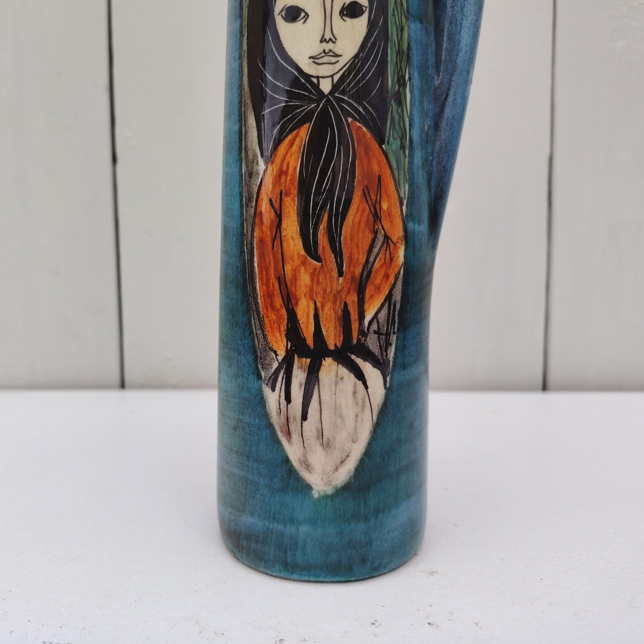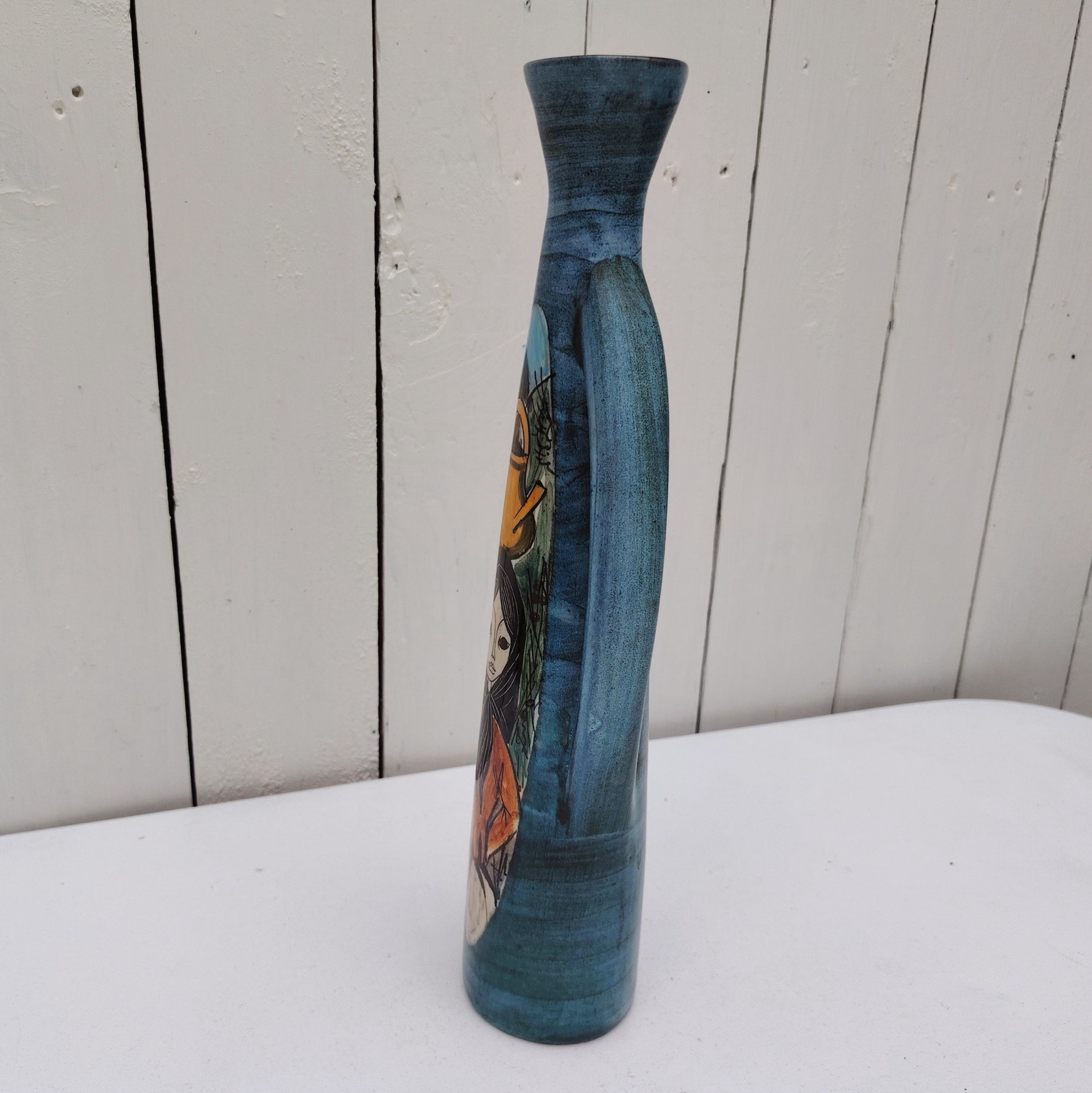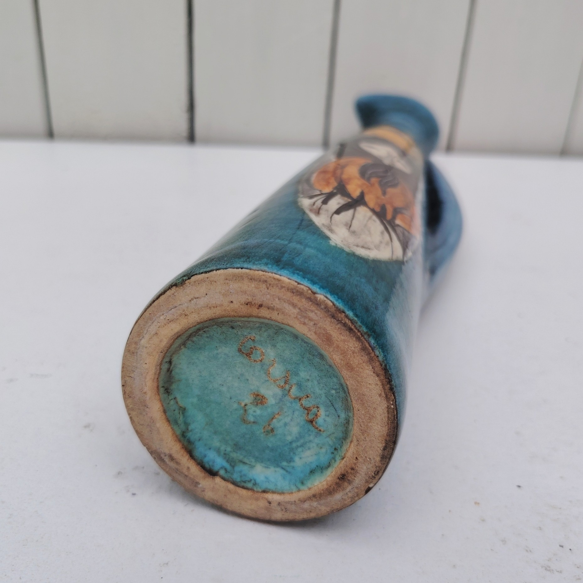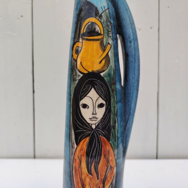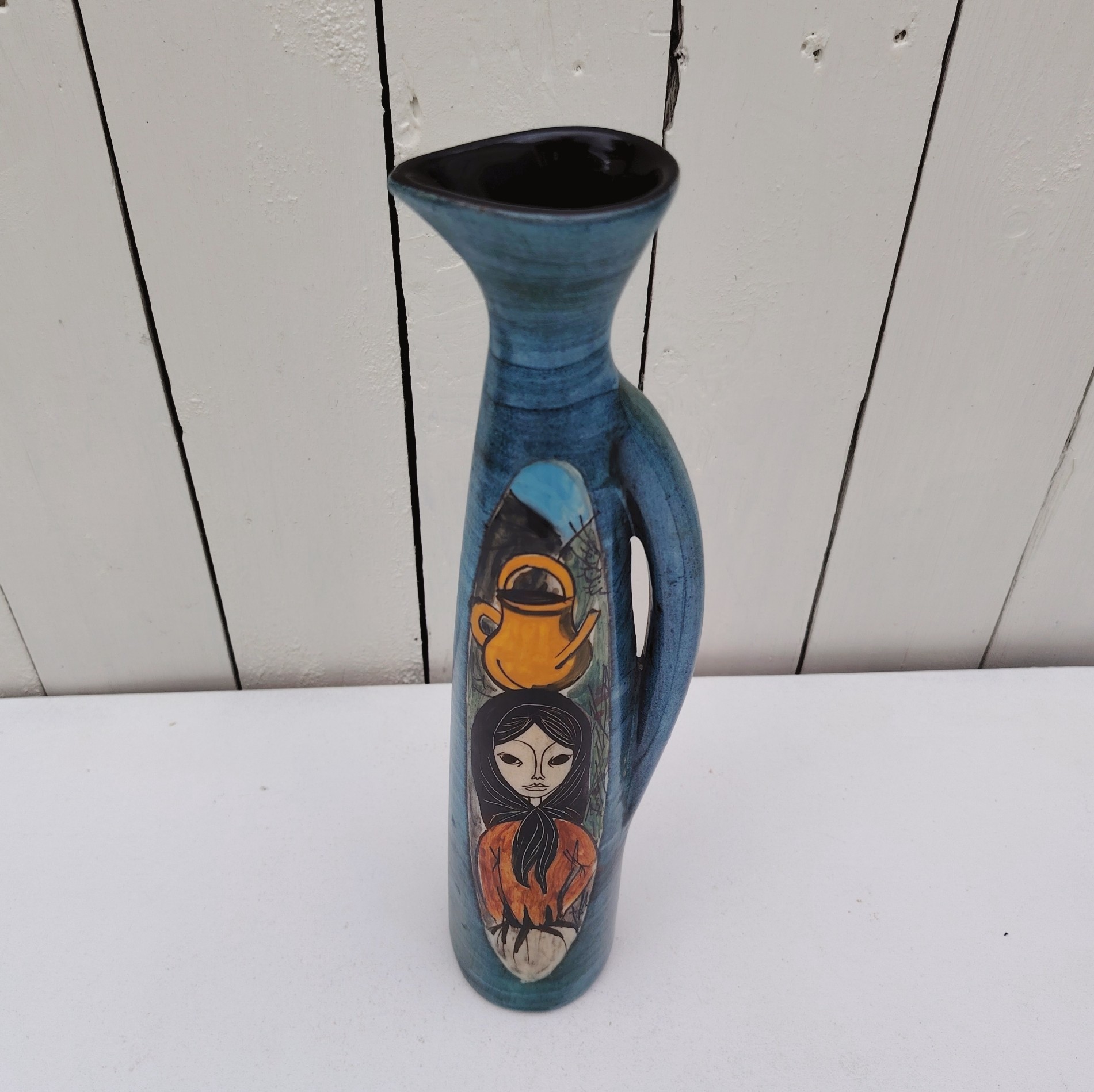 Grand pichet pouvant servir de soliflore en céramique à décor d’une femme corse , signé Jean de Lespinasse sur le dessous.
