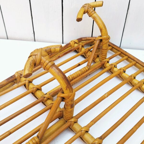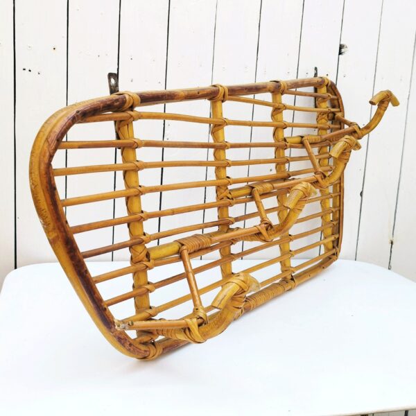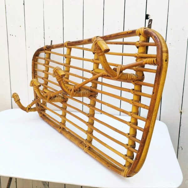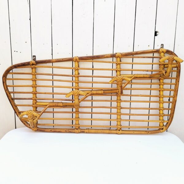 Grand porte-manteaux en rotin, 4 patères. Datant des années 60. Deux accroches murales.