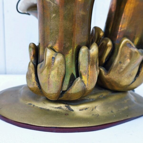 Traces de vert-de-gris sur certains endroits, belle pâtine dorée. Non signée mais répertoriée. Lampe très lourde.