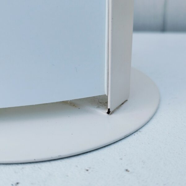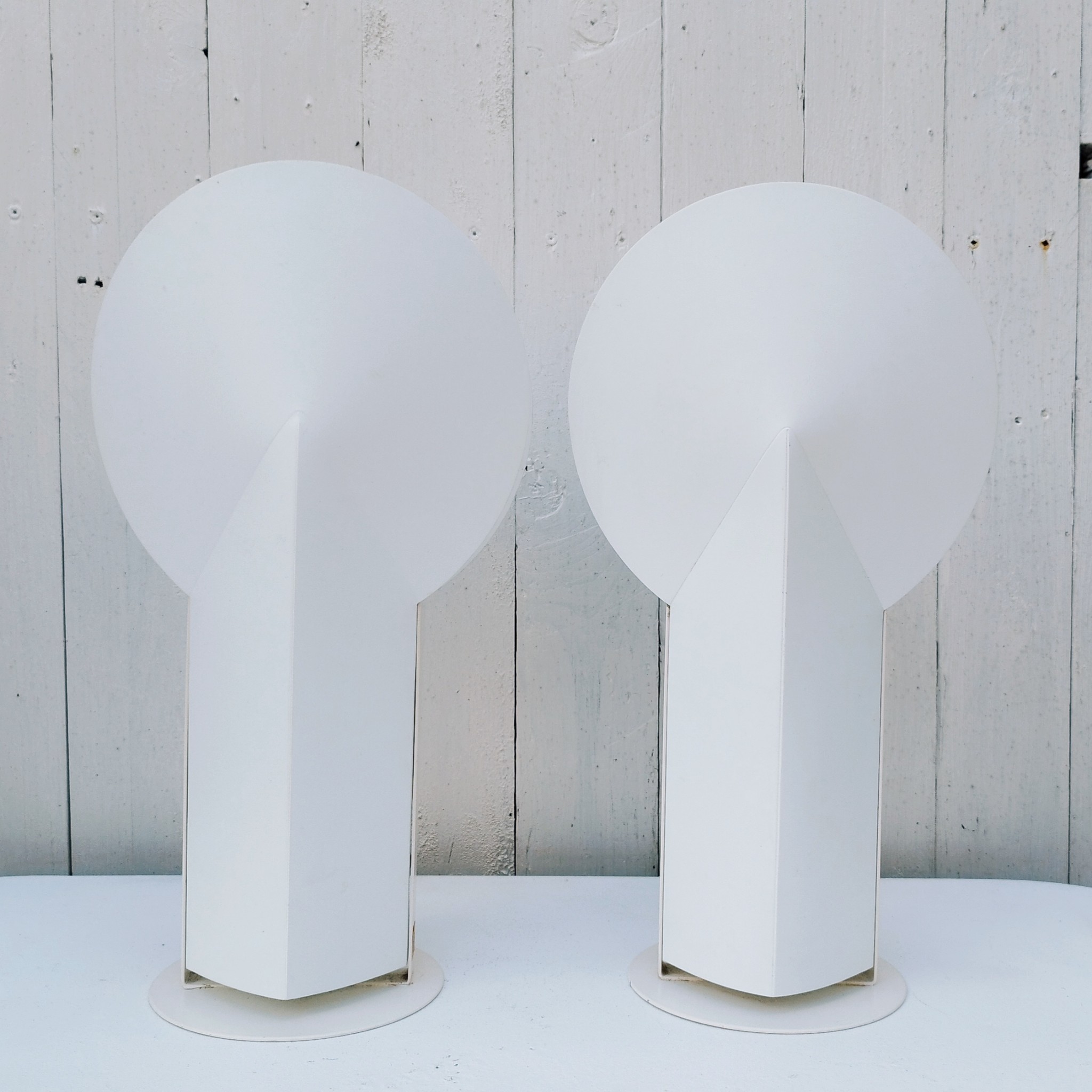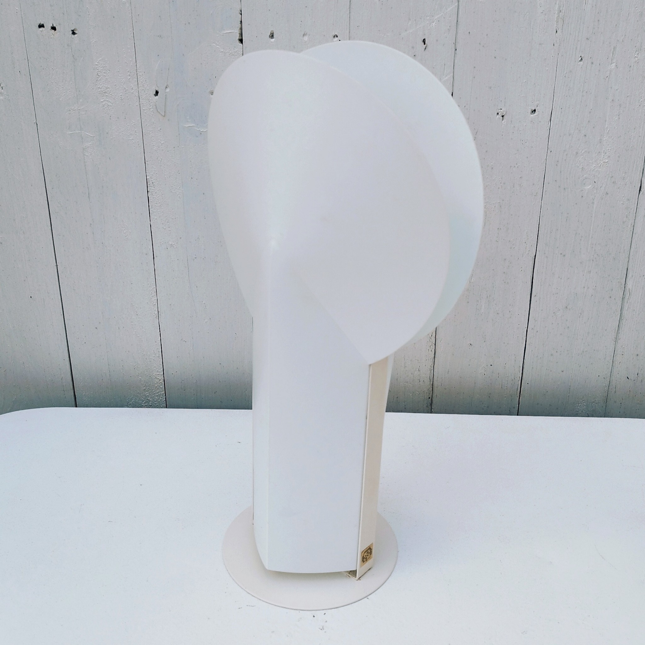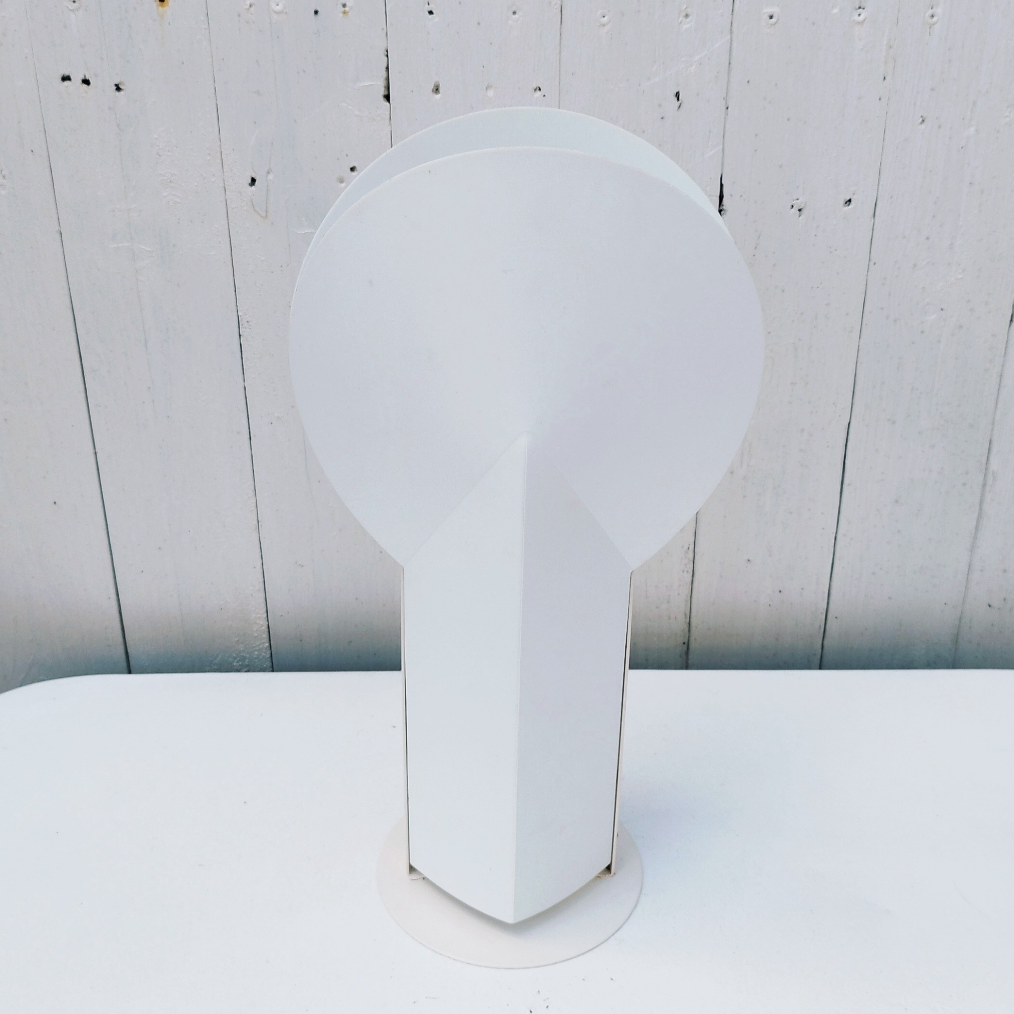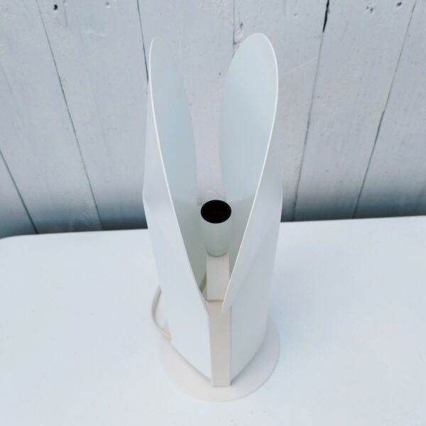 Lampe à poser datant des années 80, créée par Samuel Parker pour les éditions Radonov France. En plastique souple et métal peint blanc.