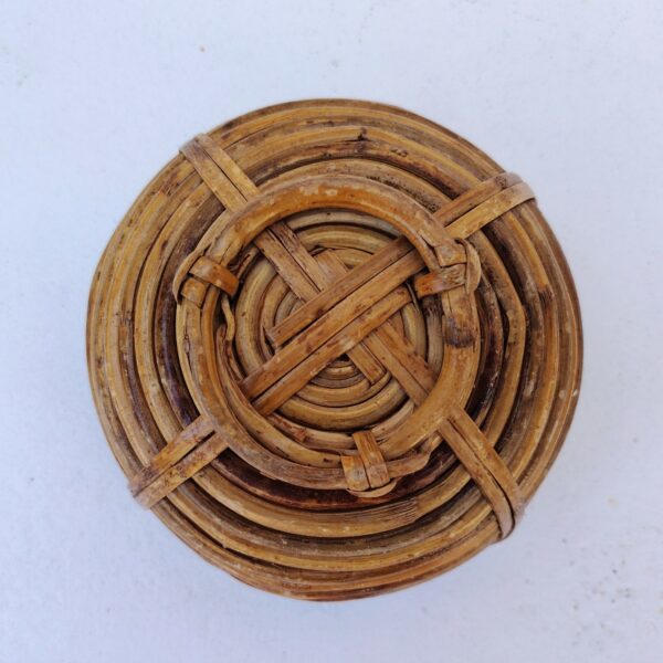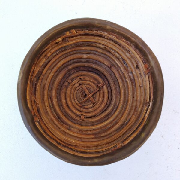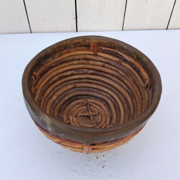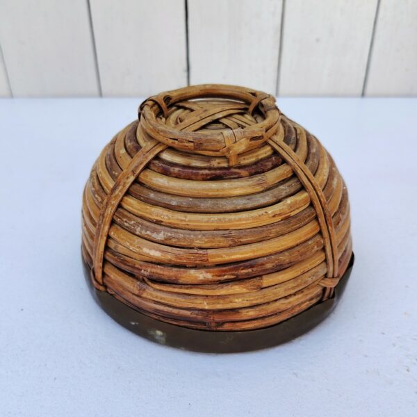 Panière en rotin finissant par un col en laiton doré, faisant penser au travail de Gabriella Crespi.