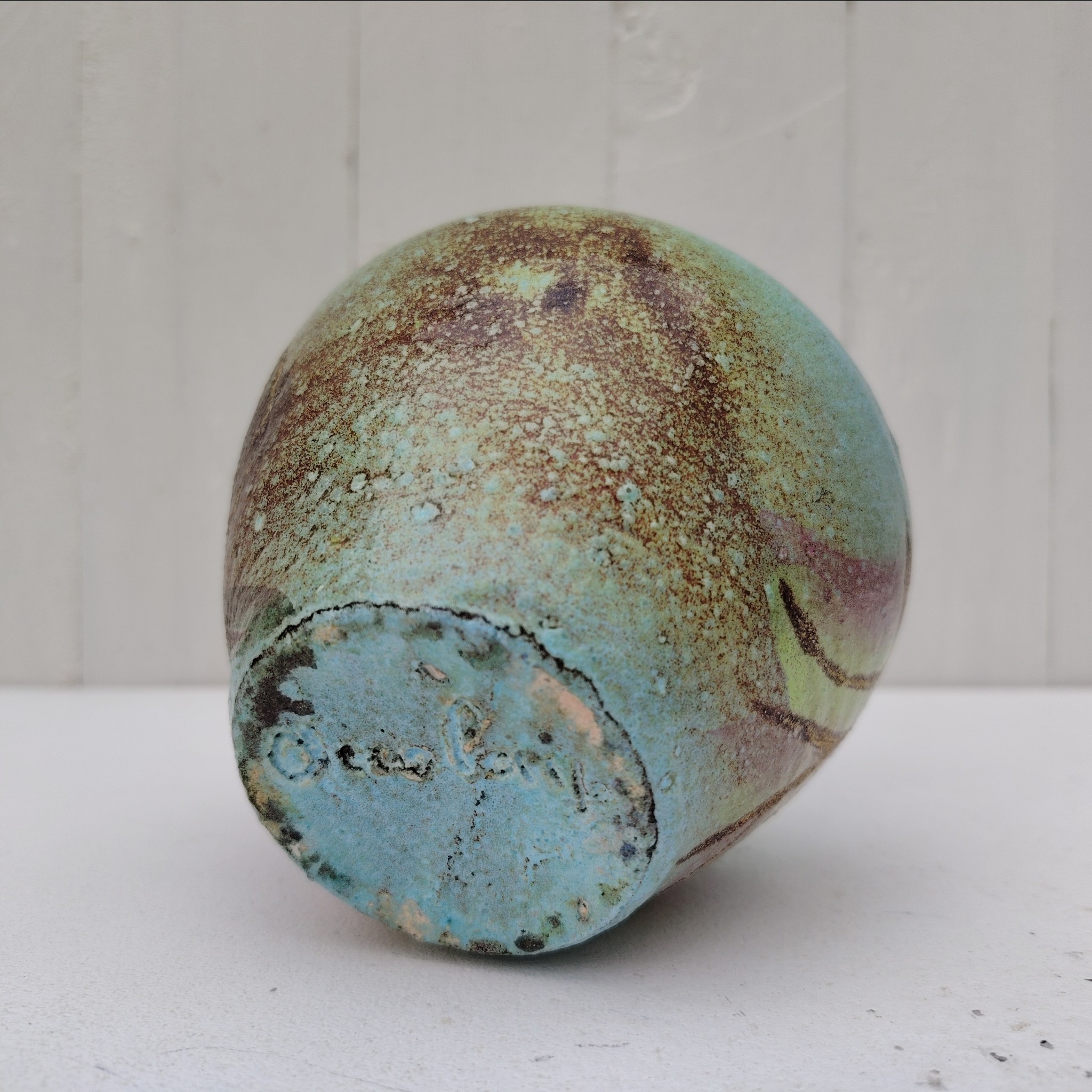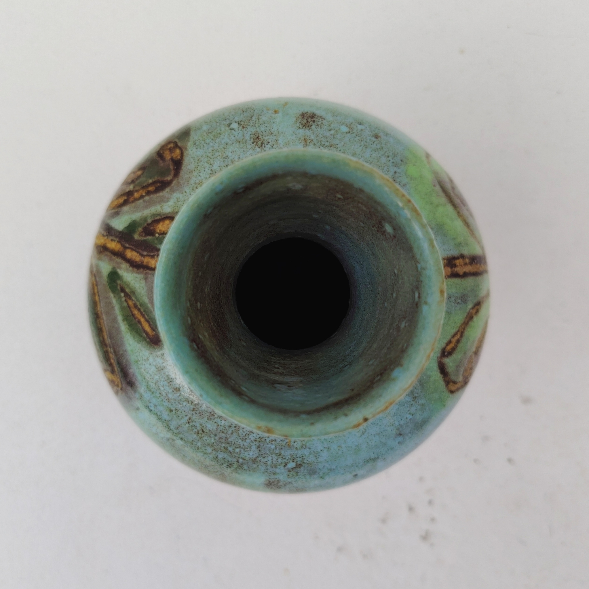 Vase en céramique bleu-vert turquoise, signé Accolay. Décor de Fleur stylisée.