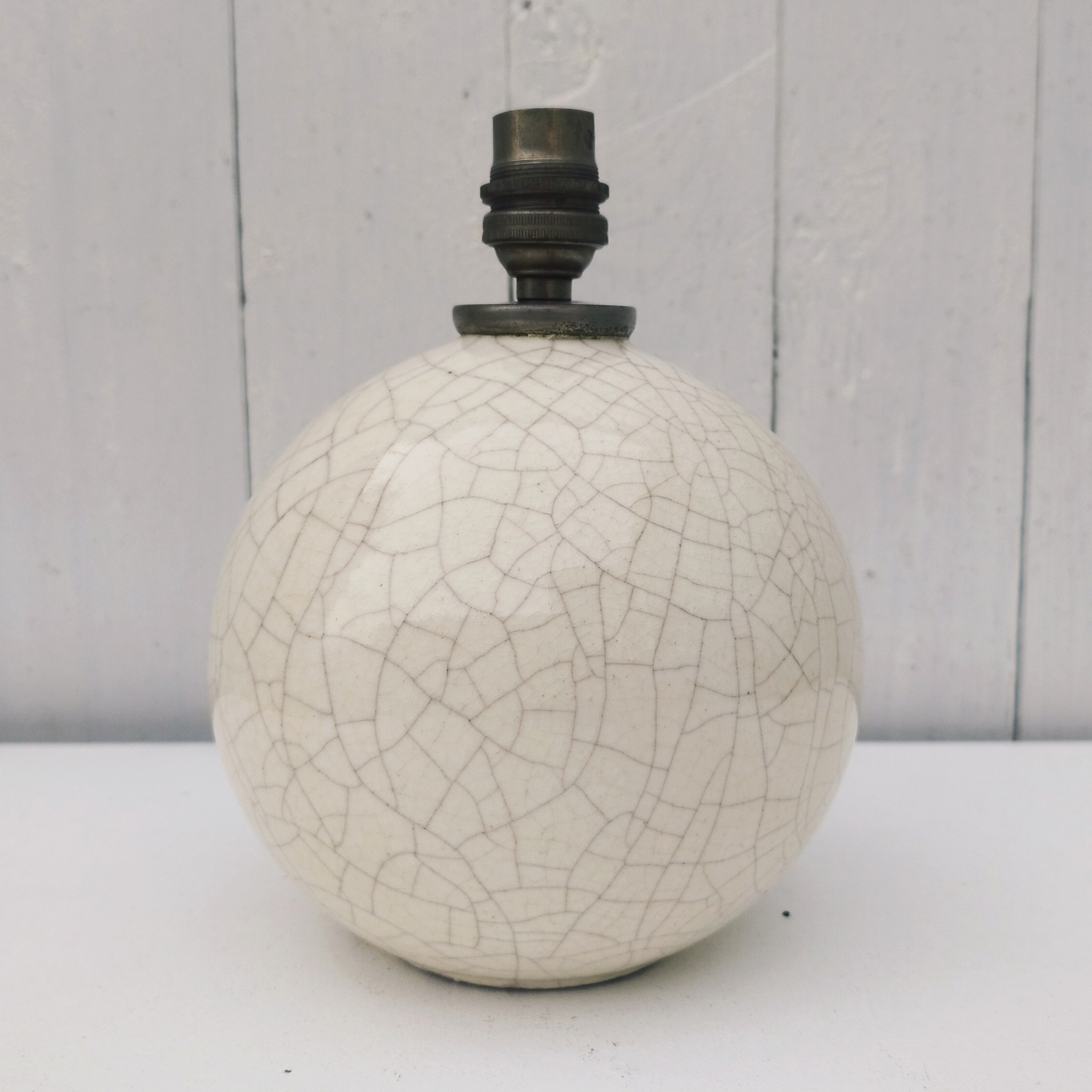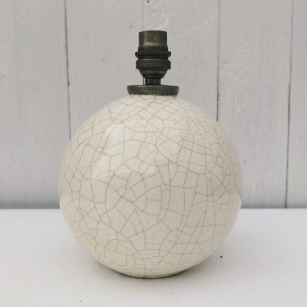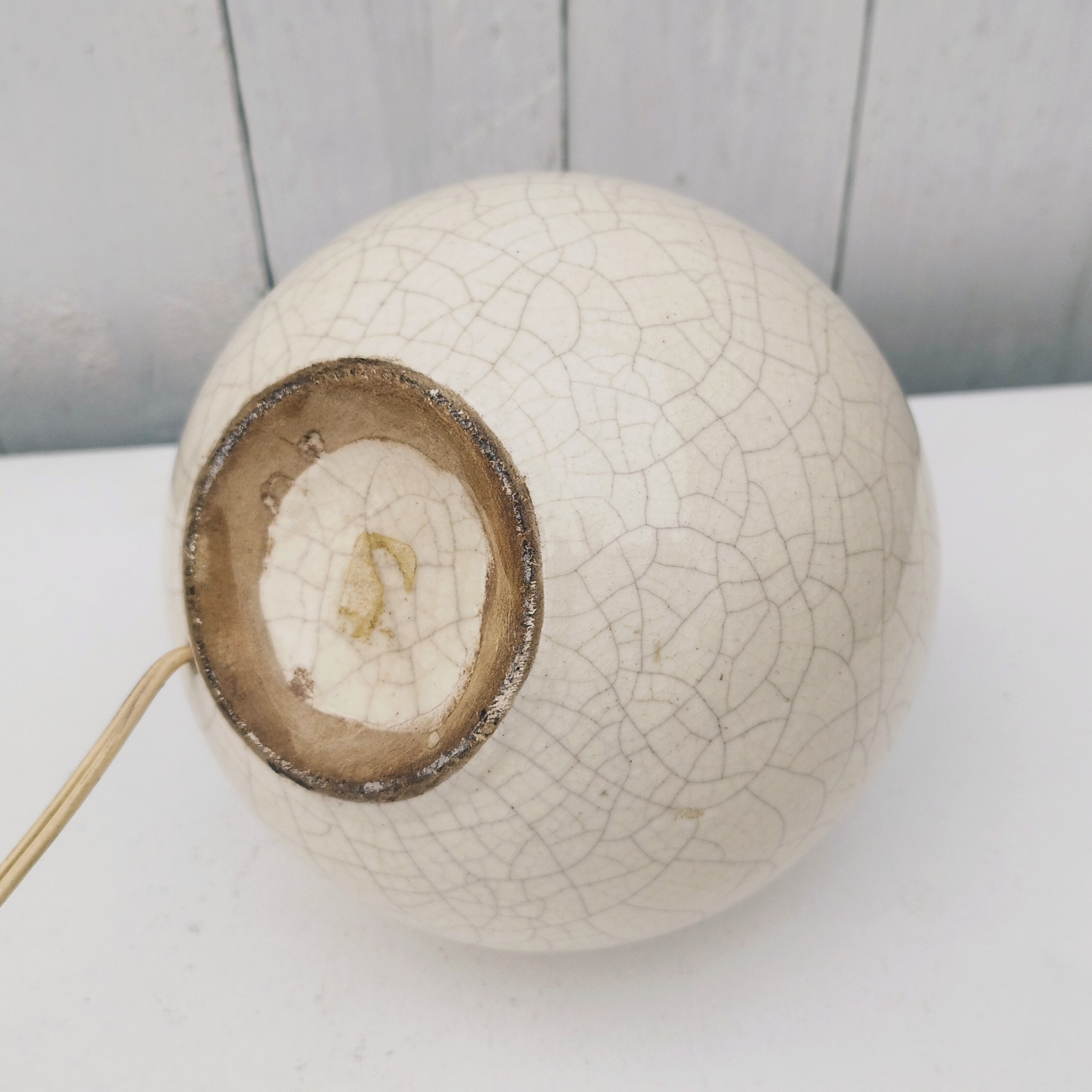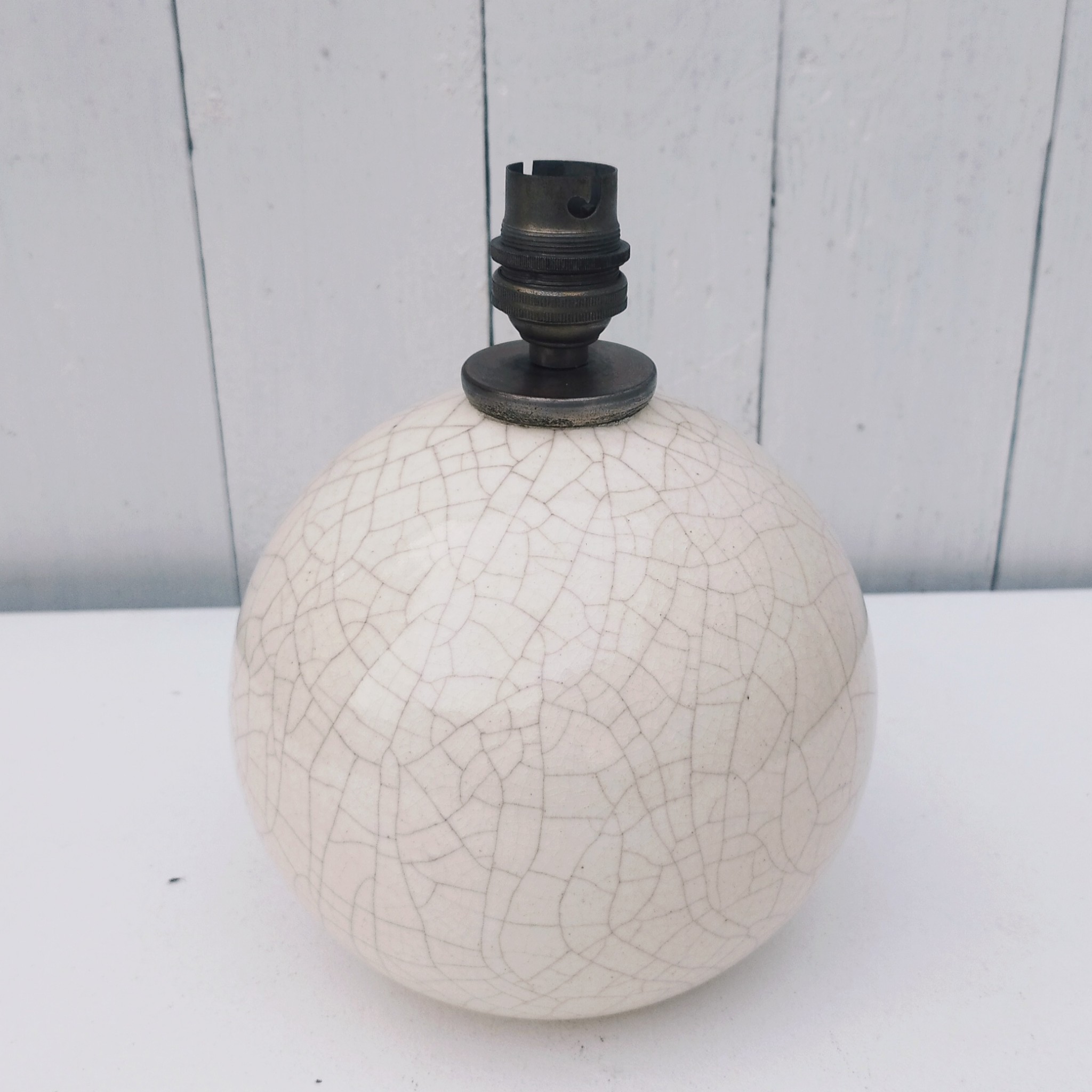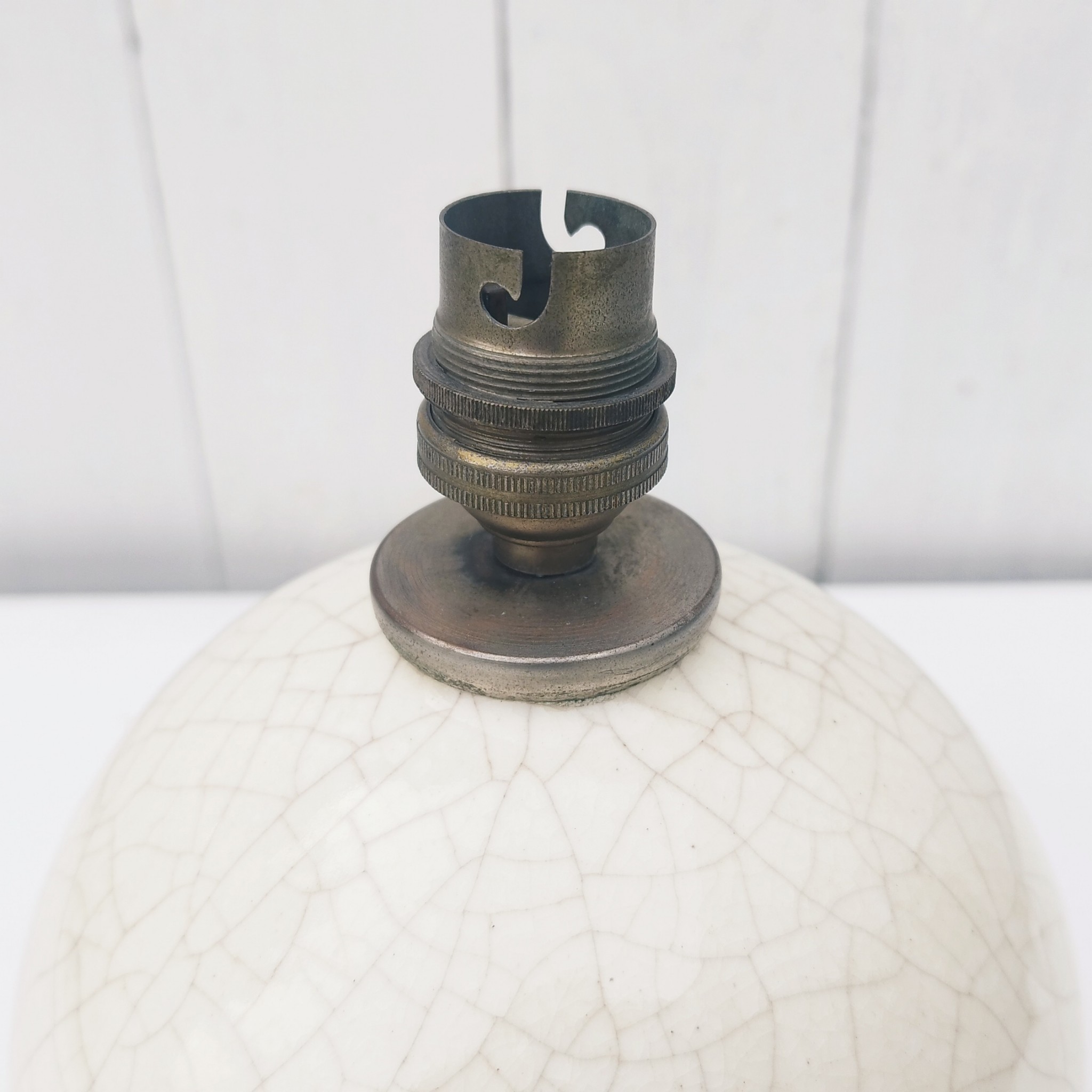 Pied de lampe art déco en céramique craquelée de couleur blanche attribué à Jean Besnard