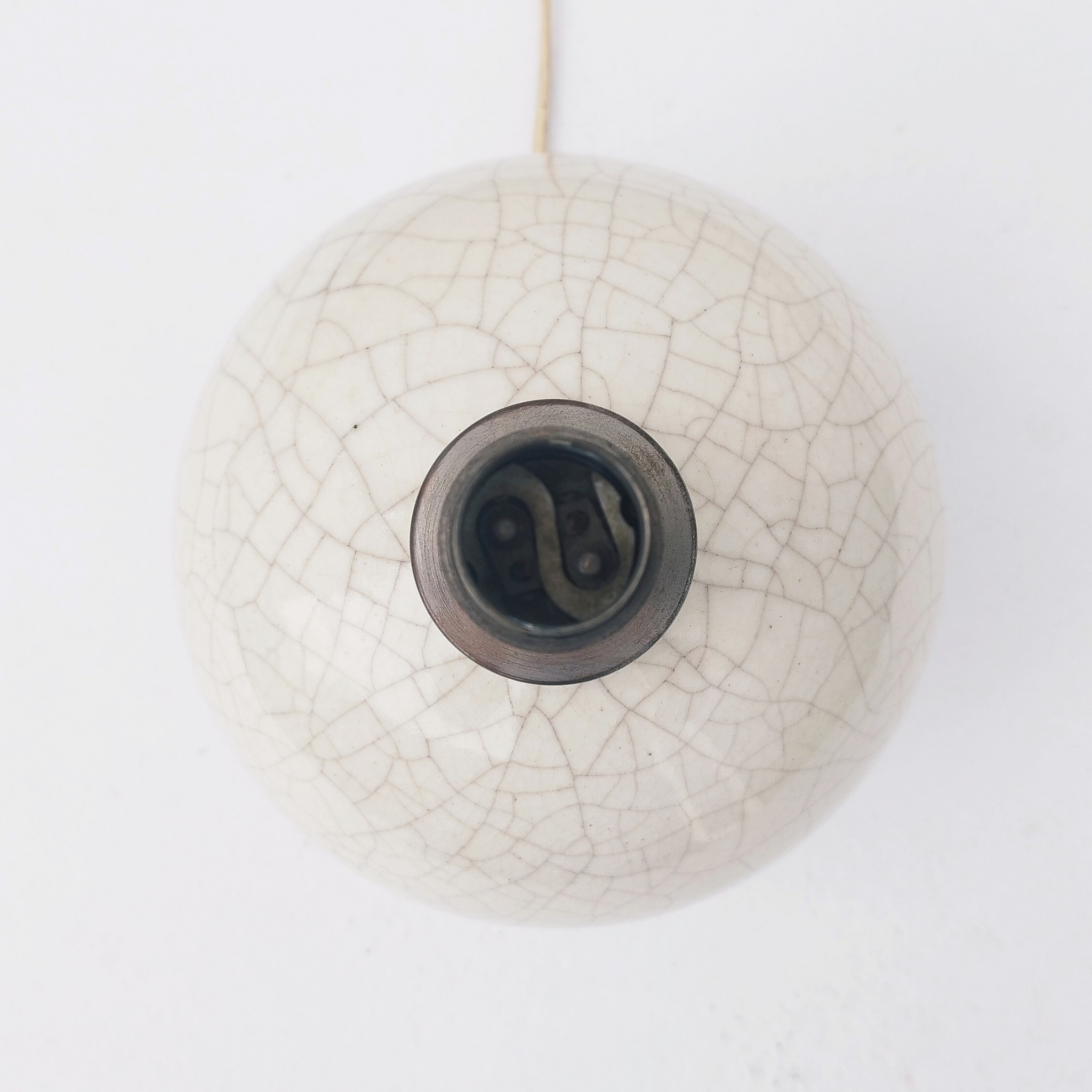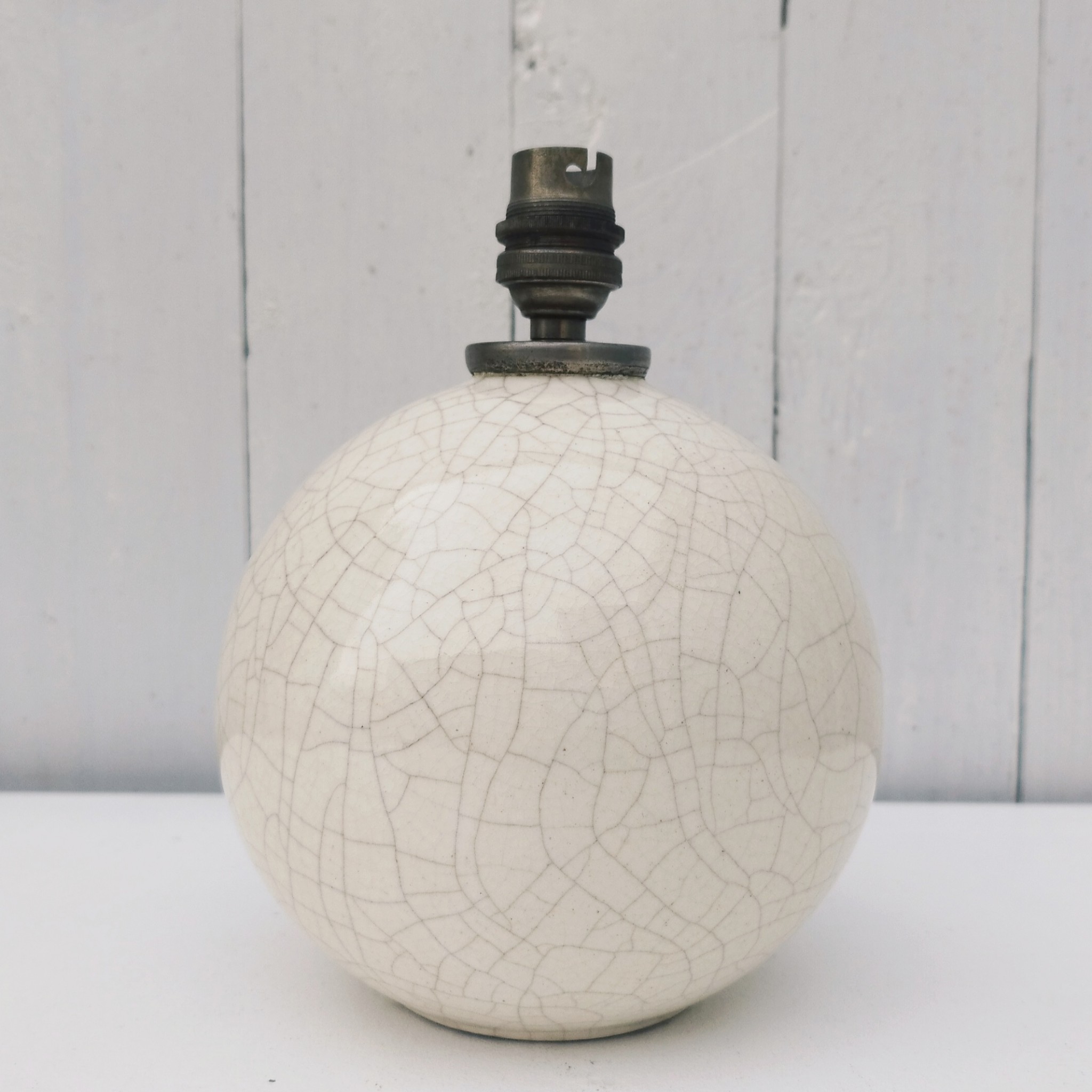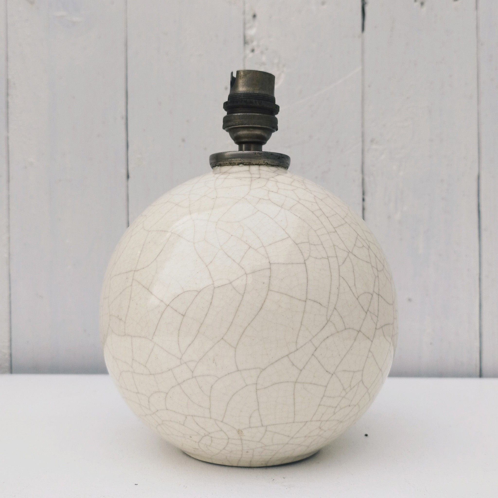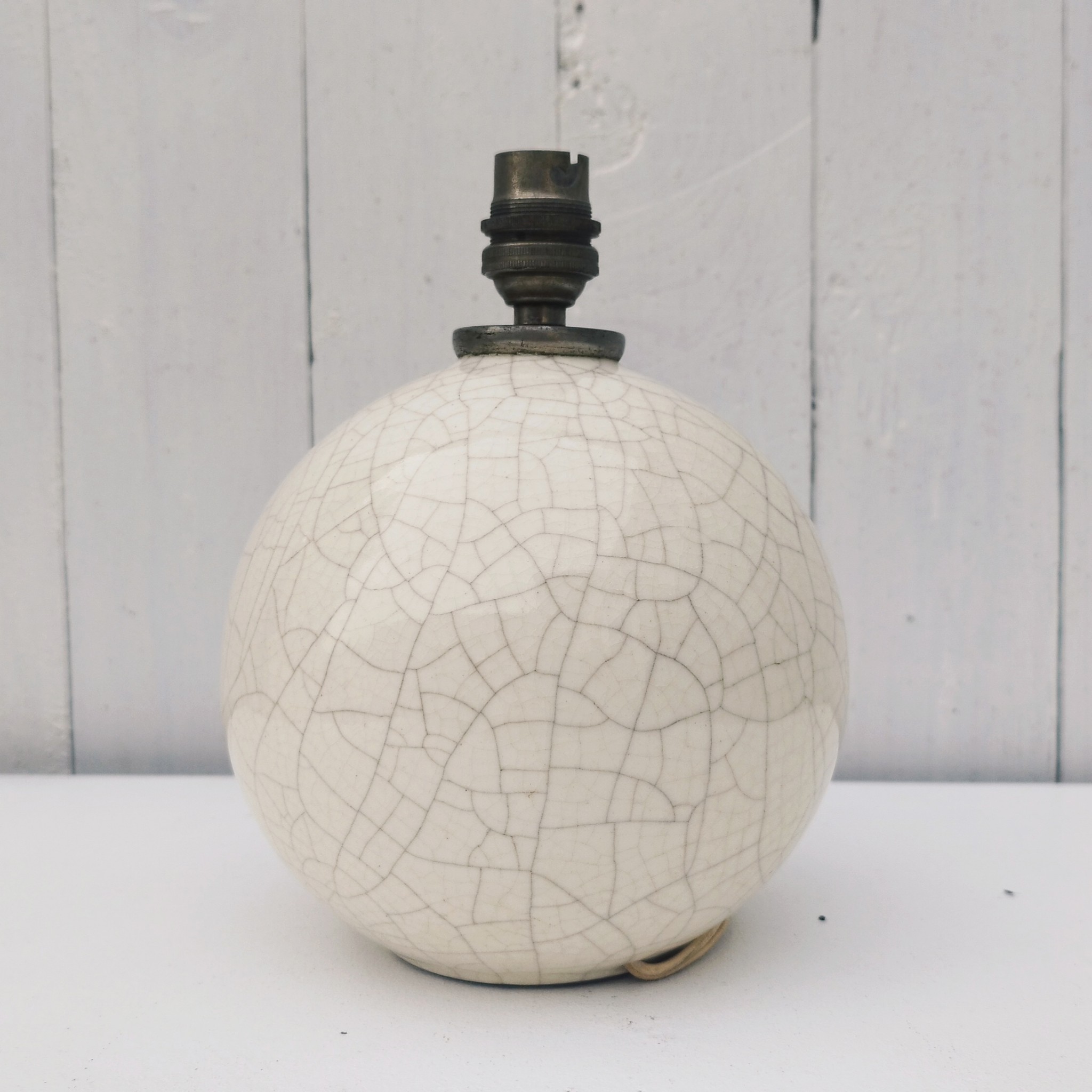 Pied de lampe art déco en céramique craquelée de couleur blanche attribué à Jean Besnard