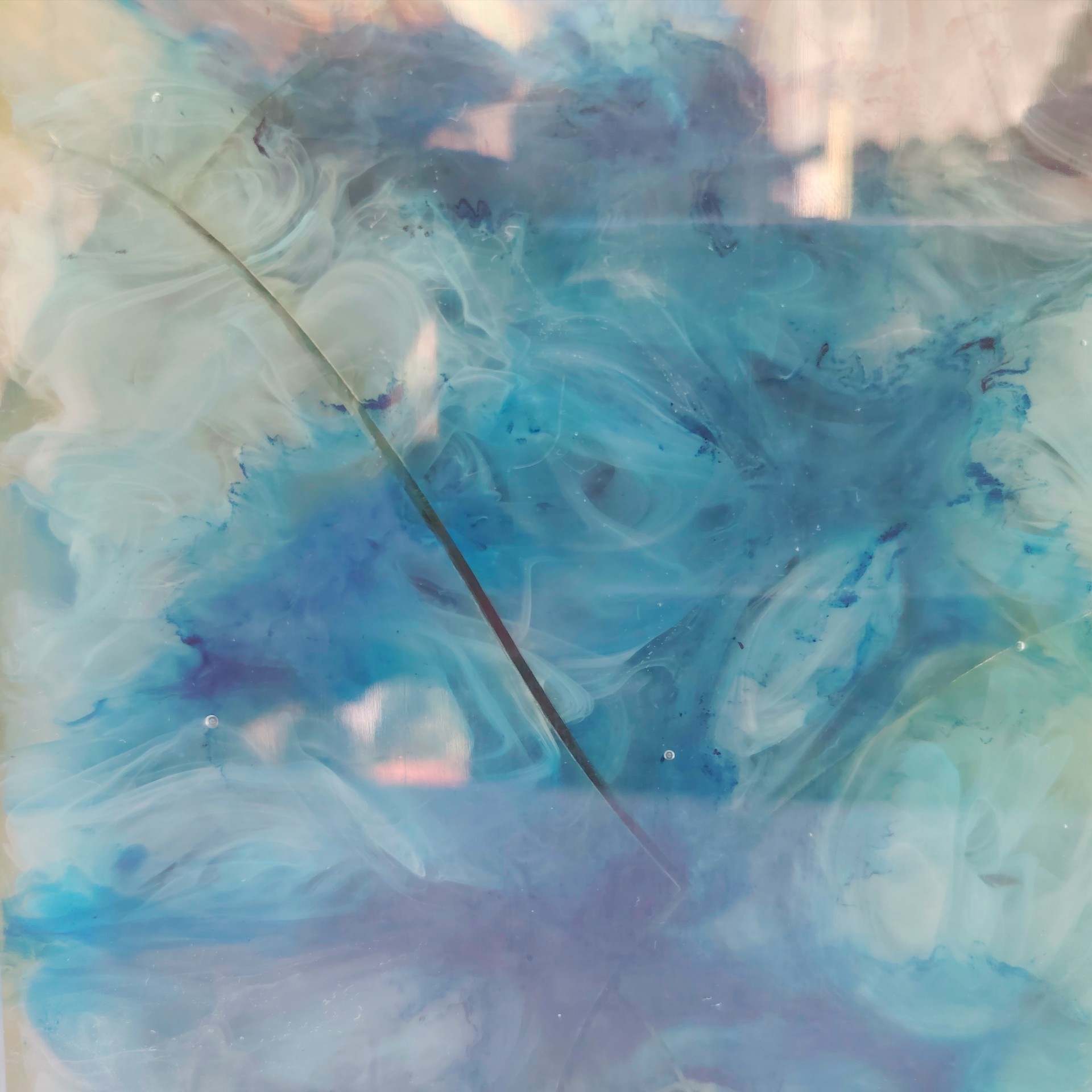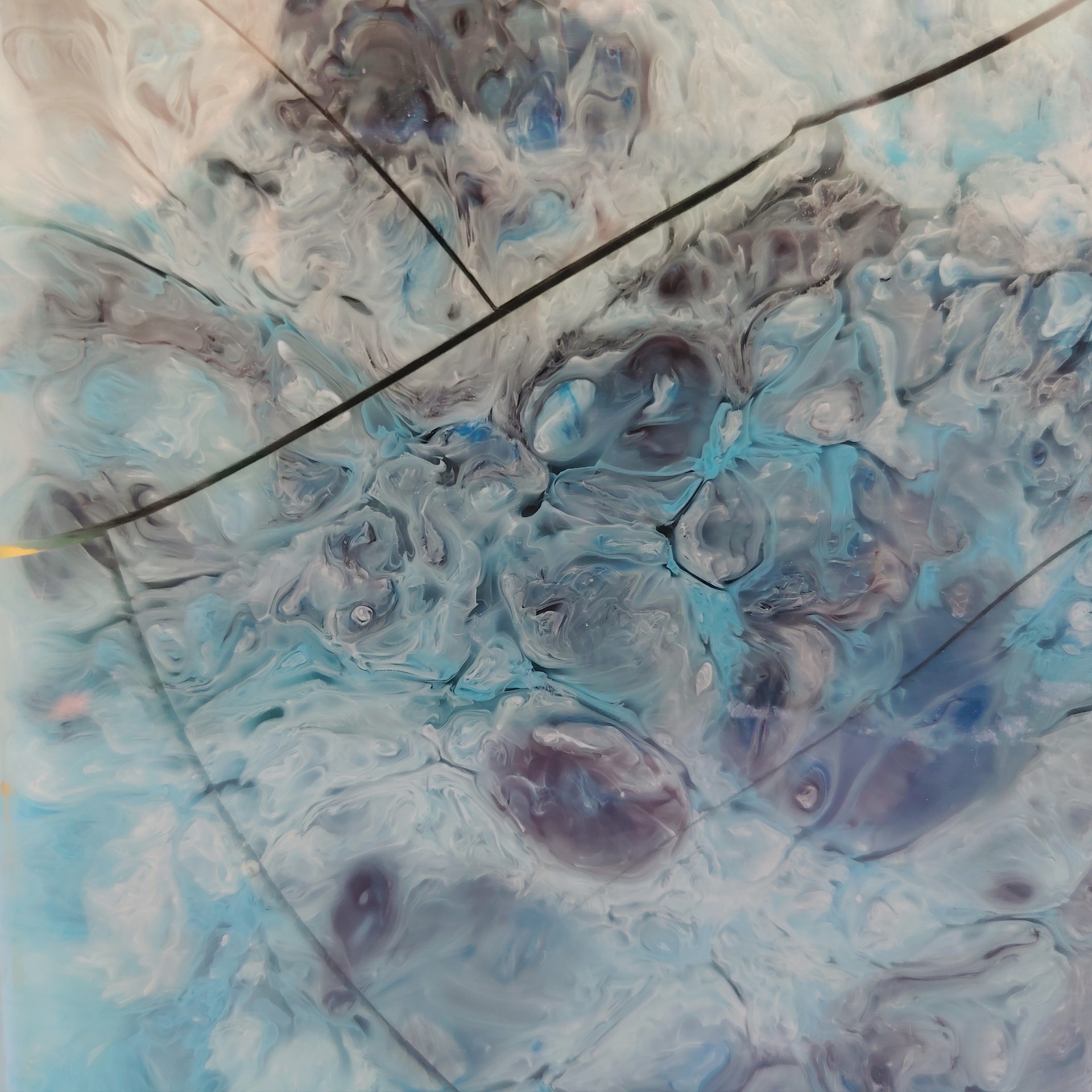 Lampe en résine fractale faisant penser au travail de Pierre Giraudon, datant des années 70. Tons turquoises . Petites rayures et traces d’usage