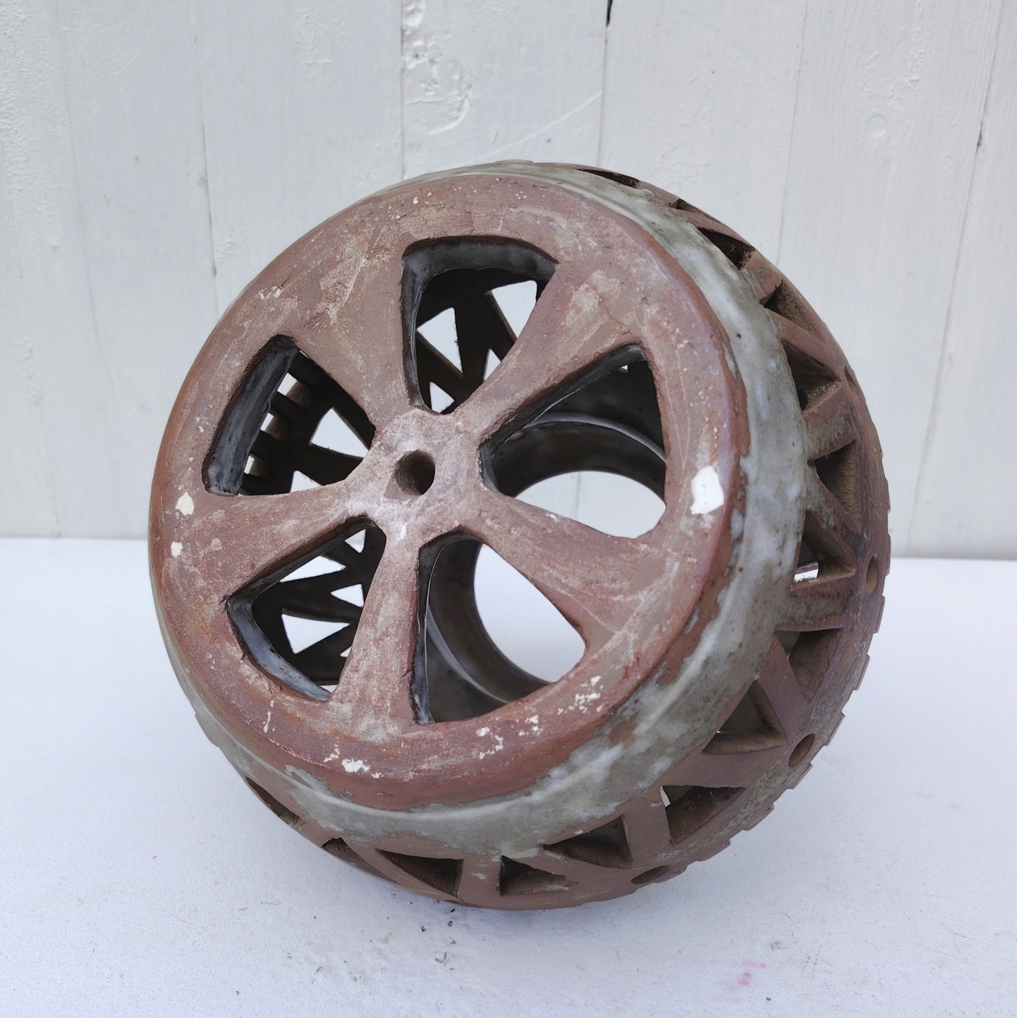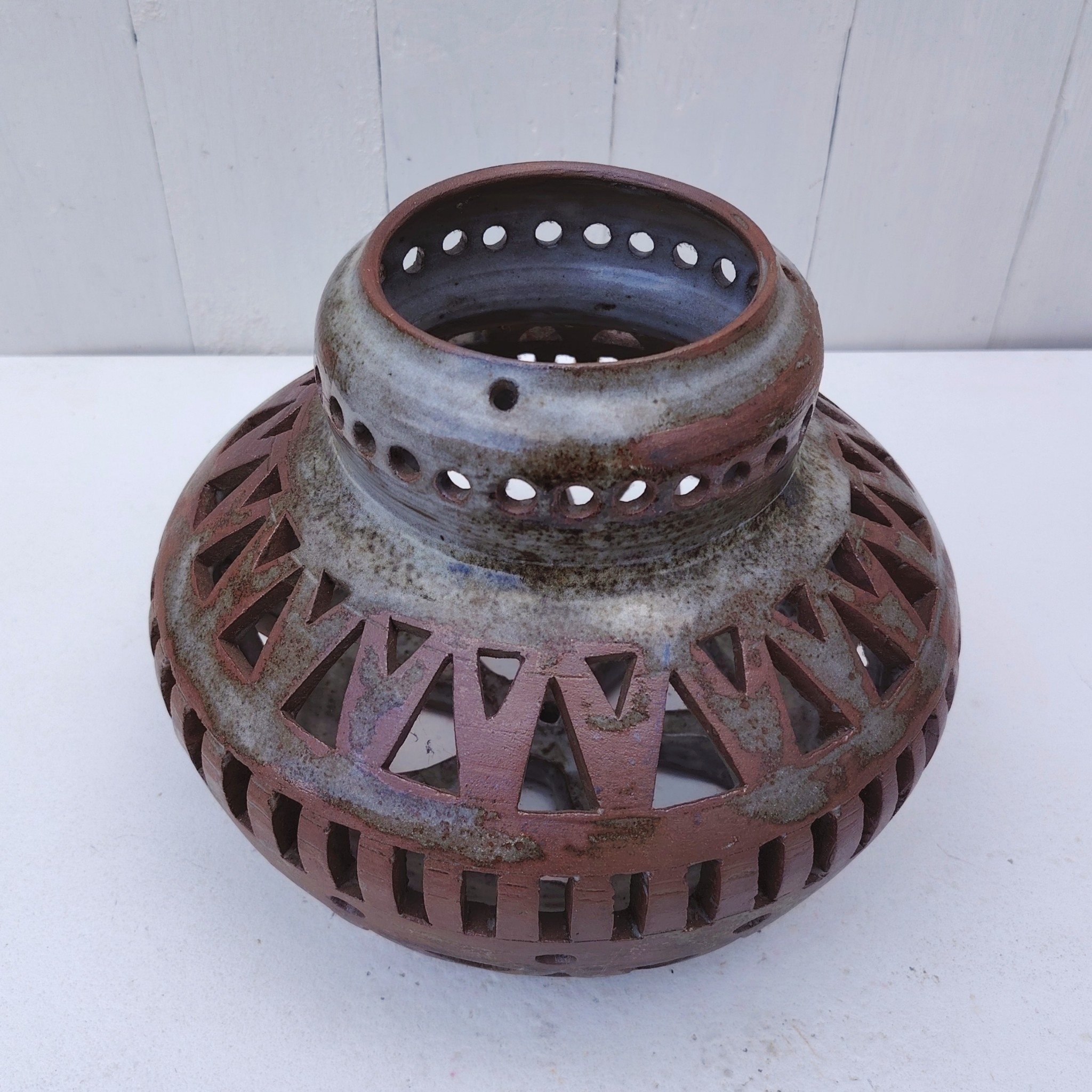 Pied de lampe en céramique ajourée par Chantal et Thierry Robert à Poncé sur Loire. Non signé. Non électrifié