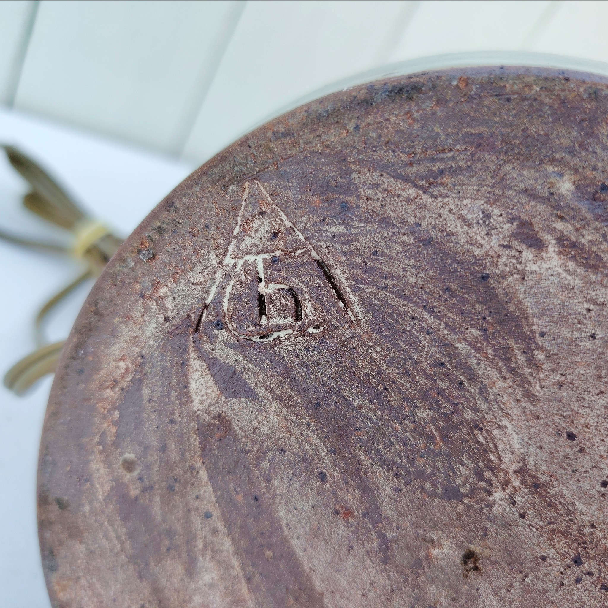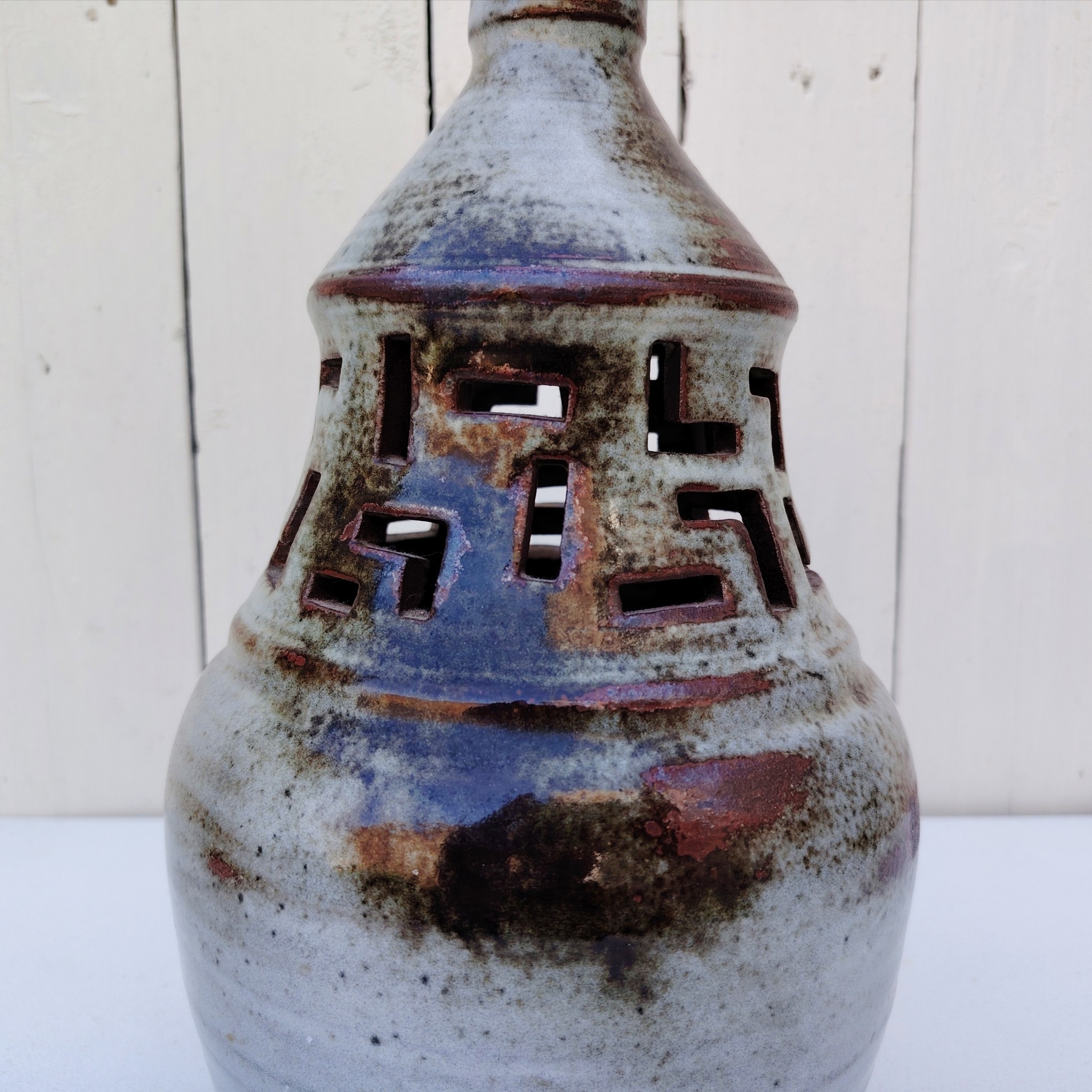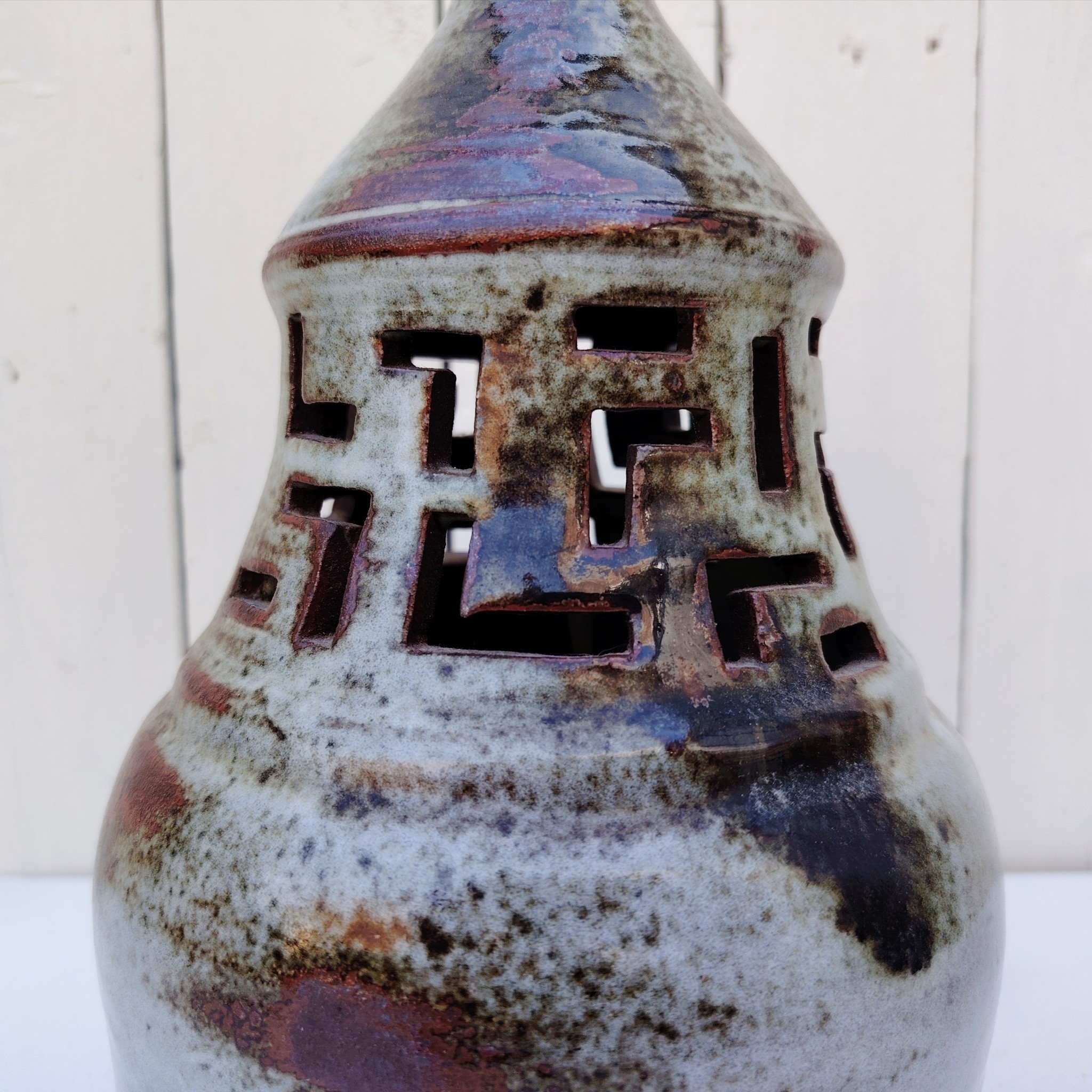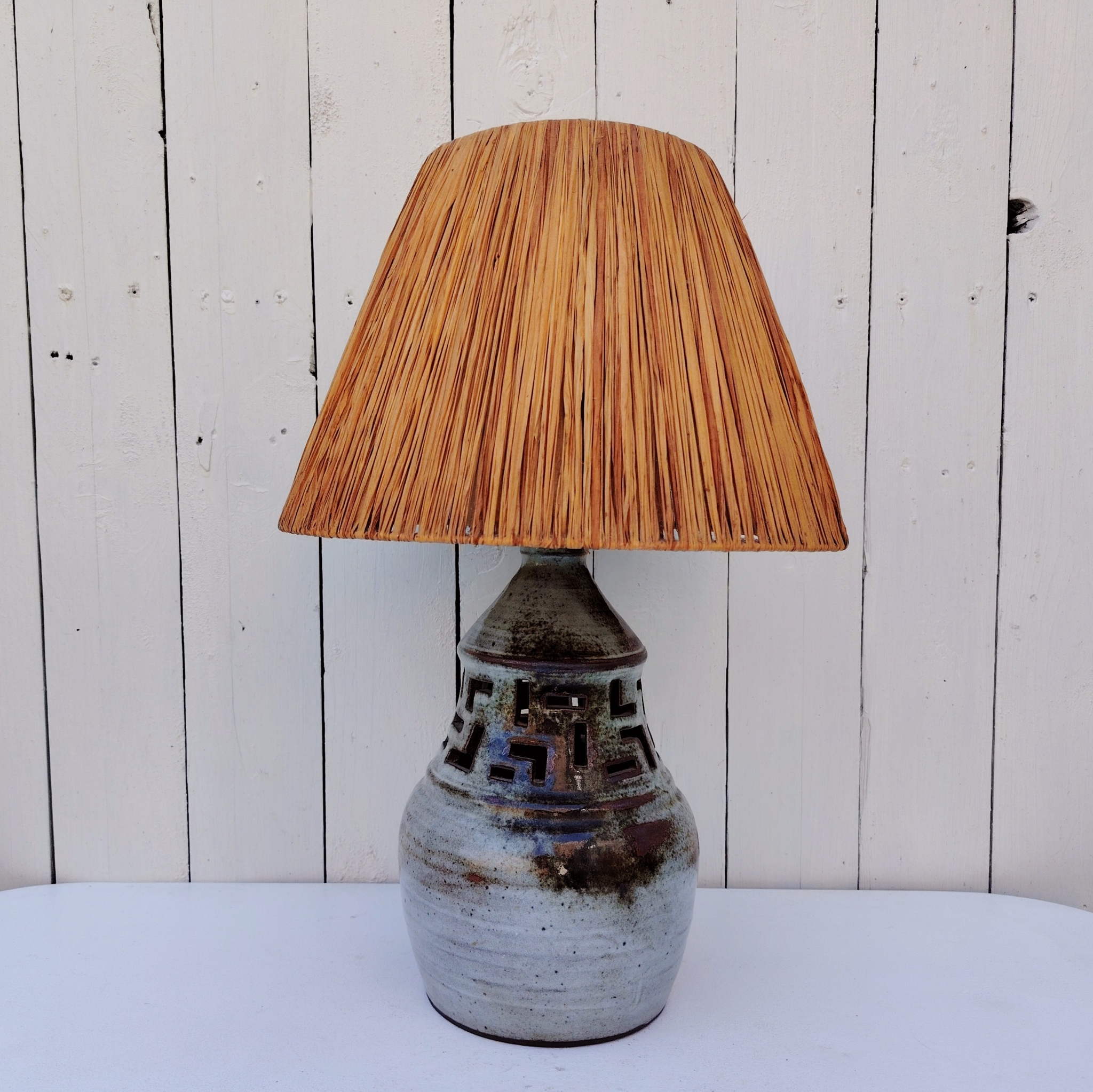 Pied de lampe en céramique ajourée par Chantal et Thierry Robert à Poncé sur Loire. signé sur le dessous.