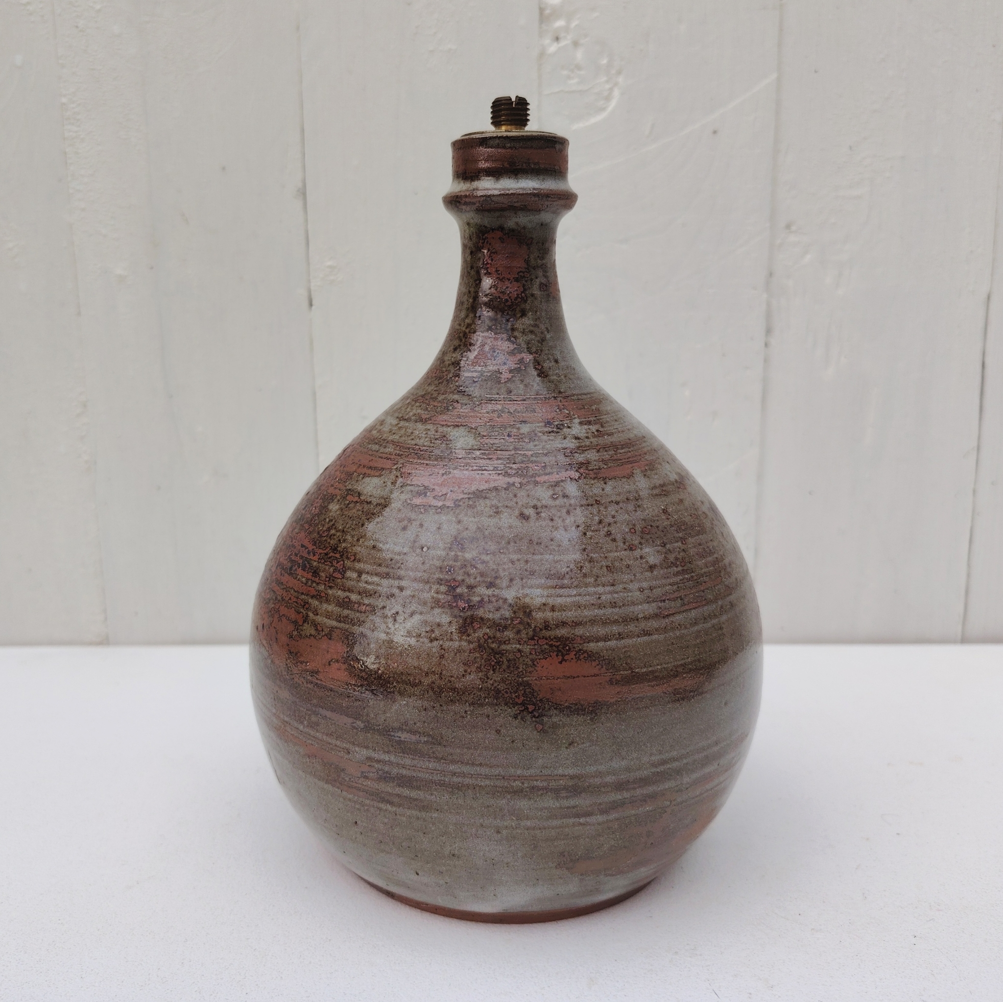 Pied de lampe en céramique signé Chantal et Thierry Robert à Poncé sur Loire. Signature en creux sur le dessous. Non électrifié