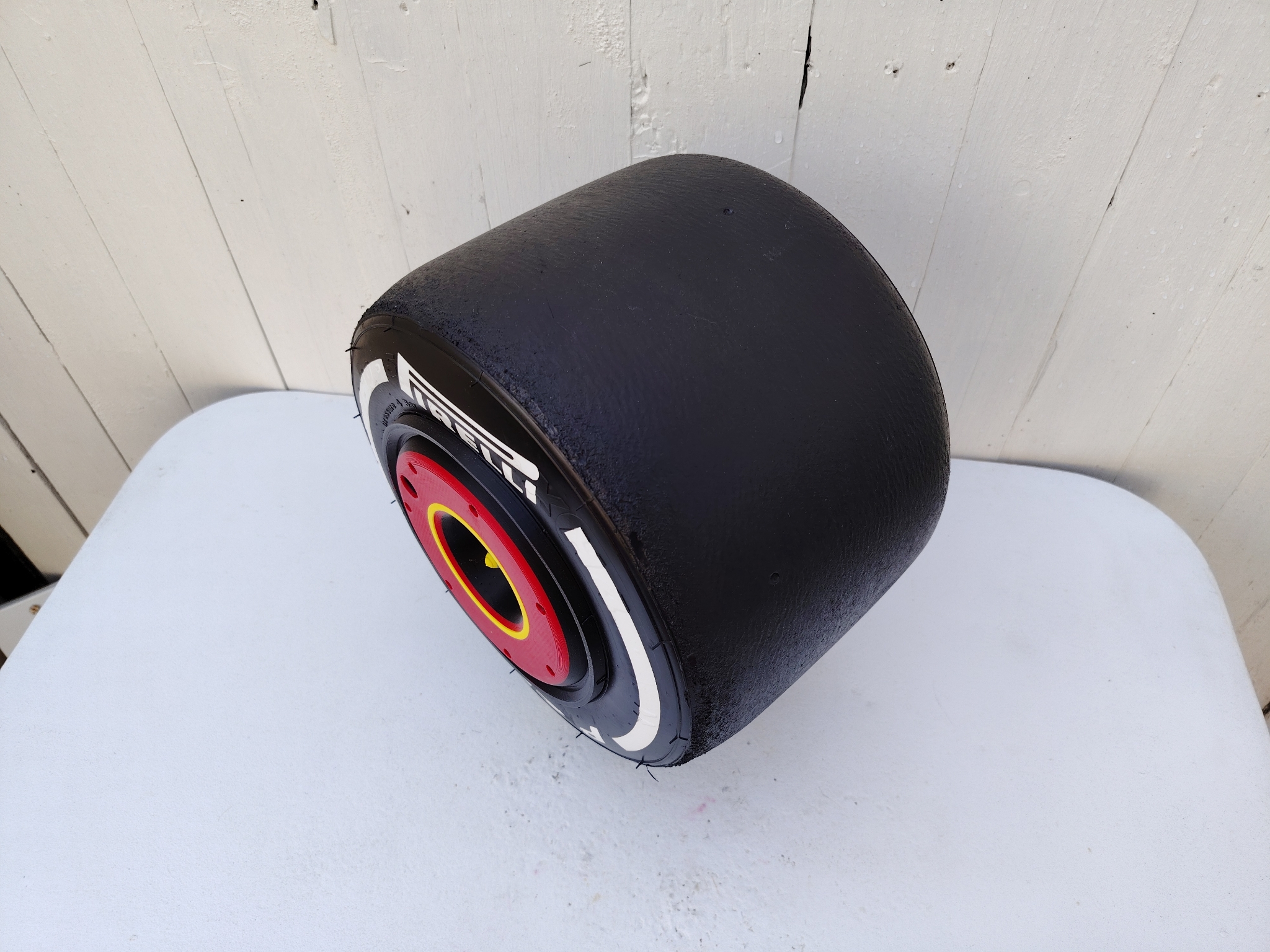 Pneu de formule 1 décoratif pour collectionneur autour de la formule 1 , de la marque Pirelli modèle P Zero.