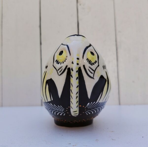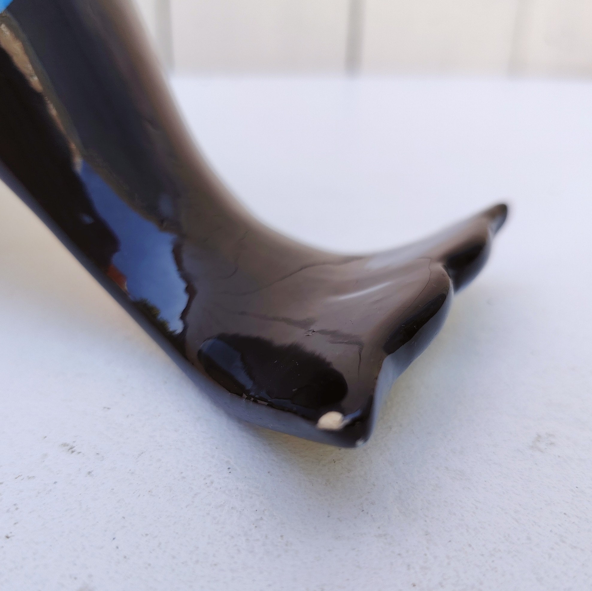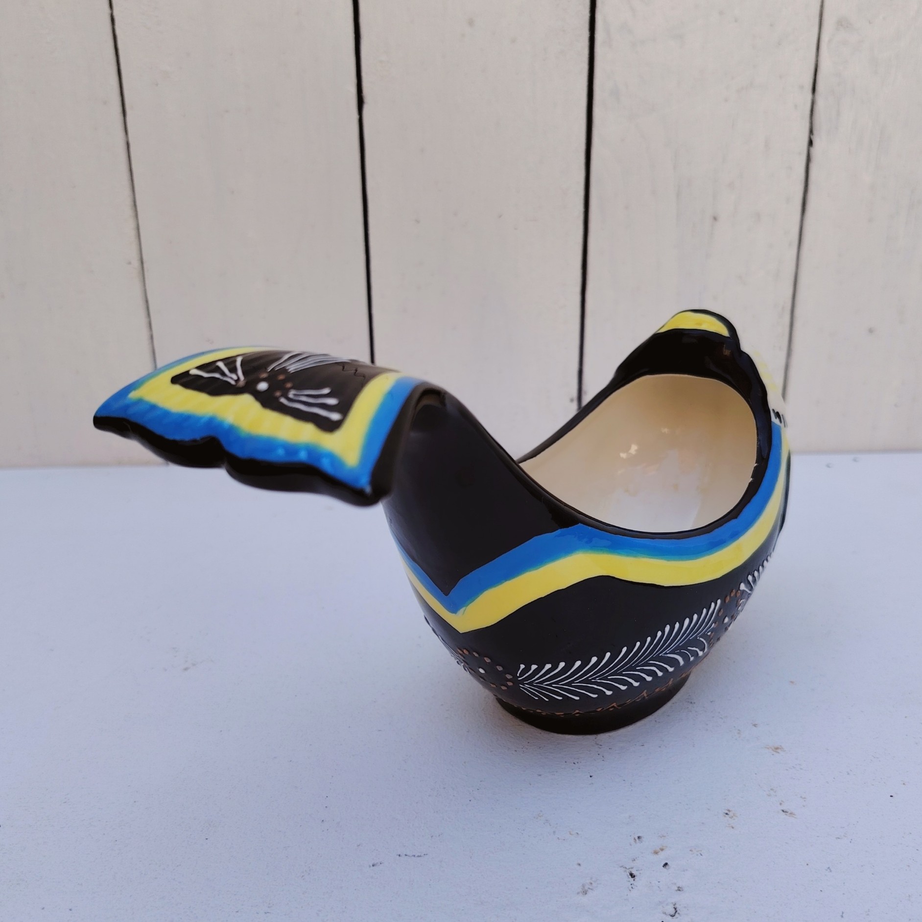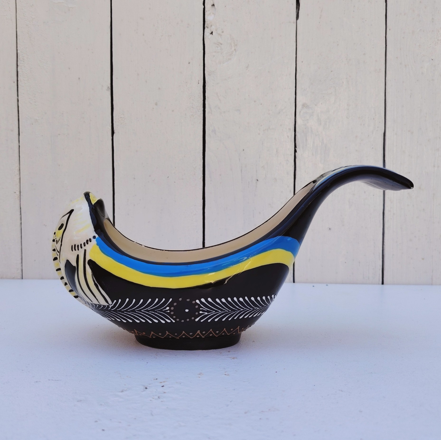 Saucière en faïence de Quimper à la forme de poisson, signée Henriot sur le dessous.