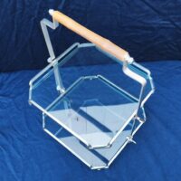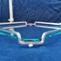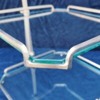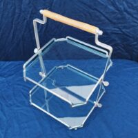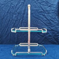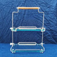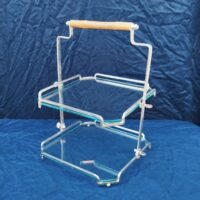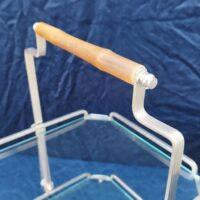 Serviteur muet de style art déco, structure en métal brossé, deux plateaux en verre amovibles, une poignée en bois forme bambou. De très belle qualité, verre épais.