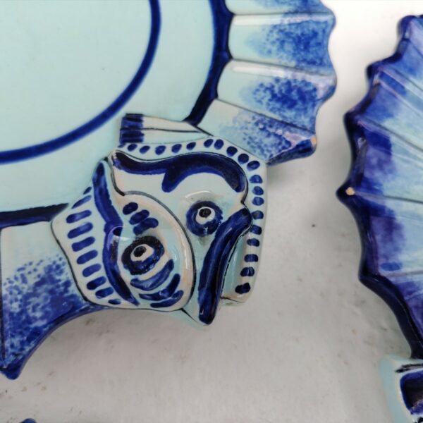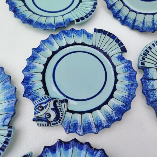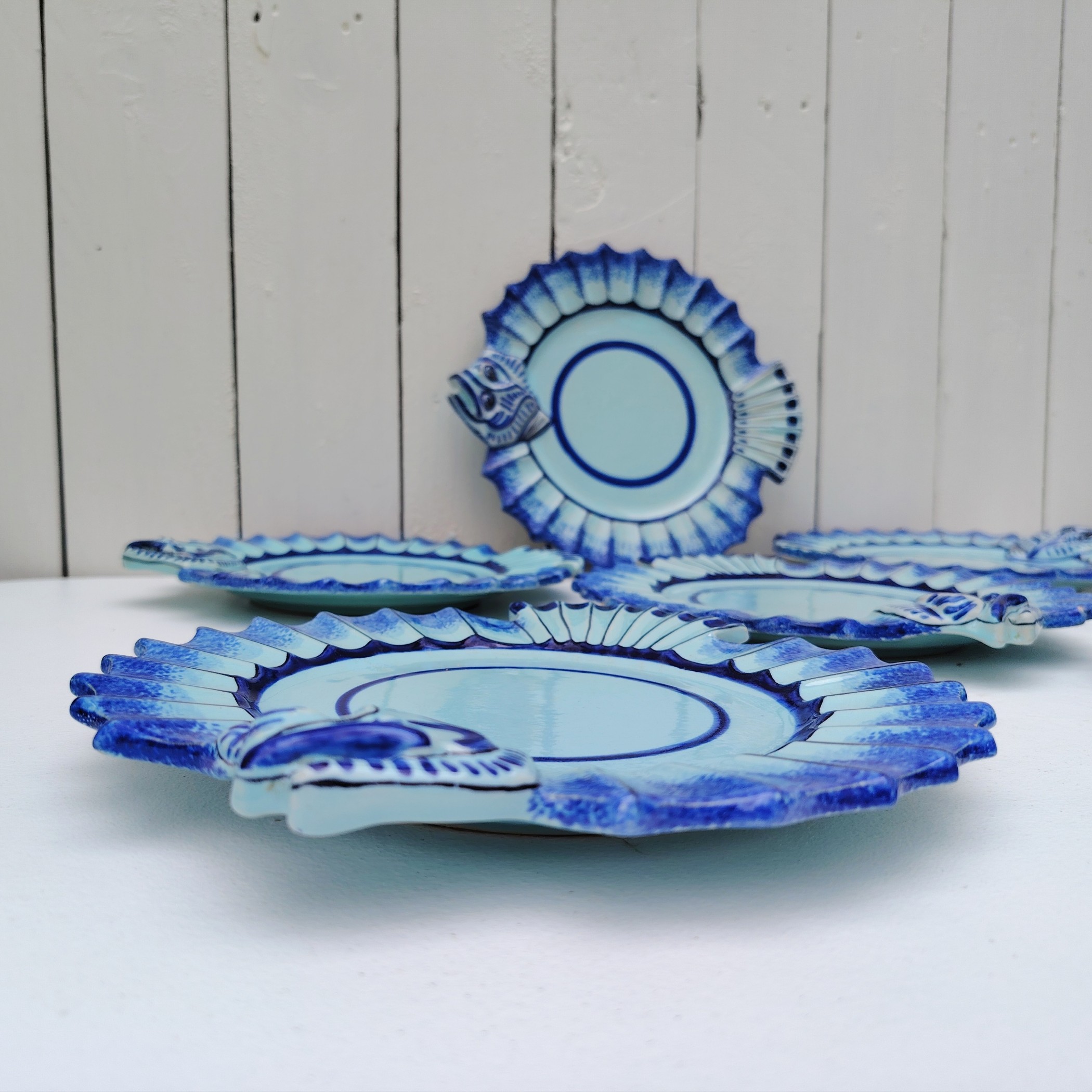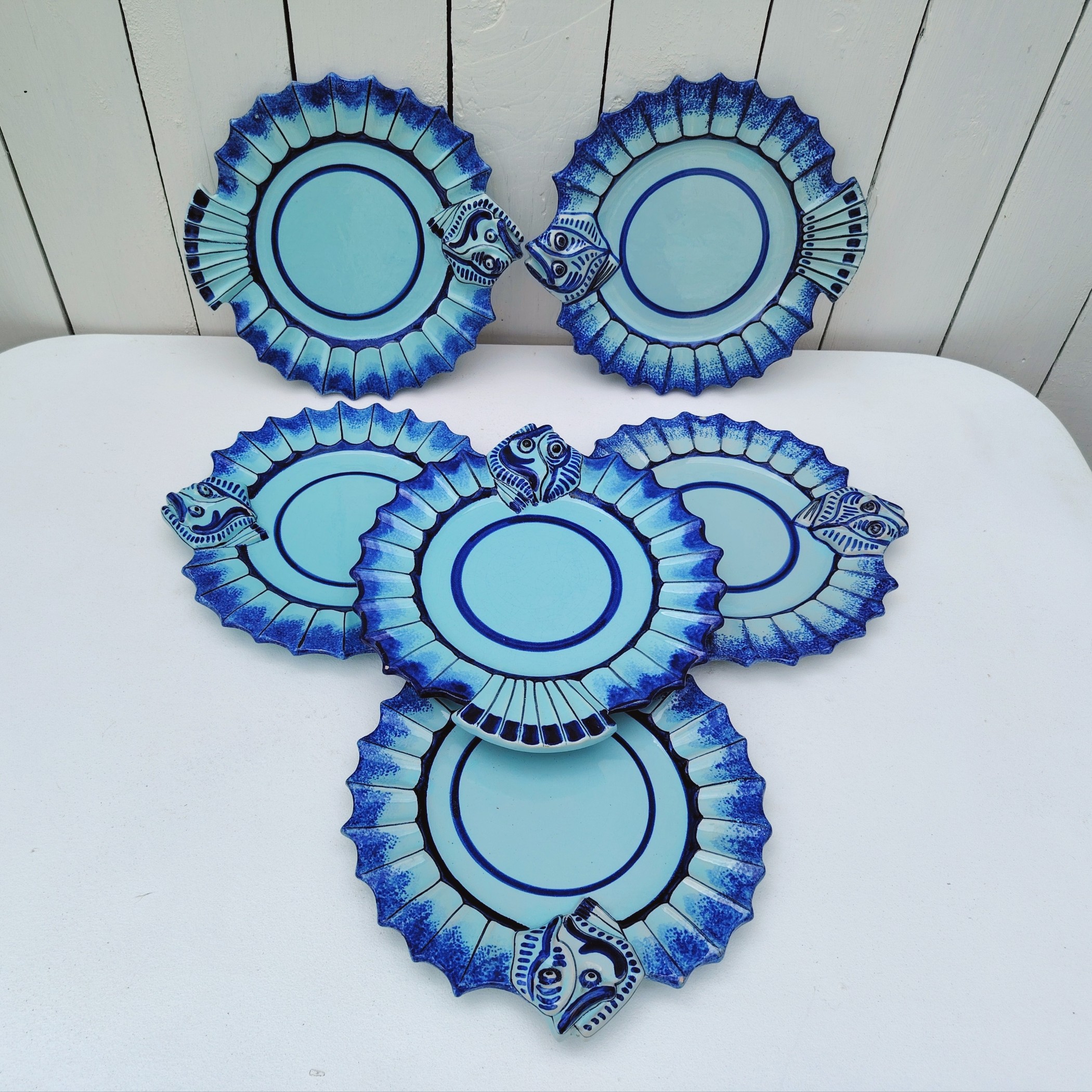Assiettes datant des années 60-70. Idéales pour servir, poissons, crustacés, coquillages. Modèle très peu commun.