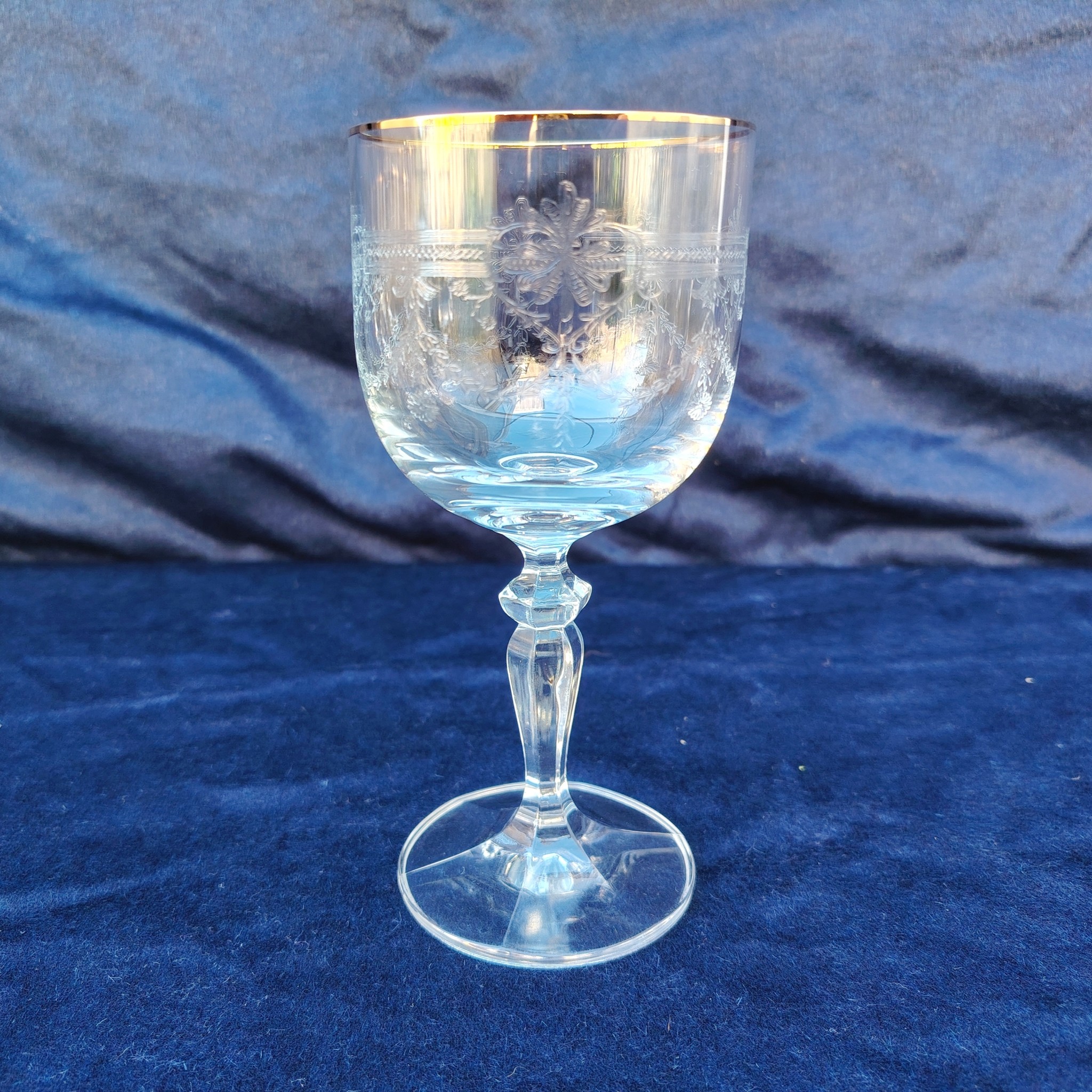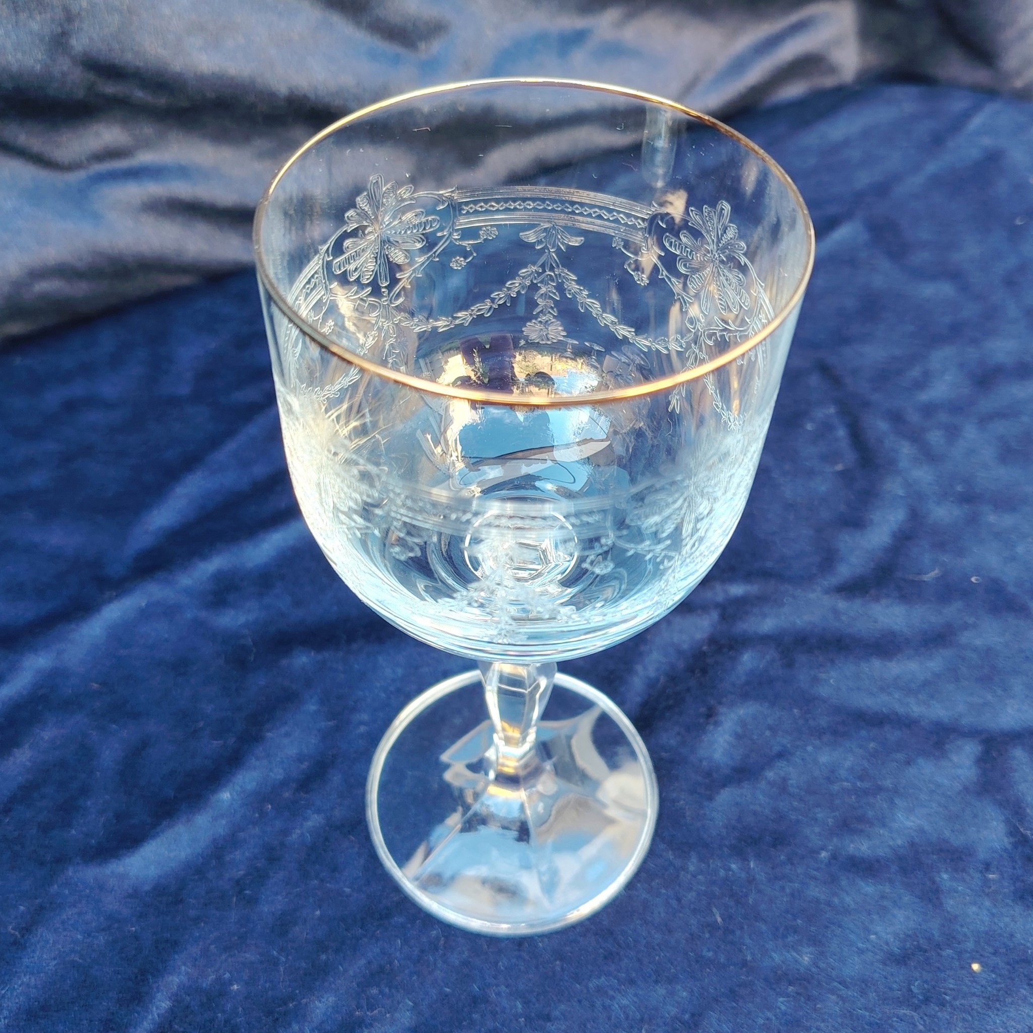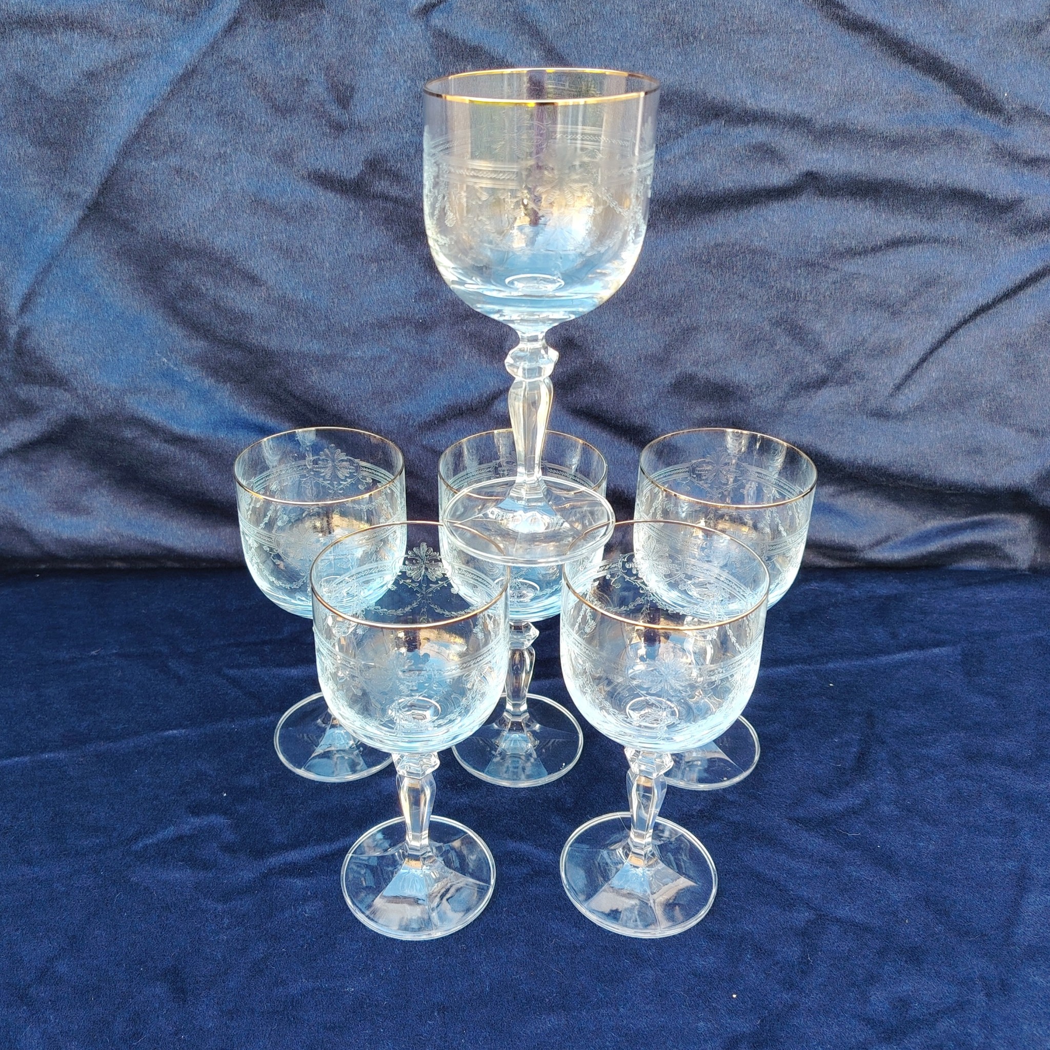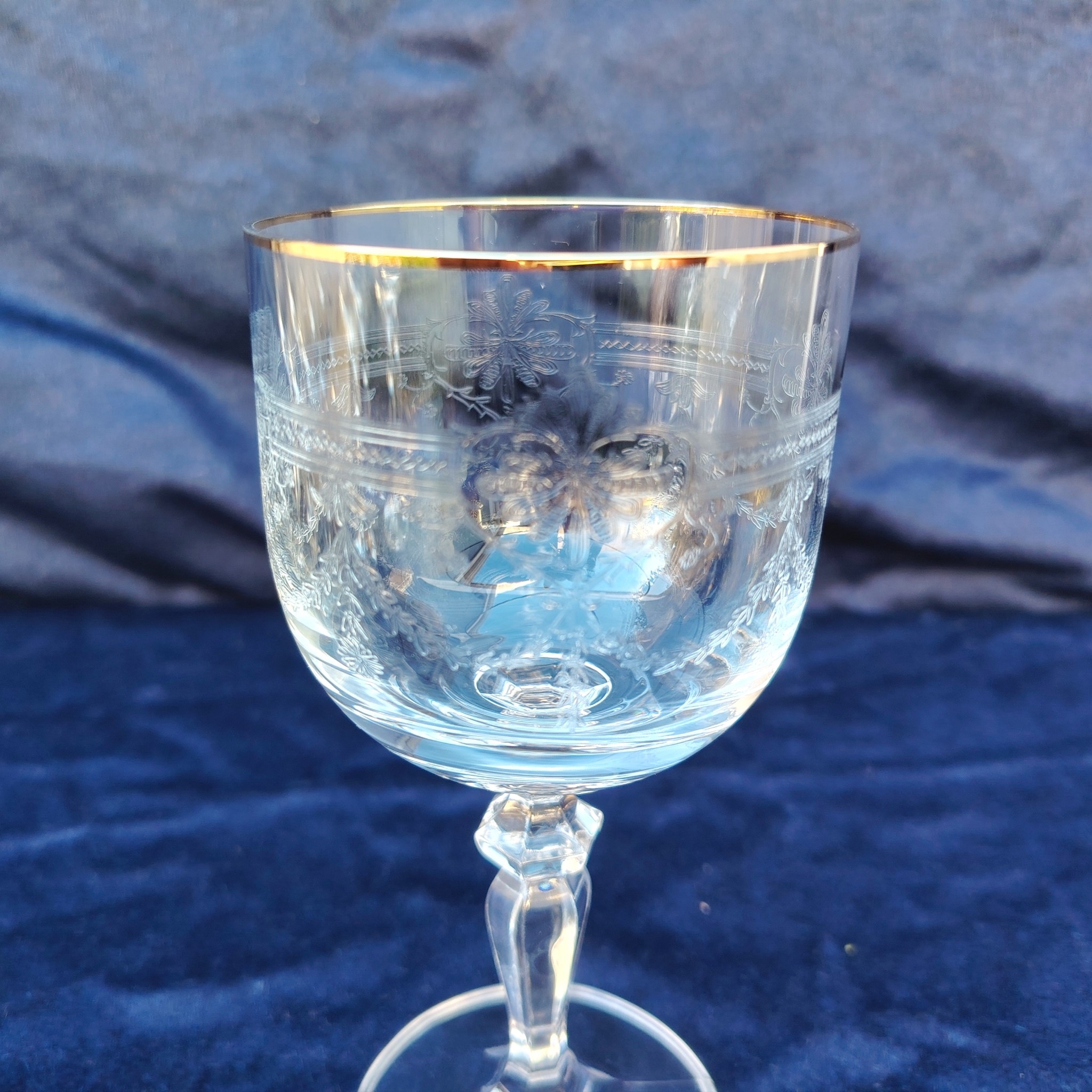 Six verres à eau, cristal ciselé, liseré or, vintage