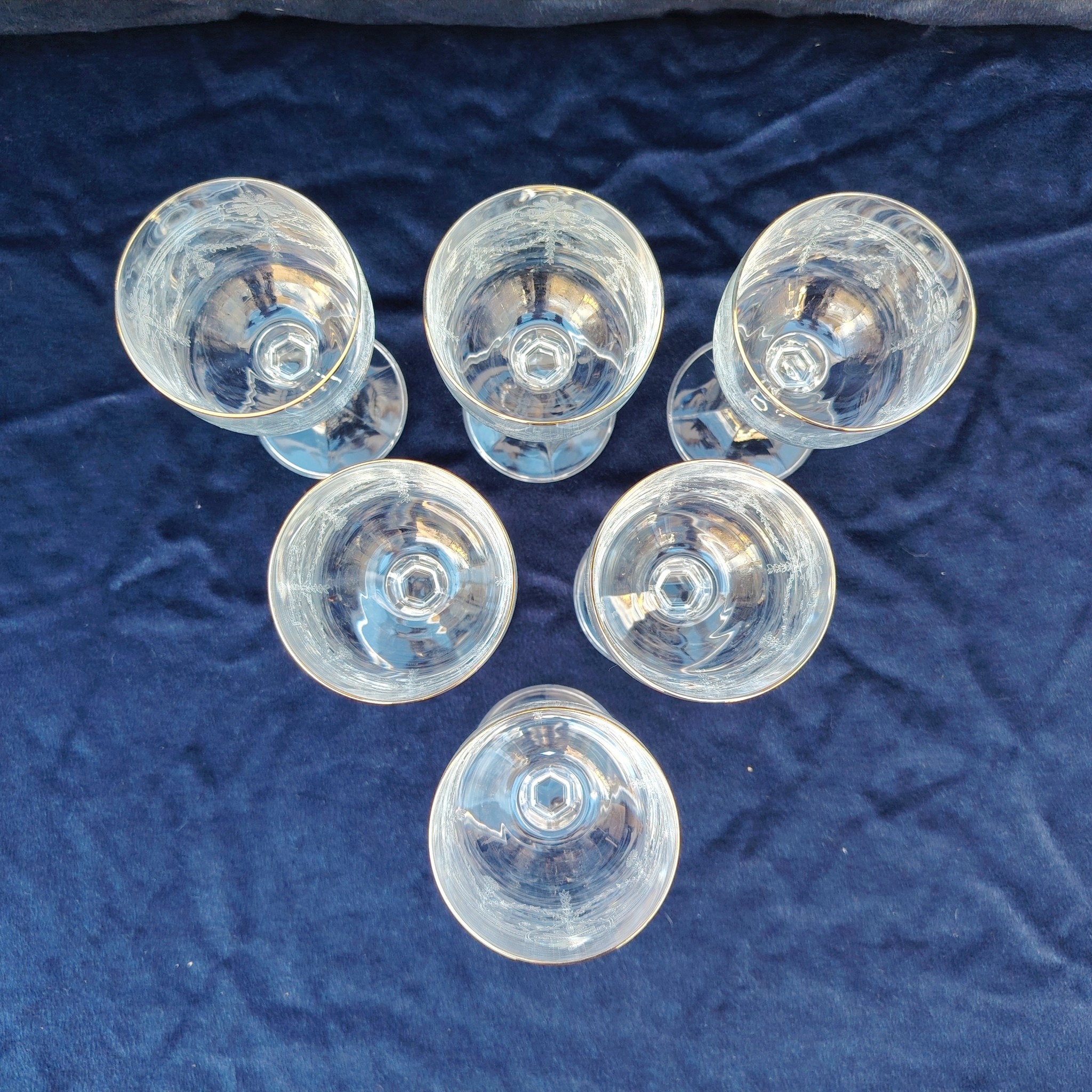 Six verres à vin, cristal ciselé, liseré or, vintage