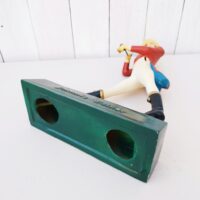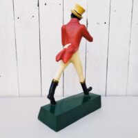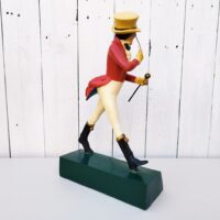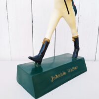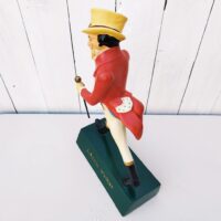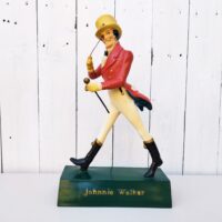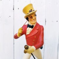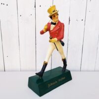 Statuette publicitaire pour une marque de whisky représentant le célèbre dandy Johnnie Walker sur un socle vert. Possède son monocle et sa canne.