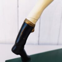 Le bout de la canne est cassé. traces et rayures d’usage. Une petite fêlure sur la jambe gauche.
