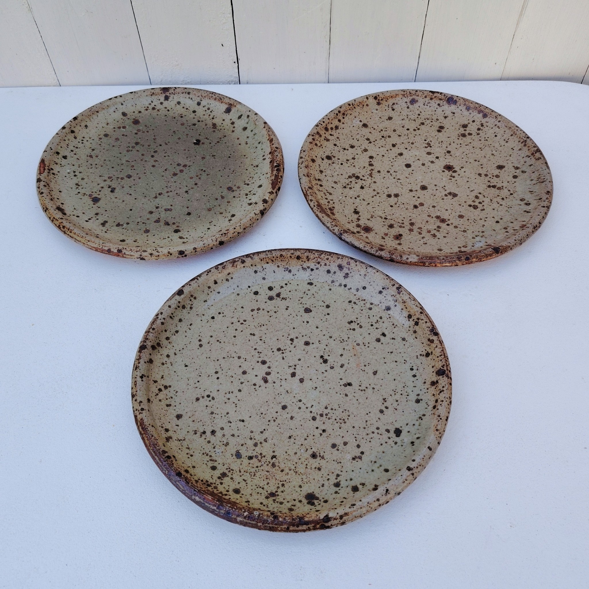 Trois assiettes en grès émaillé pyrité, signée Gustave Tiffoche à Guérande.