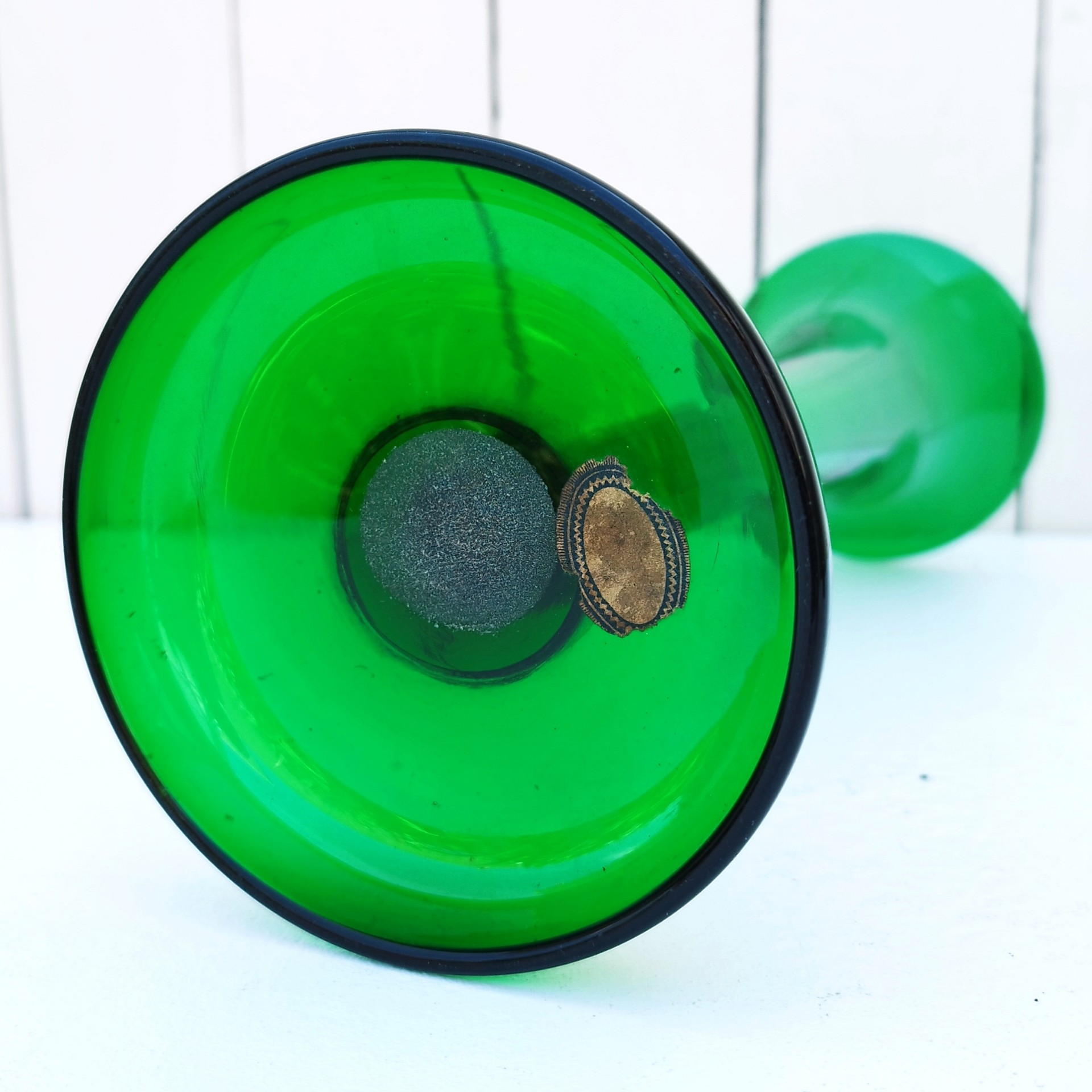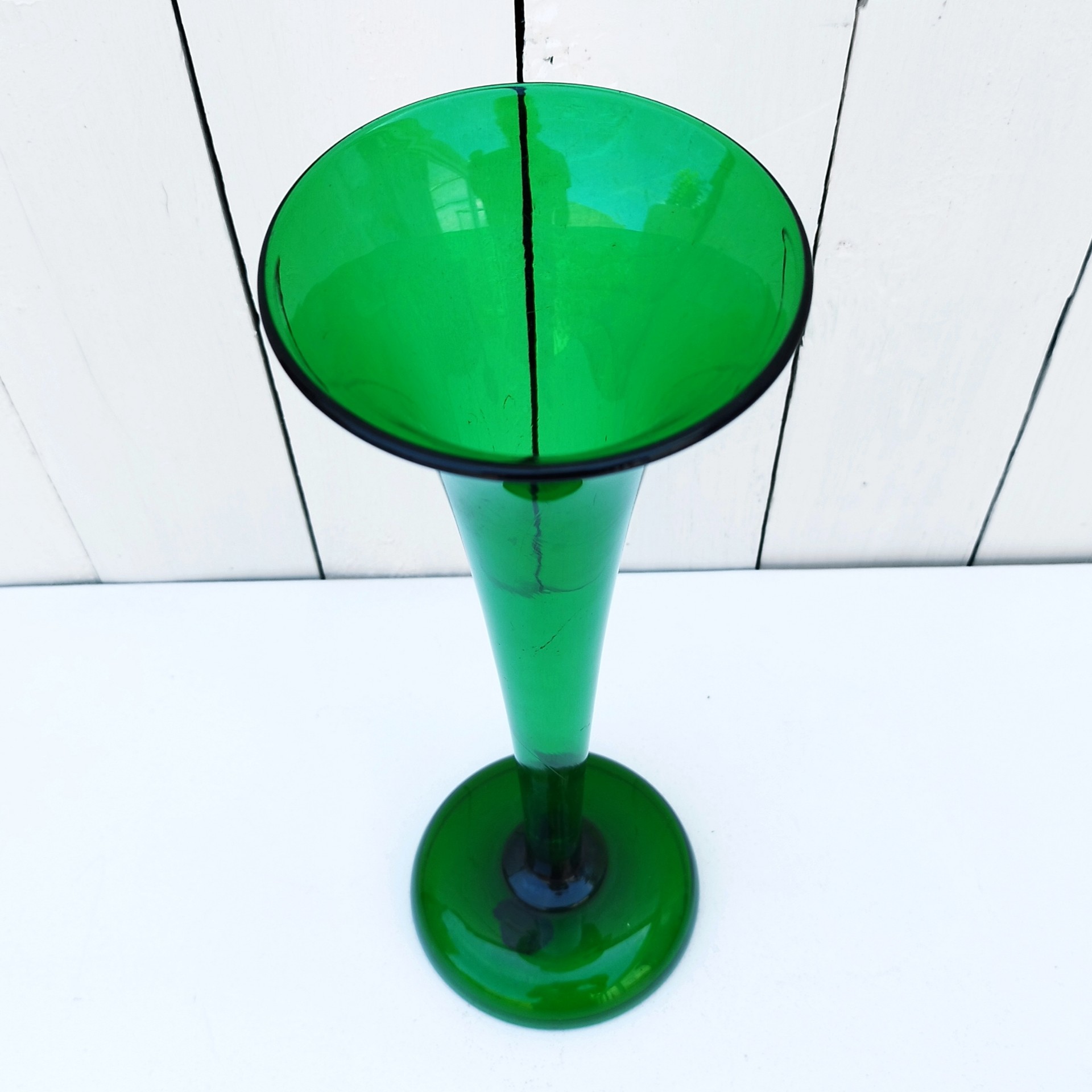Grand vase cornet tulipier en verre vert bouteille, de style Napoléon III, datat de la fin du XIX ème début XX ème.