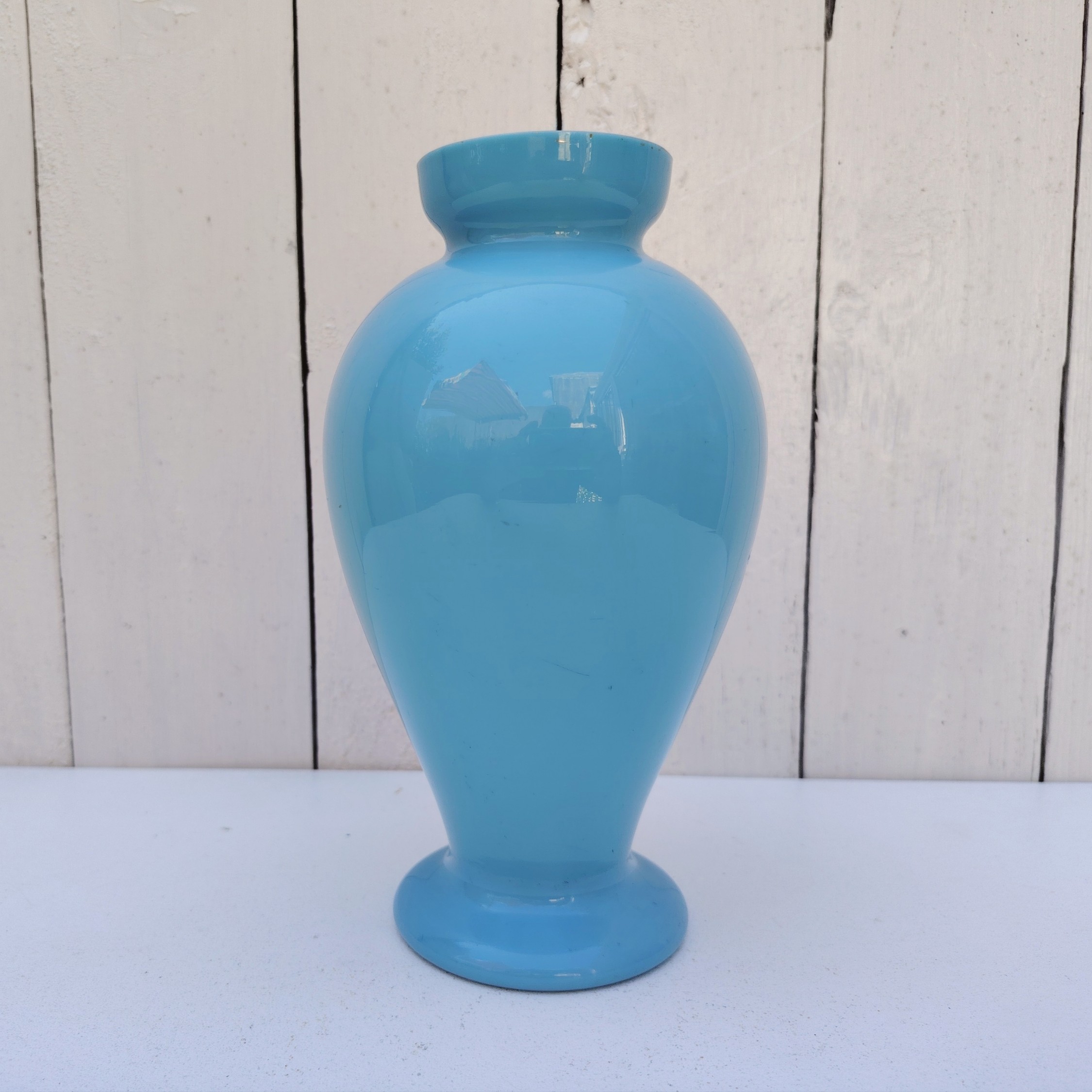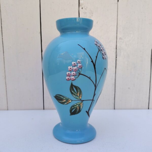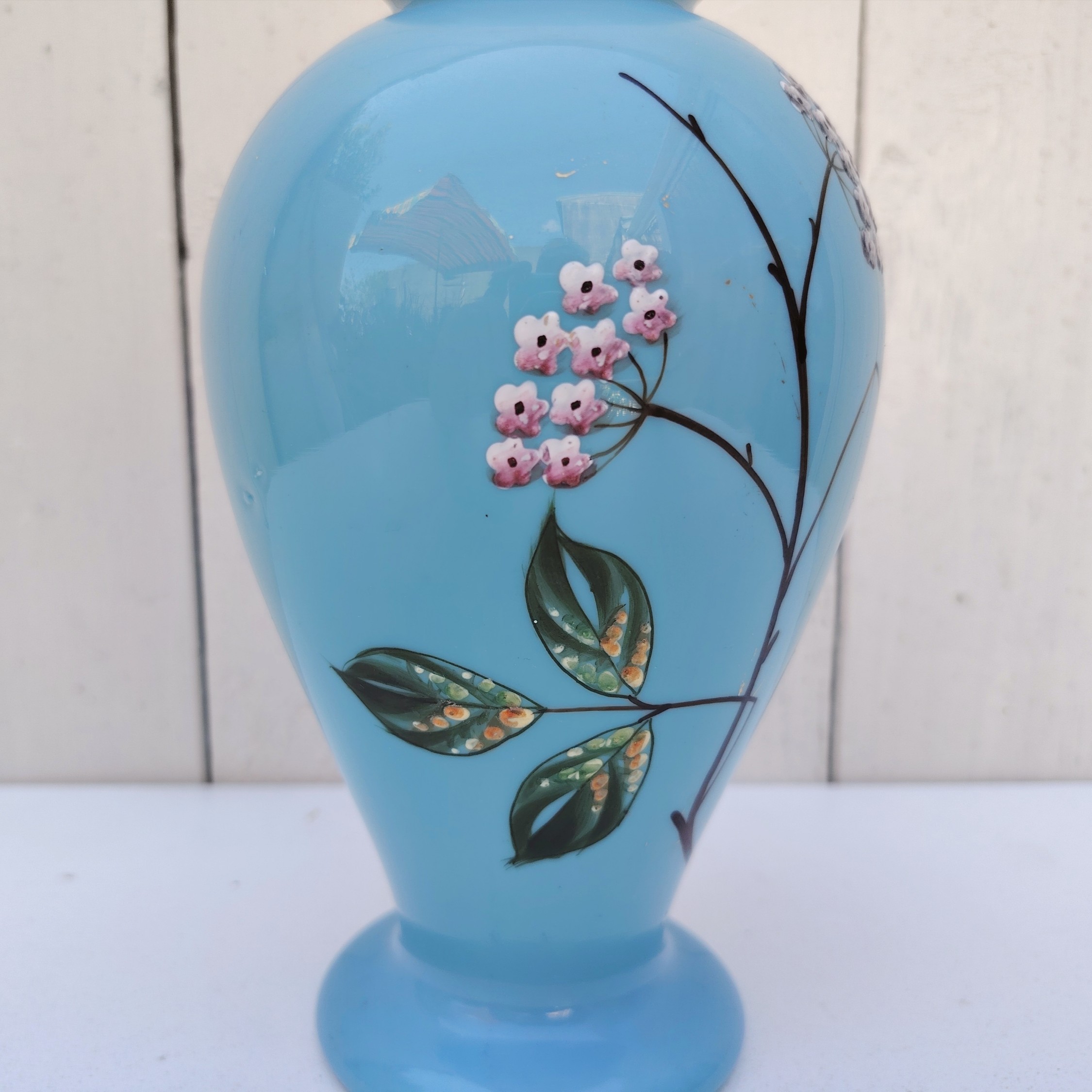 Vase balustre en opaline, style Napoléon III. Décor bouquet de fleurs.