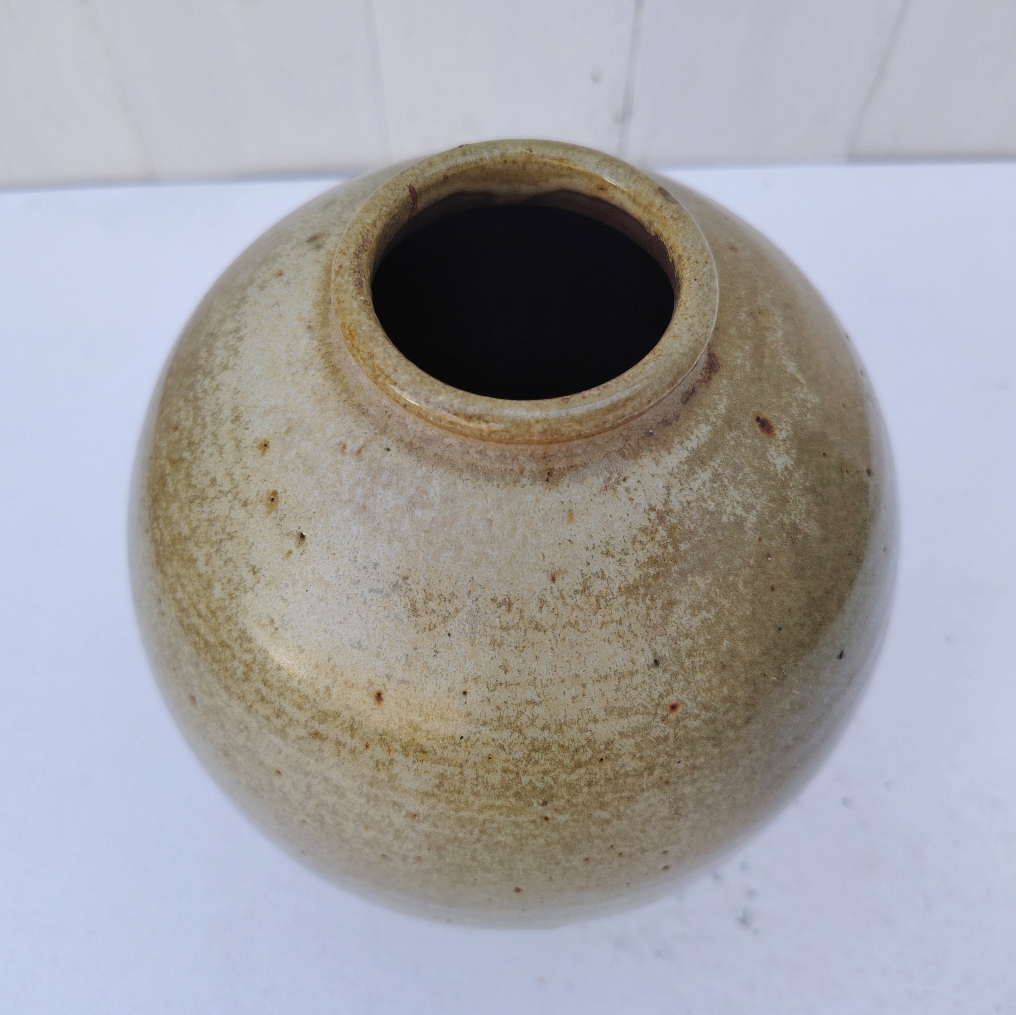 Vase ventru en grès émaillé, signé, vintage
