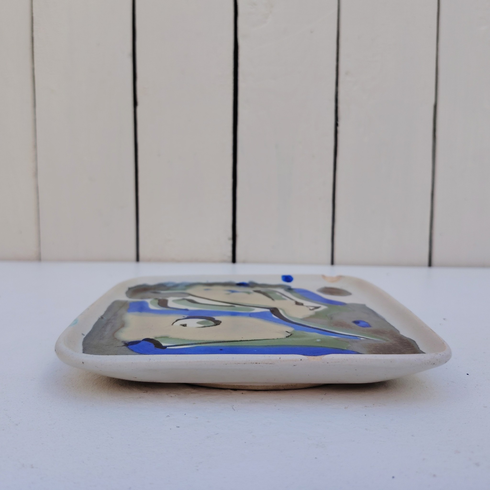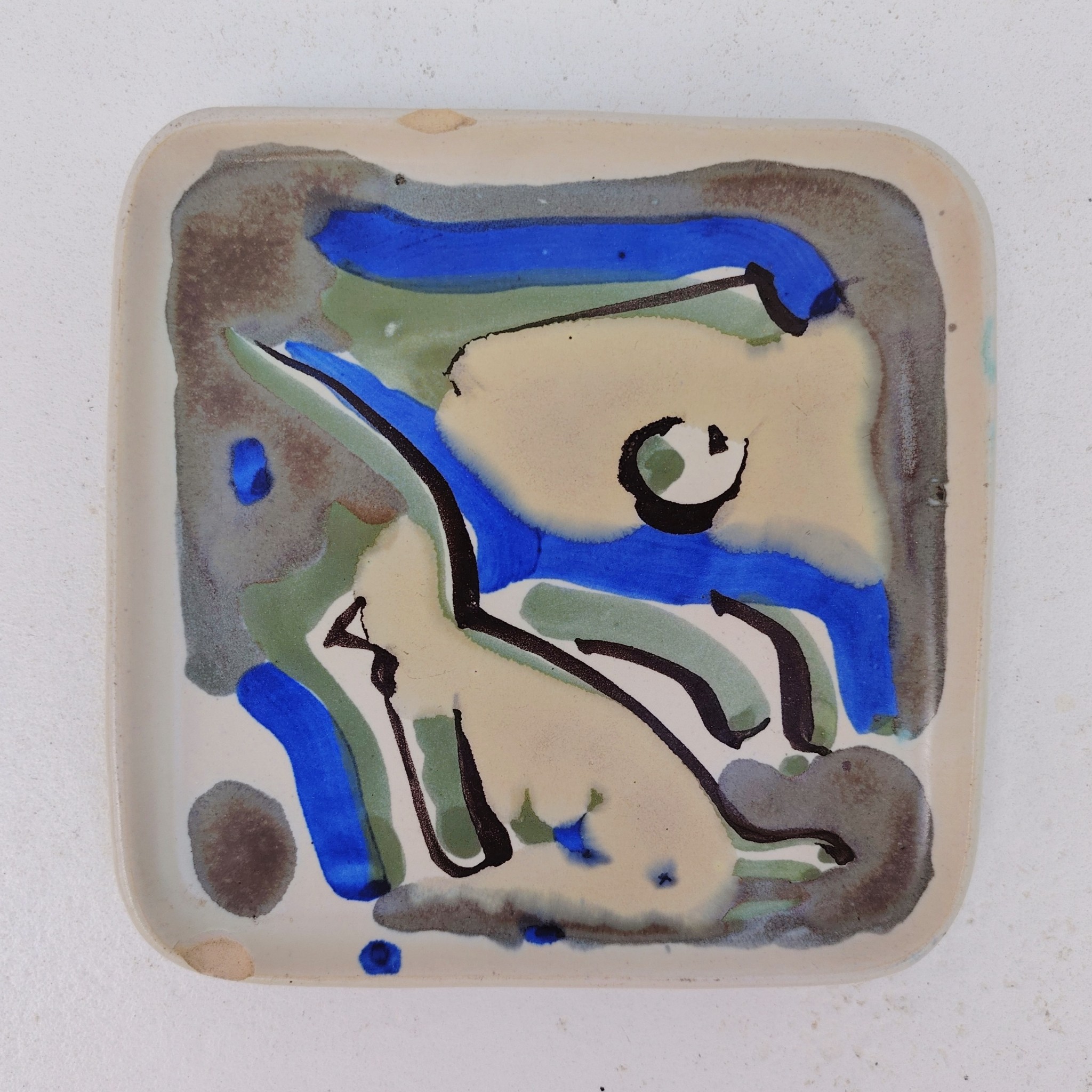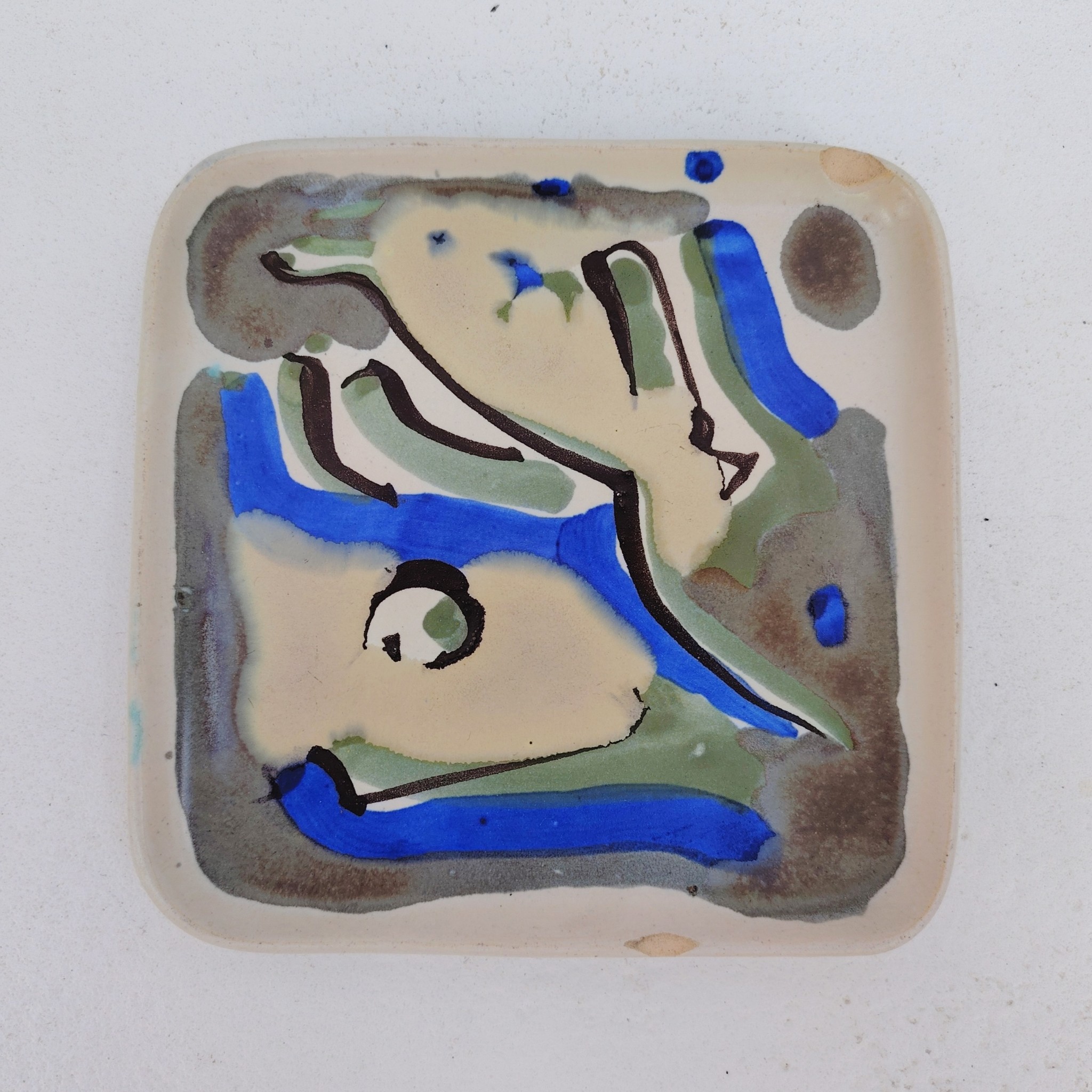 Vide poche en céramique à décor abstrait, par Xavier Krebs. Céramique de Keraluc en Bretagne.