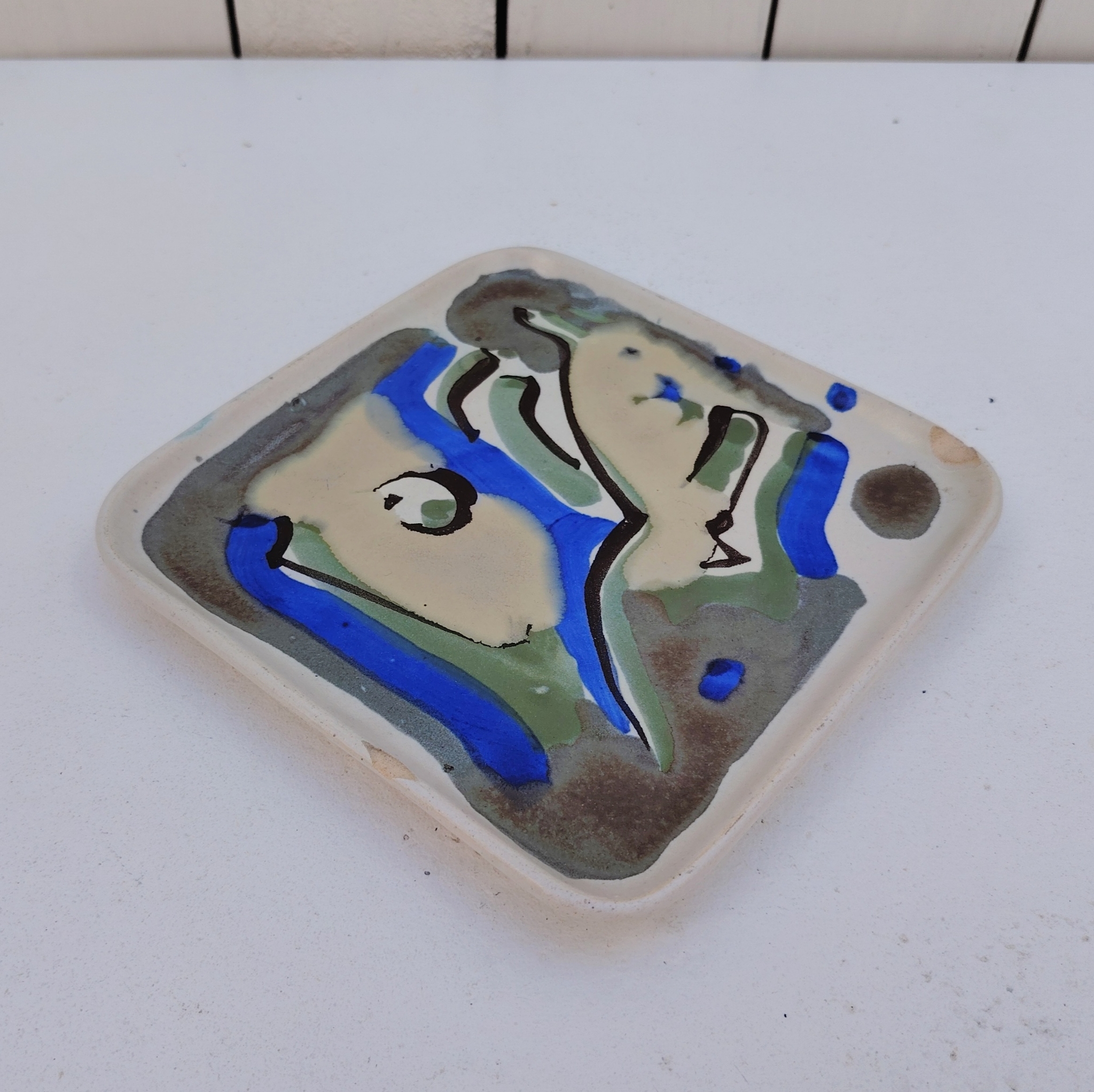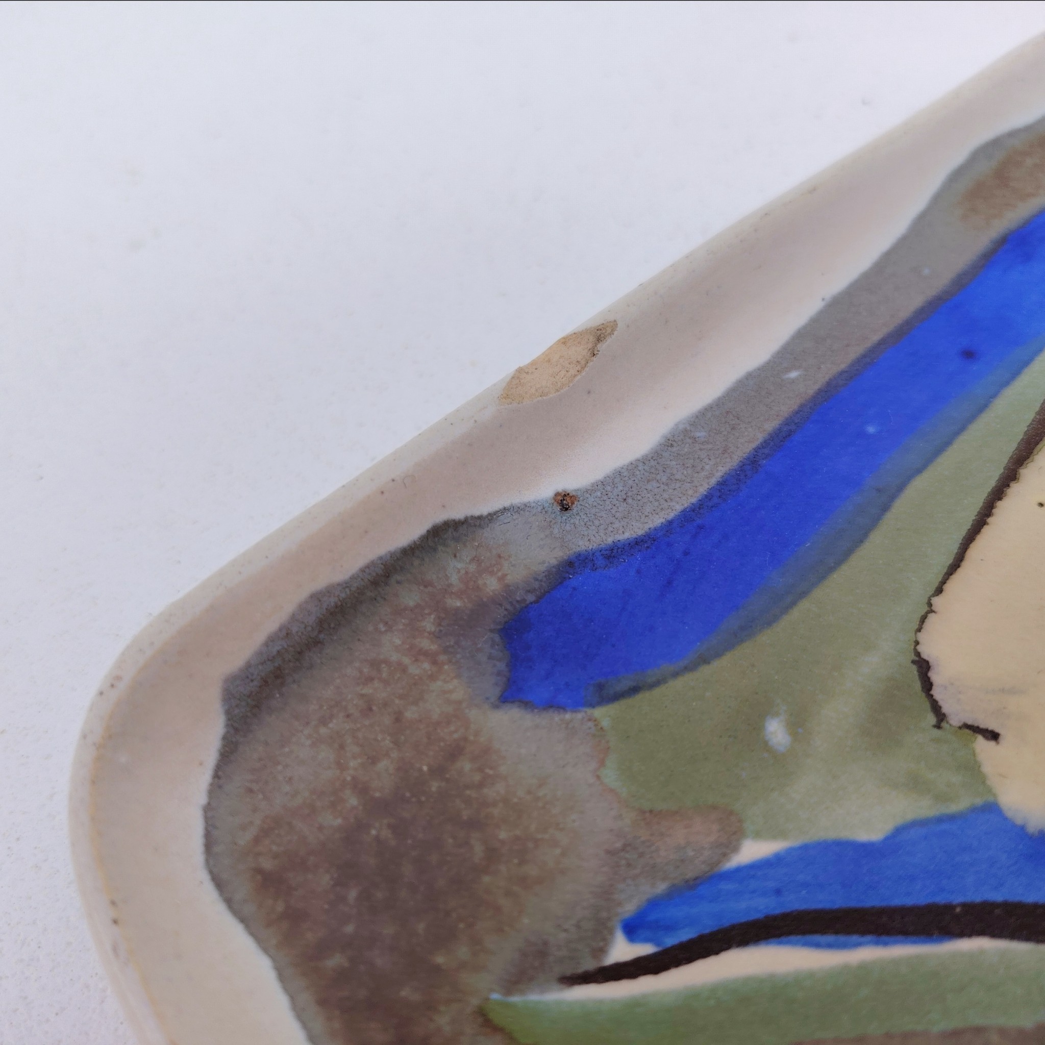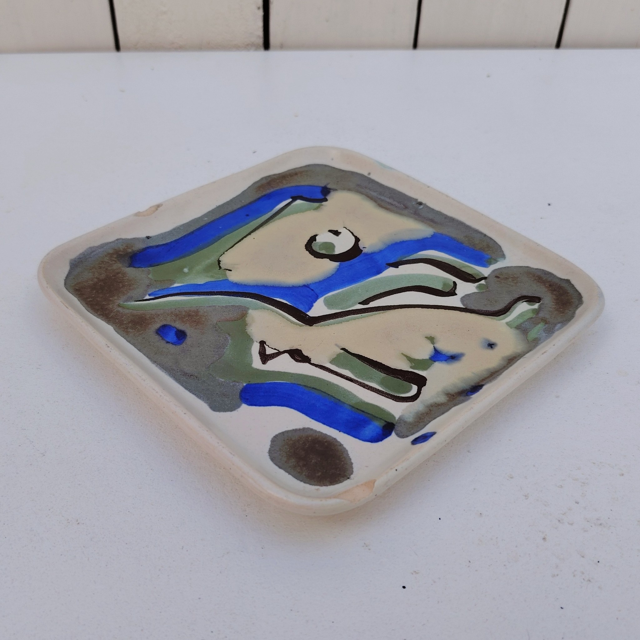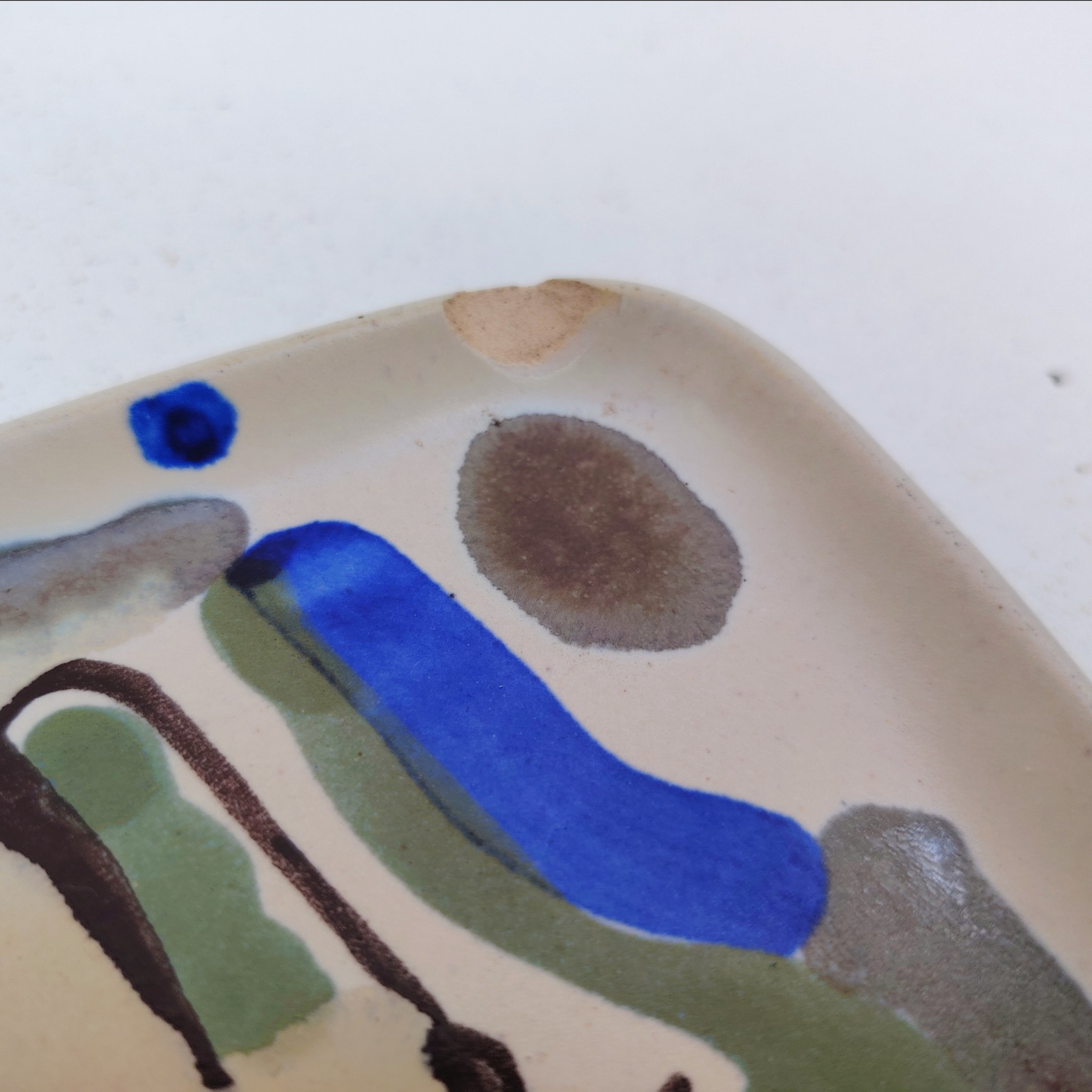 Vide poche en céramique à décor abstrait, par Xavier Krebs. Céramique de Keraluc en Bretagne.